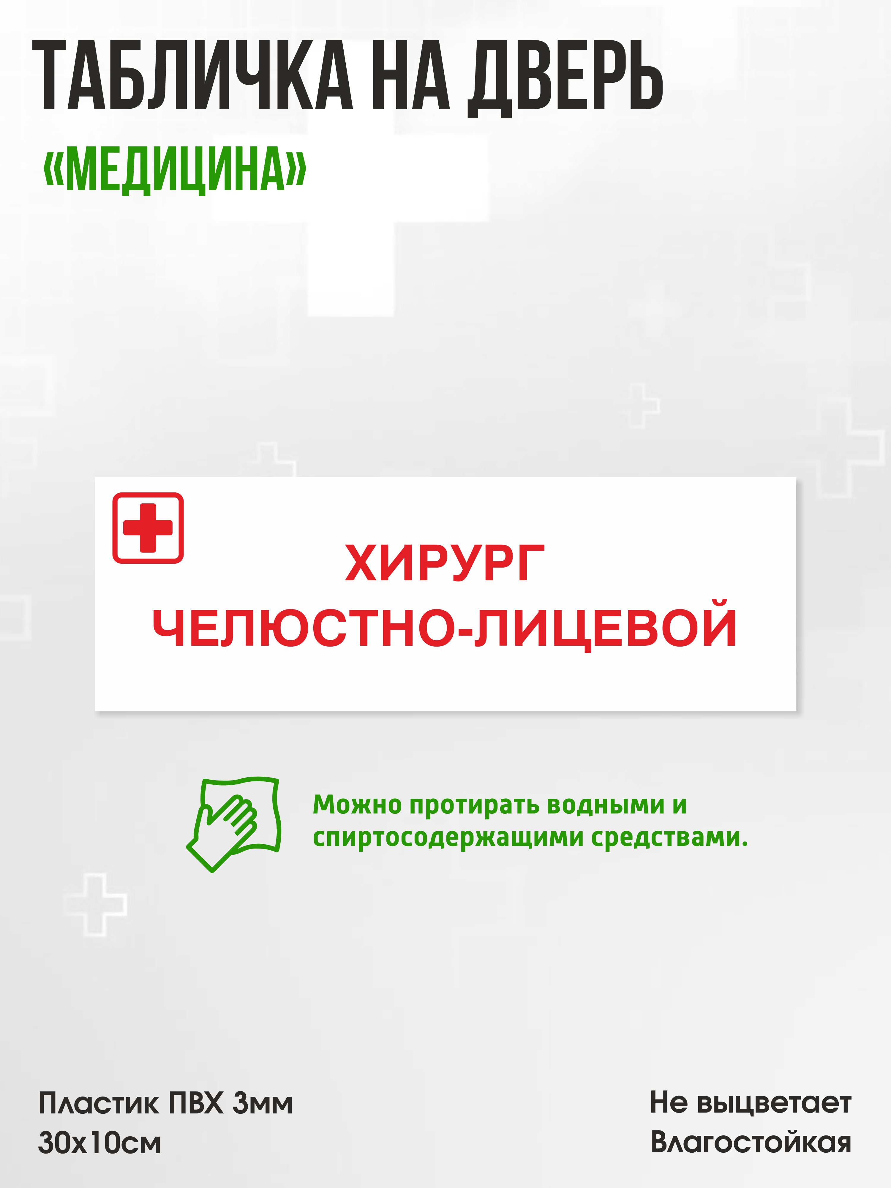 Табличка Хирург челюстно-лицевой, белая, 30х10см, ПВХ пластик, на дверь, для медицинской клиники или больницы
