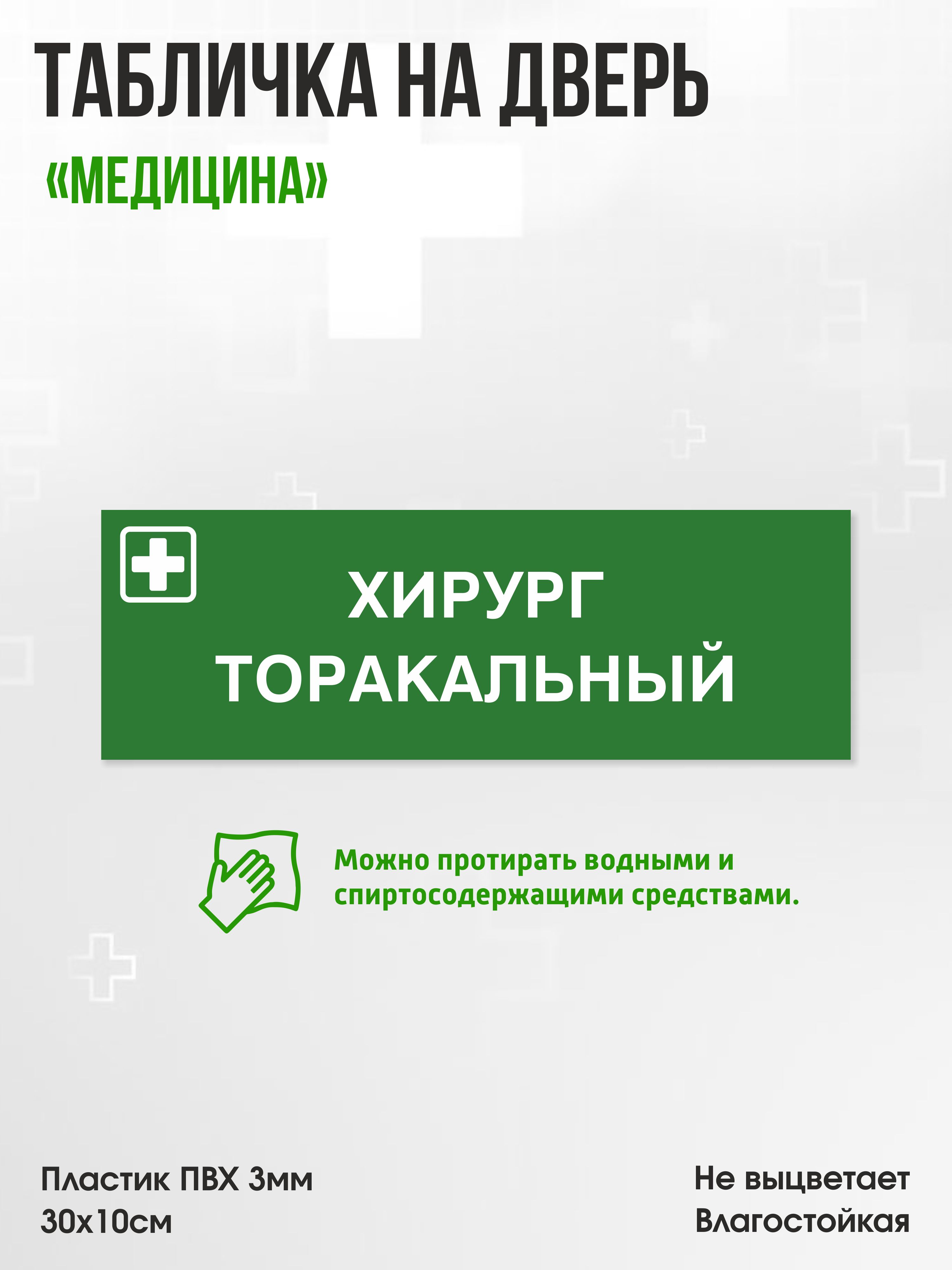 Табличка Хирург торакальный, зеленая, 30х10см, ПВХ пластик, на дверь, для медицинской клиники или больницы