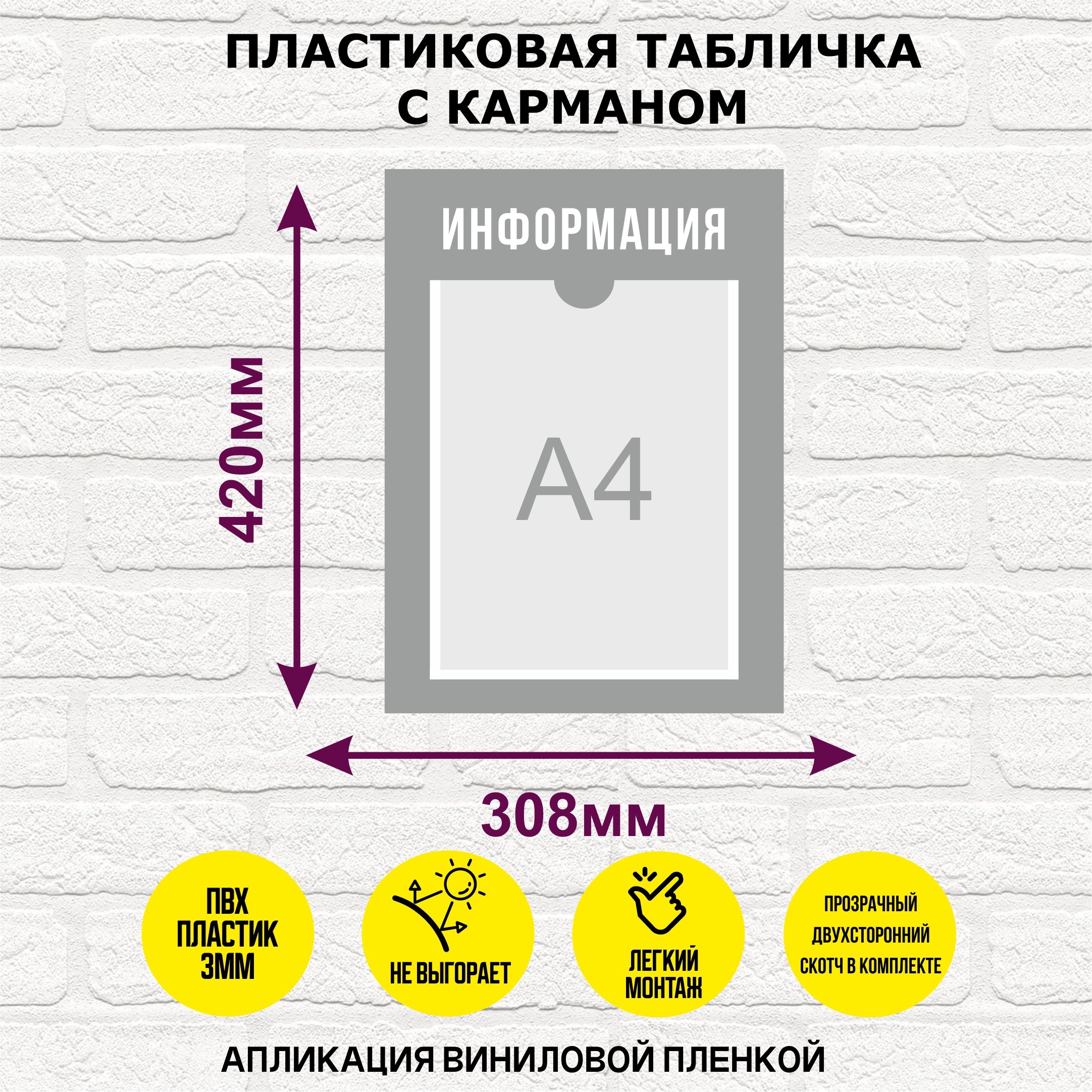 Табличка "Информация", с карманом, ПВХ пластик 3мм, стенд для размещения информации