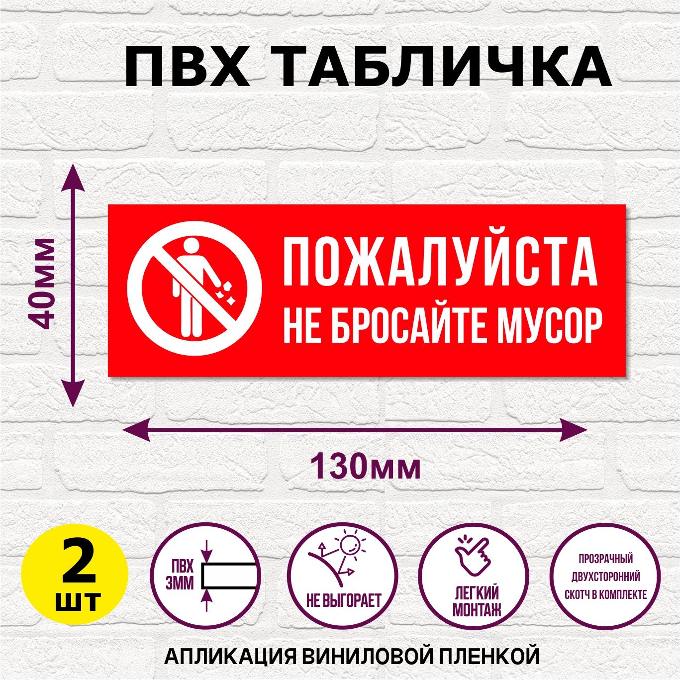Табличка из ПВХ пластика "Пожалуйста не бросайте мусор", маленькая, не бросать мусор, 130х40х3мм