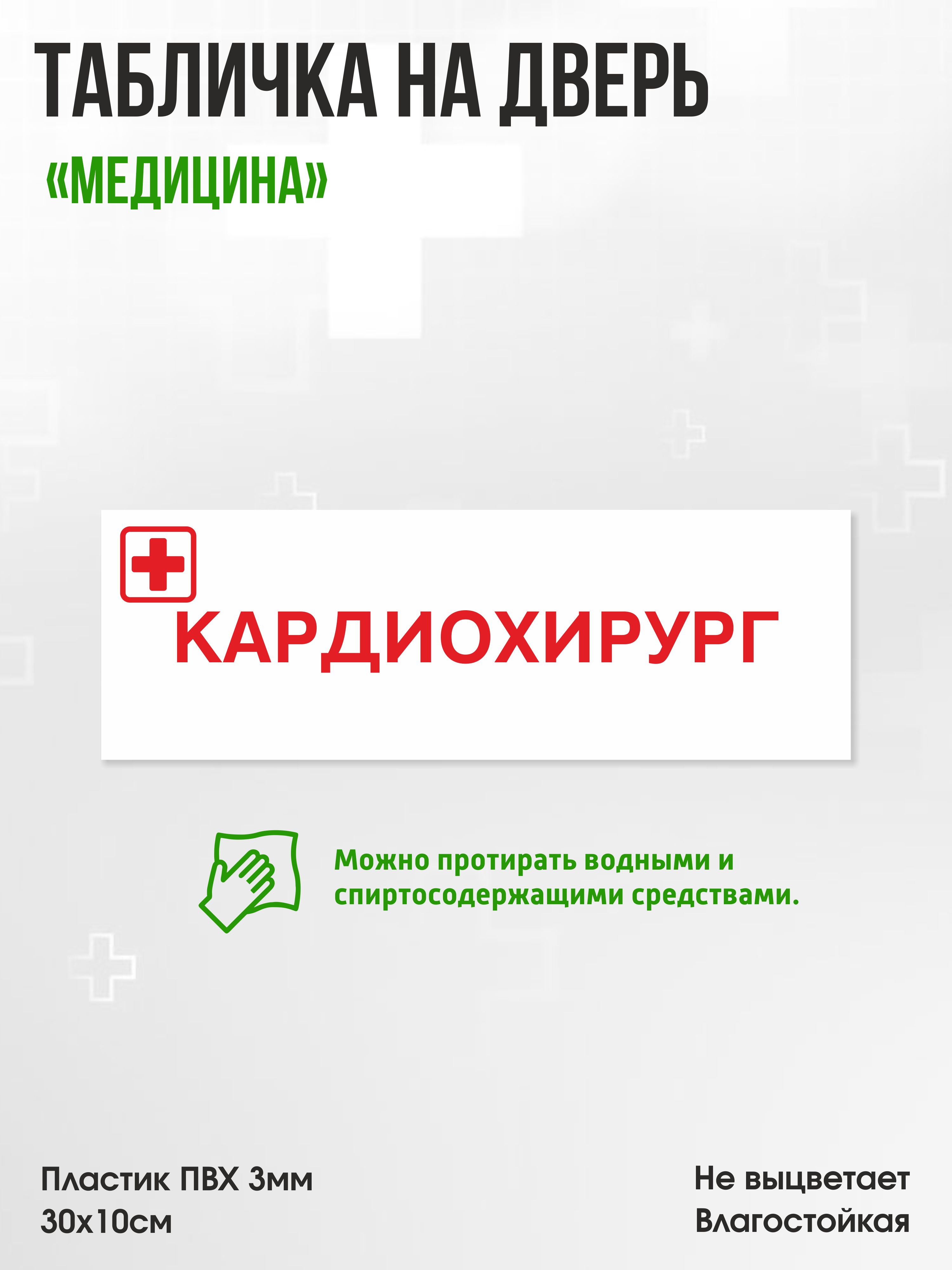 Табличка Кардиохирург, белая, 30х10см, ПВХ пластик, на дверь, для медицинской клиники или больницы
