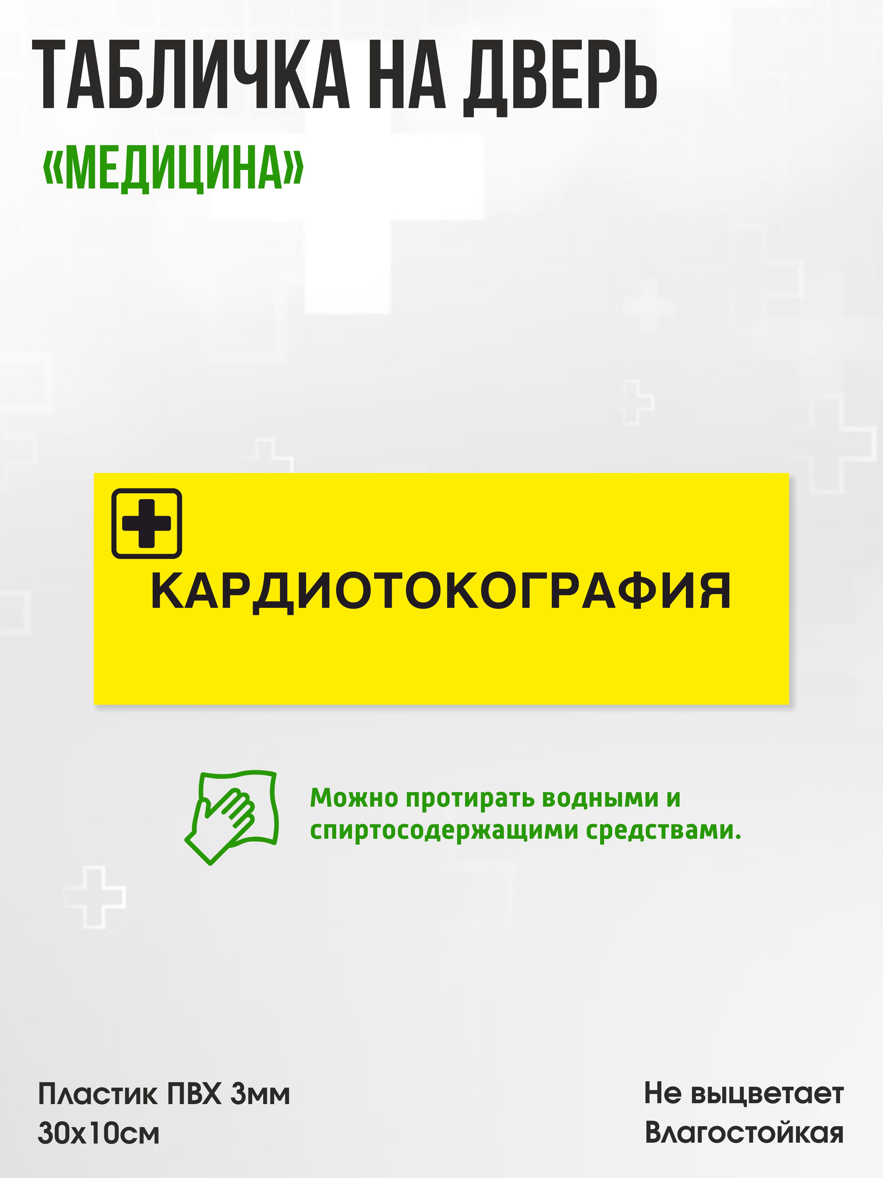 Табличка Кардиотокография, жёлтая, 30х10см, ПВХ пластик, на дверь, для медицинской клиники или больницы