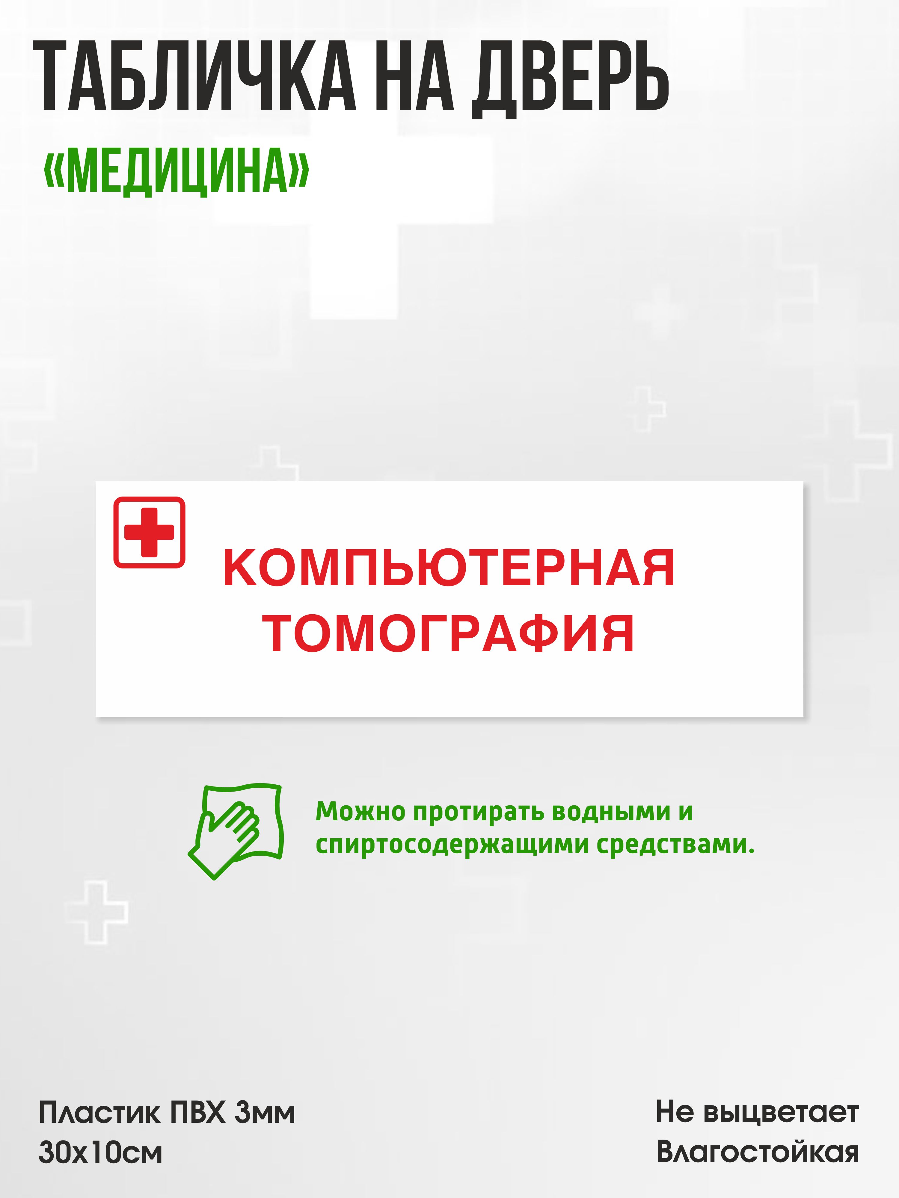 Табличка Компьютерная томография, белая, 30х10см, ПВХ пластик, на дверь, для медицинской клиники или больницы