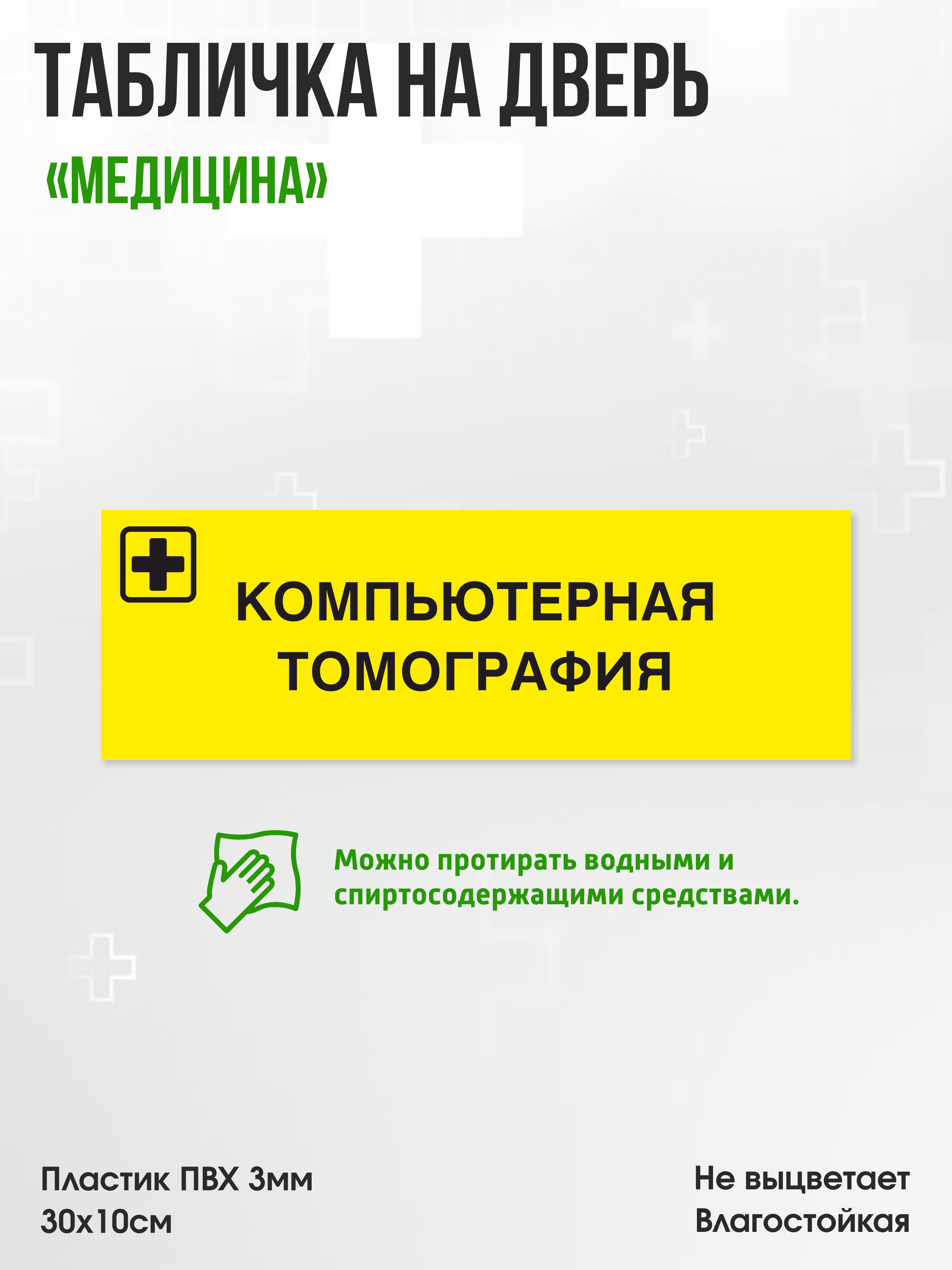 Табличка Компьютерная томография, жёлтая, 30х10см, ПВХ пластик, на дверь, для медицинской клиники или больницы