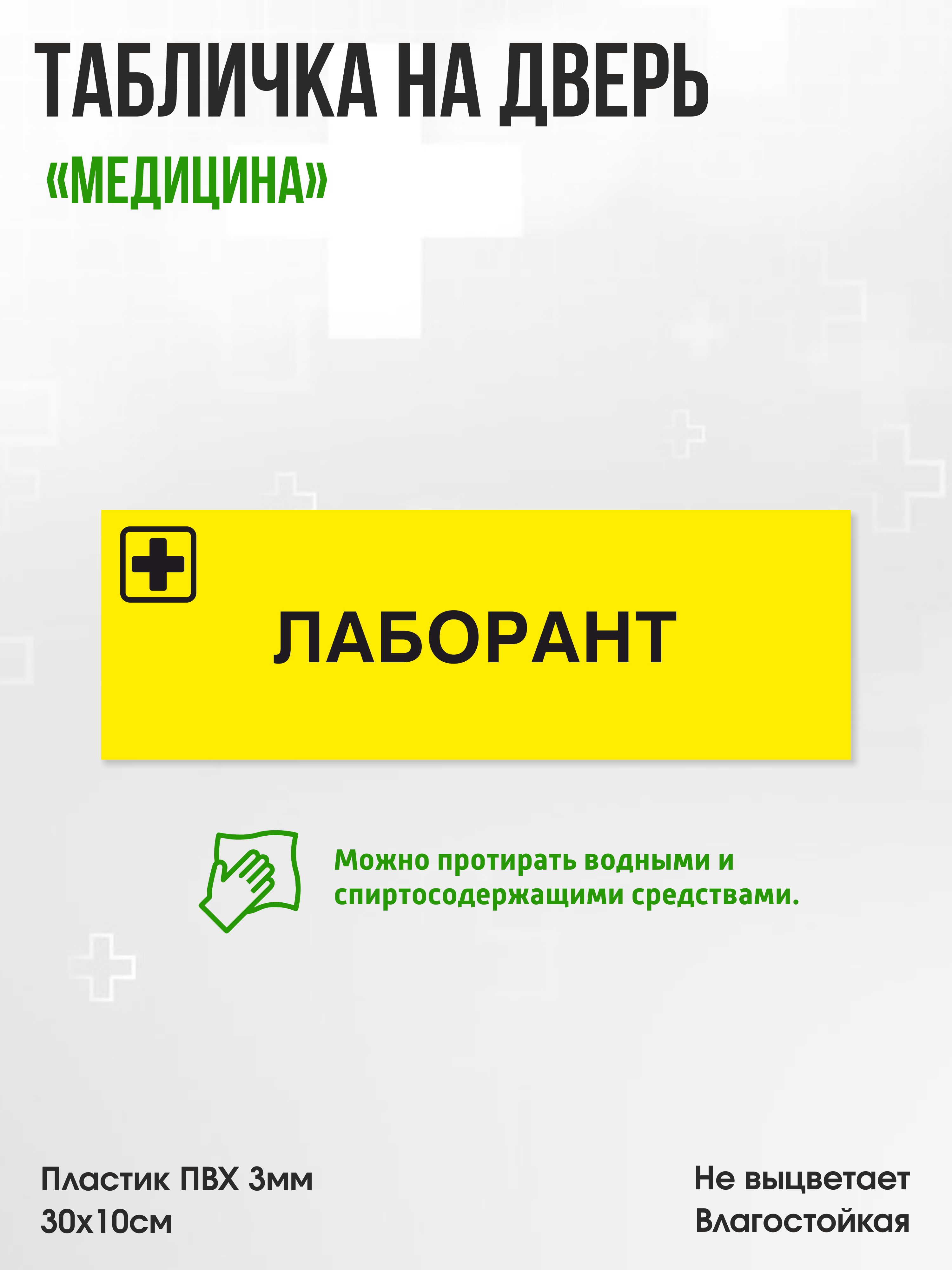 Табличка Лаборант, жёлтая, 30х10см, ПВХ пластик, на дверь, для медицинской клиники или больницы
