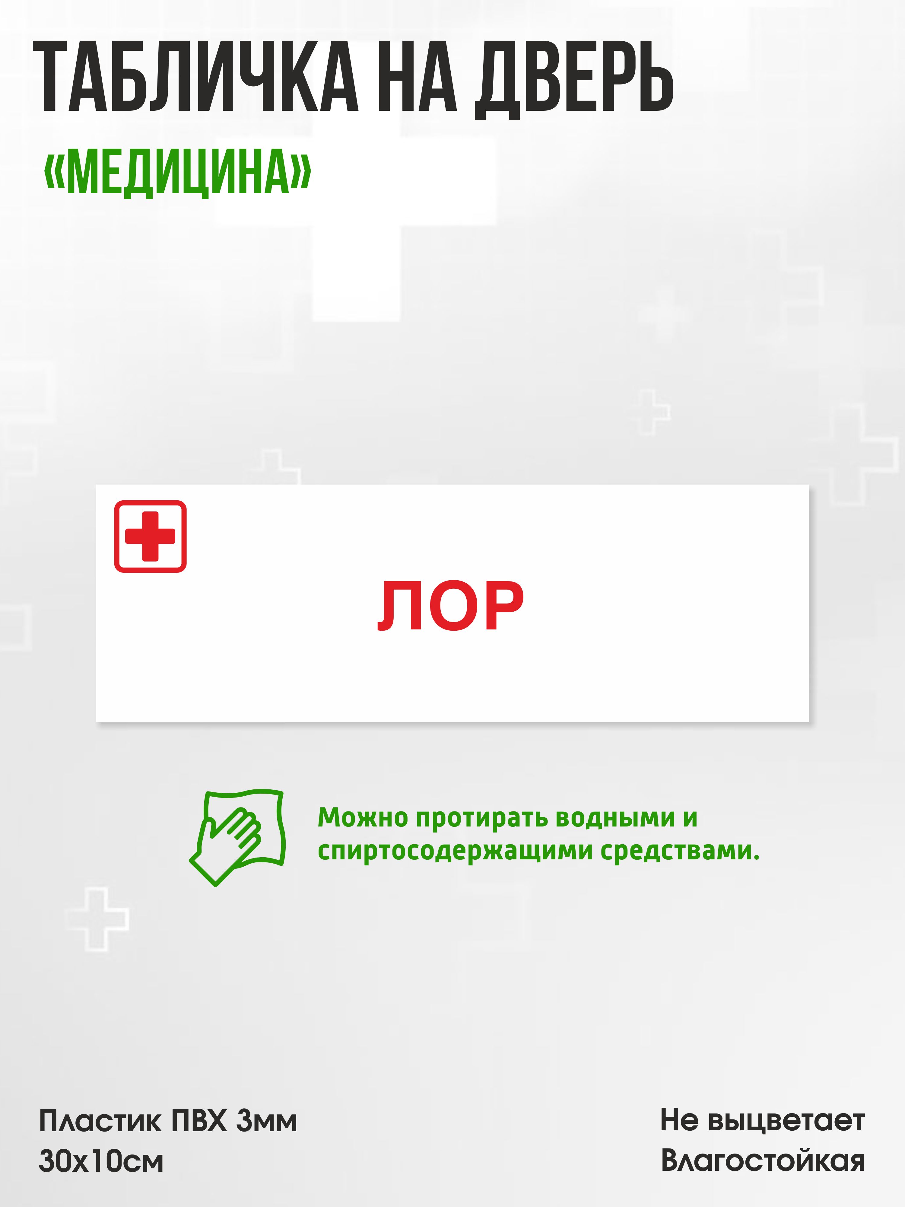 Табличка ЛОР, белая, 30х10см, ПВХ пластик, на дверь, для медицинской клиники или больницы