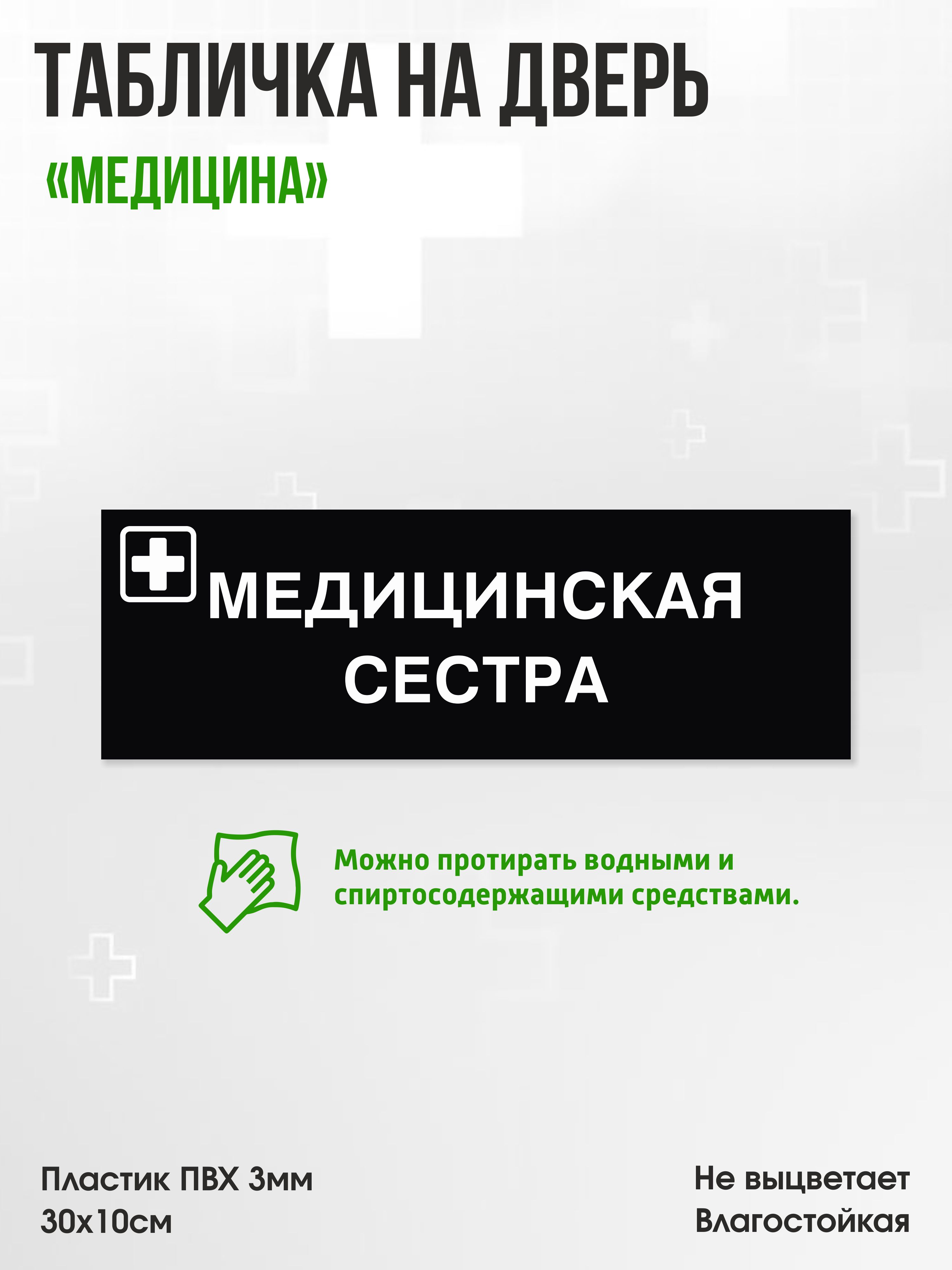 Табличка Медицинская сестра, черная, 30х10см, ПВХ пластик, на дверь, для медицинской клиники или больницы