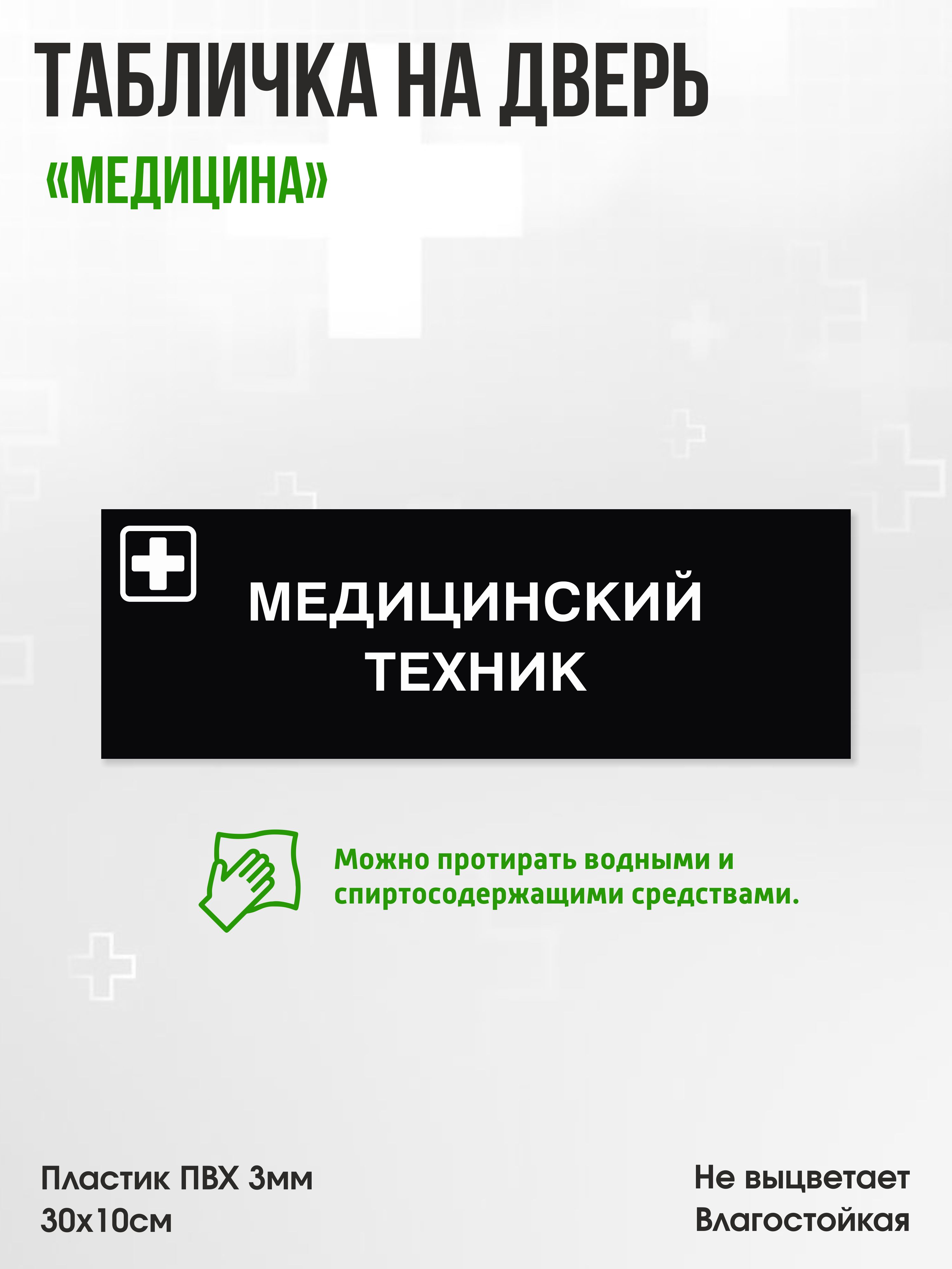 Табличка Медицинский техник, черная, 30х10см, ПВХ пластик, на дверь, для медицинской клиники или больницы