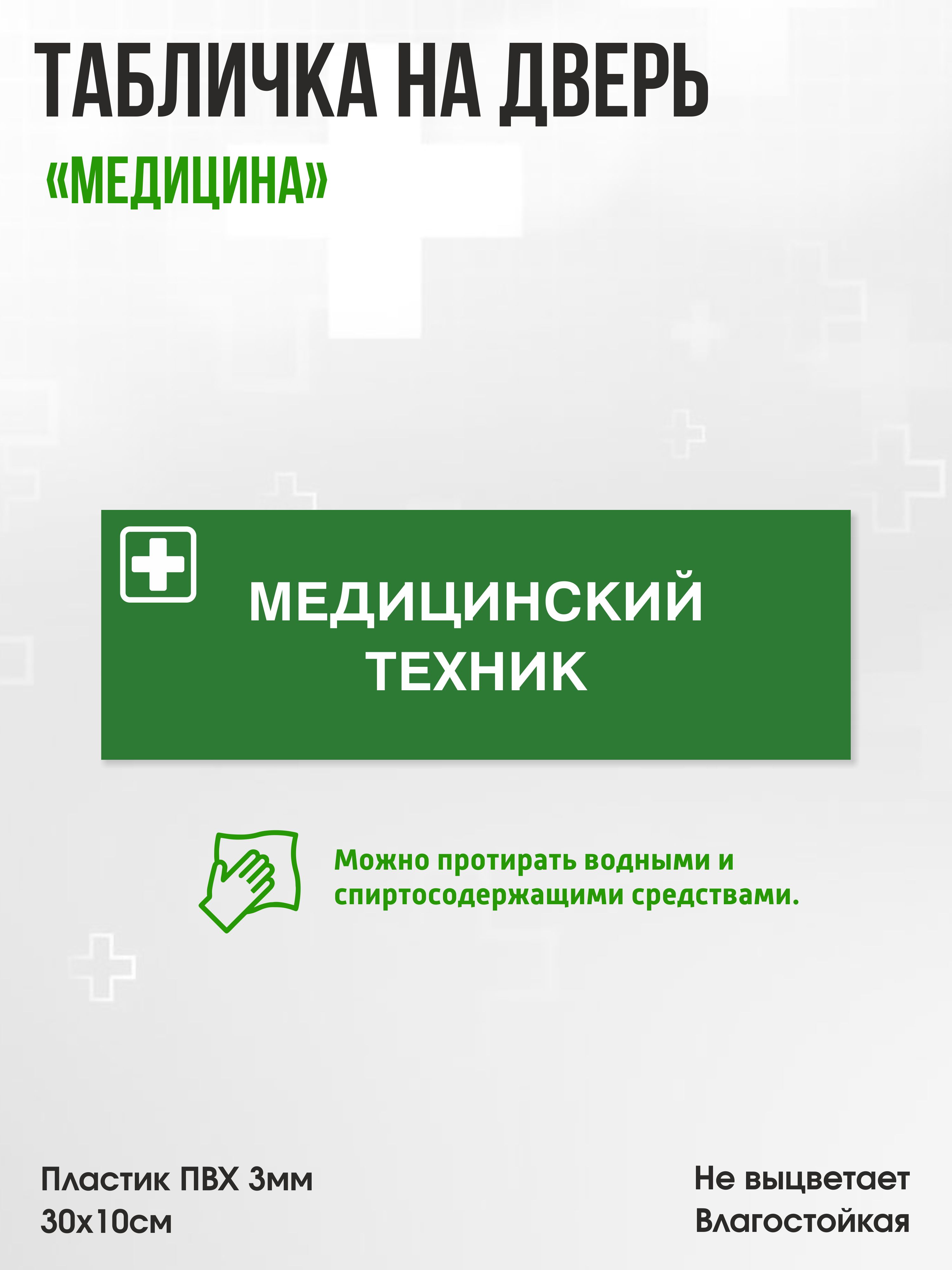Главная / Каталог продукции / Таблички и декор / Табличка Медицинский техник, зеленая, 30х10см, ПВХ пластик, на дверь, для медицинской клиники или больницы