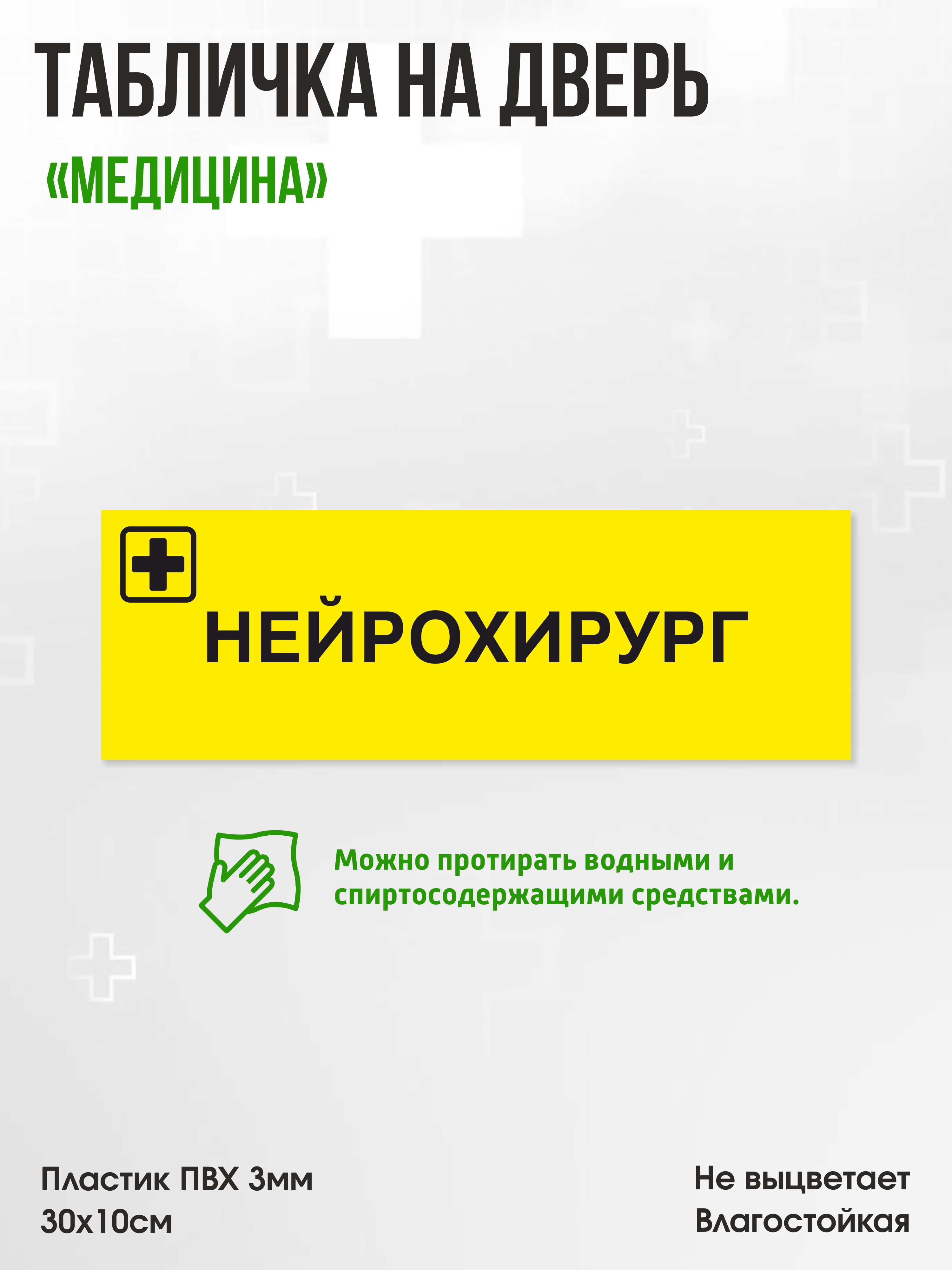 Табличка Нейрохирург, жёлтая, 30х10см, ПВХ пластик, на дверь, для медицинской клиники или больницы
