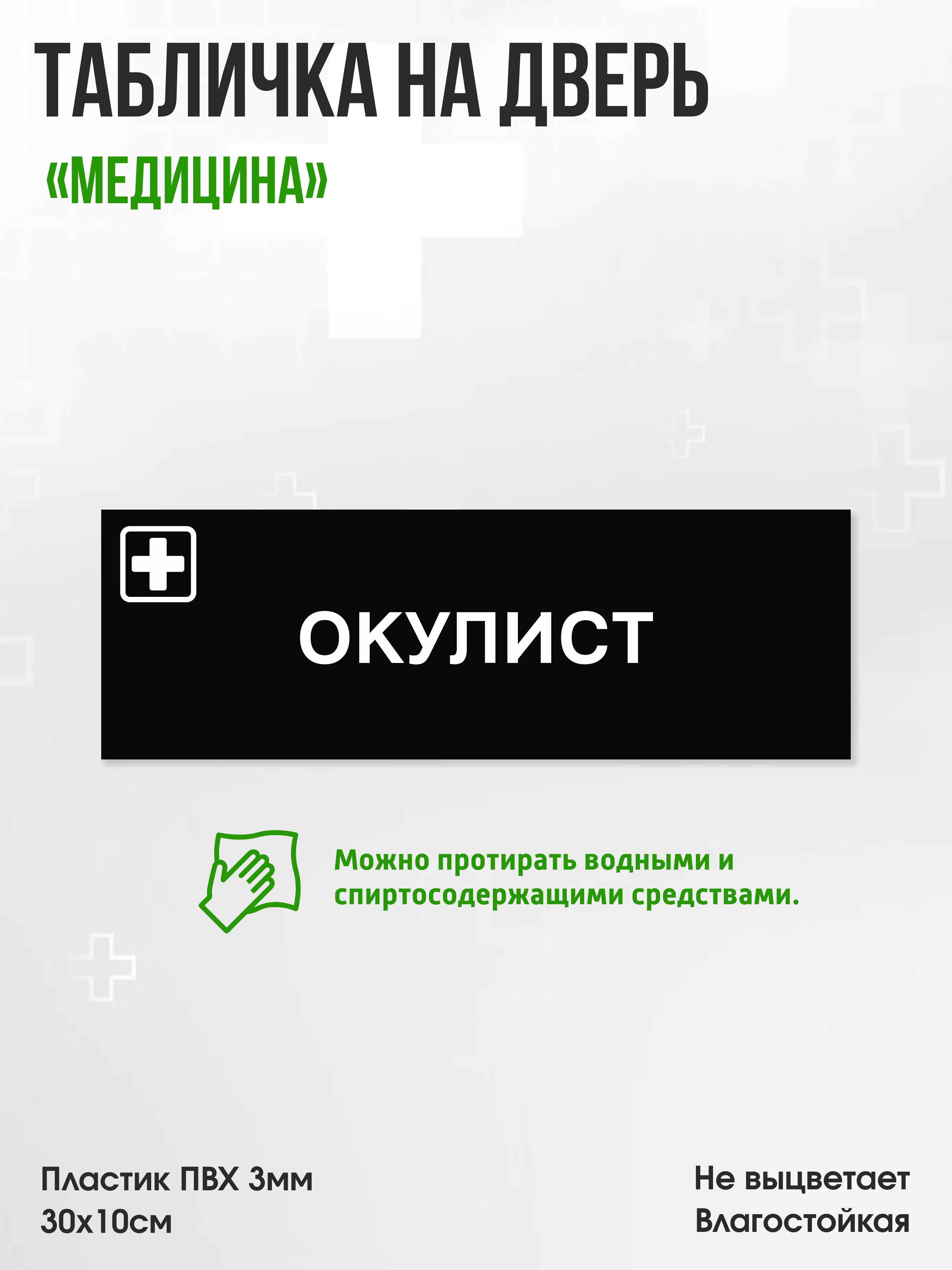 Табличка Окулист, черная, 30х10см, ПВХ пластик, на дверь, для медицинской клиники или больницы