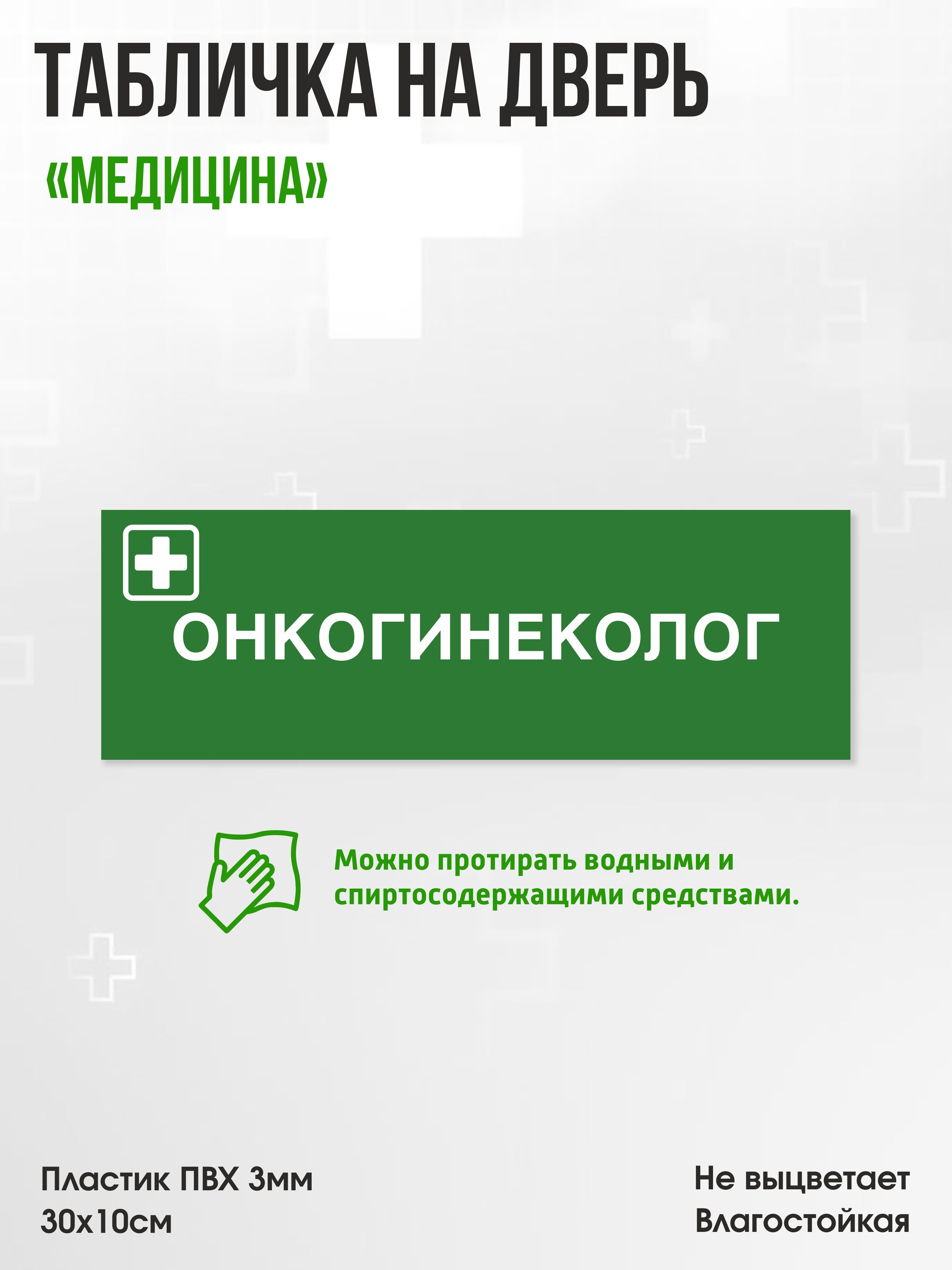 Табличка Онкогинеколог, зеленая, 30х10см, ПВХ пластик, на дверь, для медицинской клиники или больницы