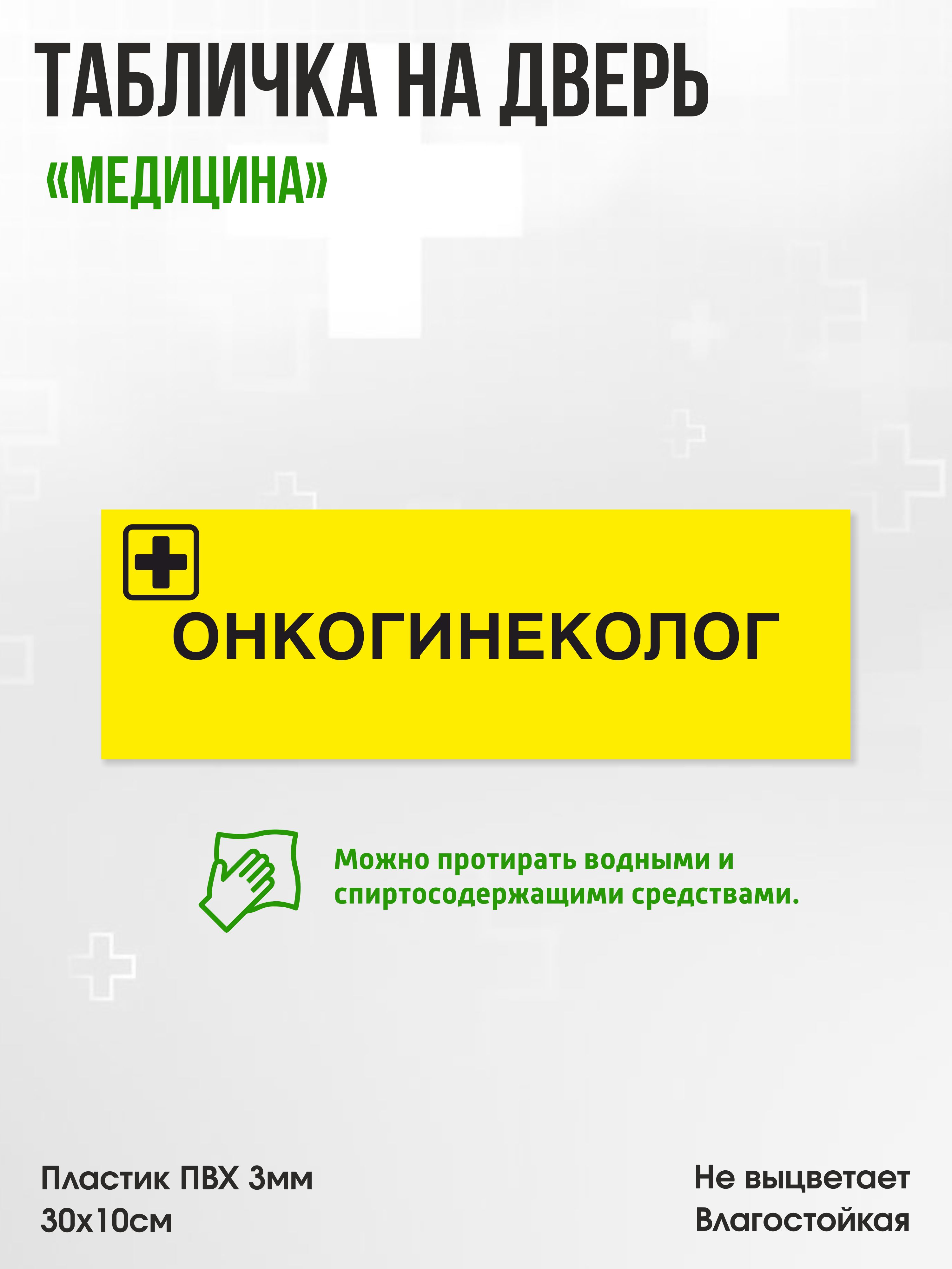 Табличка Онкогинеколог, жёлтая, 30х10см, ПВХ пластик, на дверь, для медицинской клиники или больницы