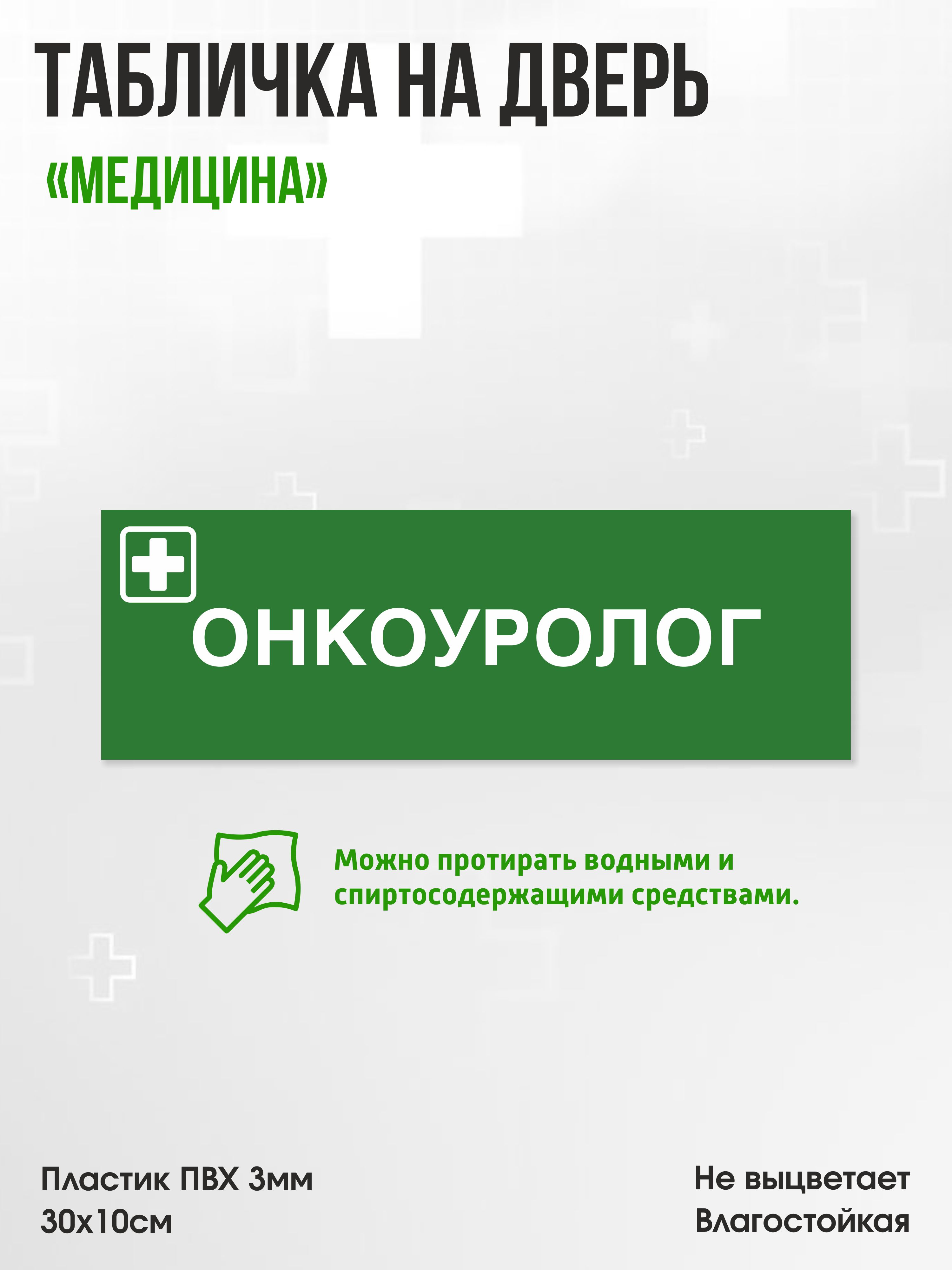 Табличка Онкоуролог, зеленая, 30х10см, ПВХ пластик, на дверь, для медицинской клиники или больницы