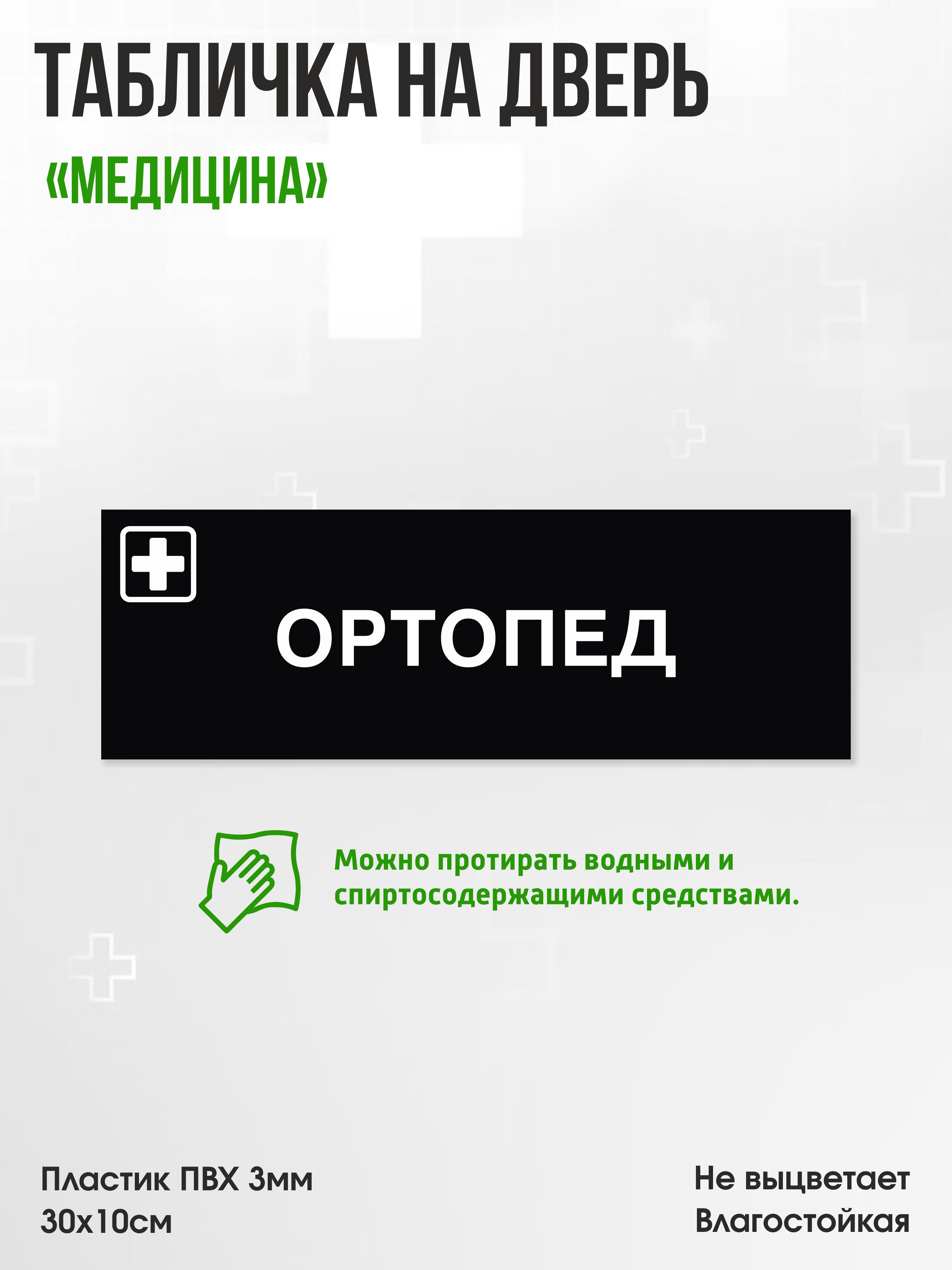 Табличка Ортопед, черная, 30х10см, ПВХ пластик, на дверь, для медицинской клиники или больницы