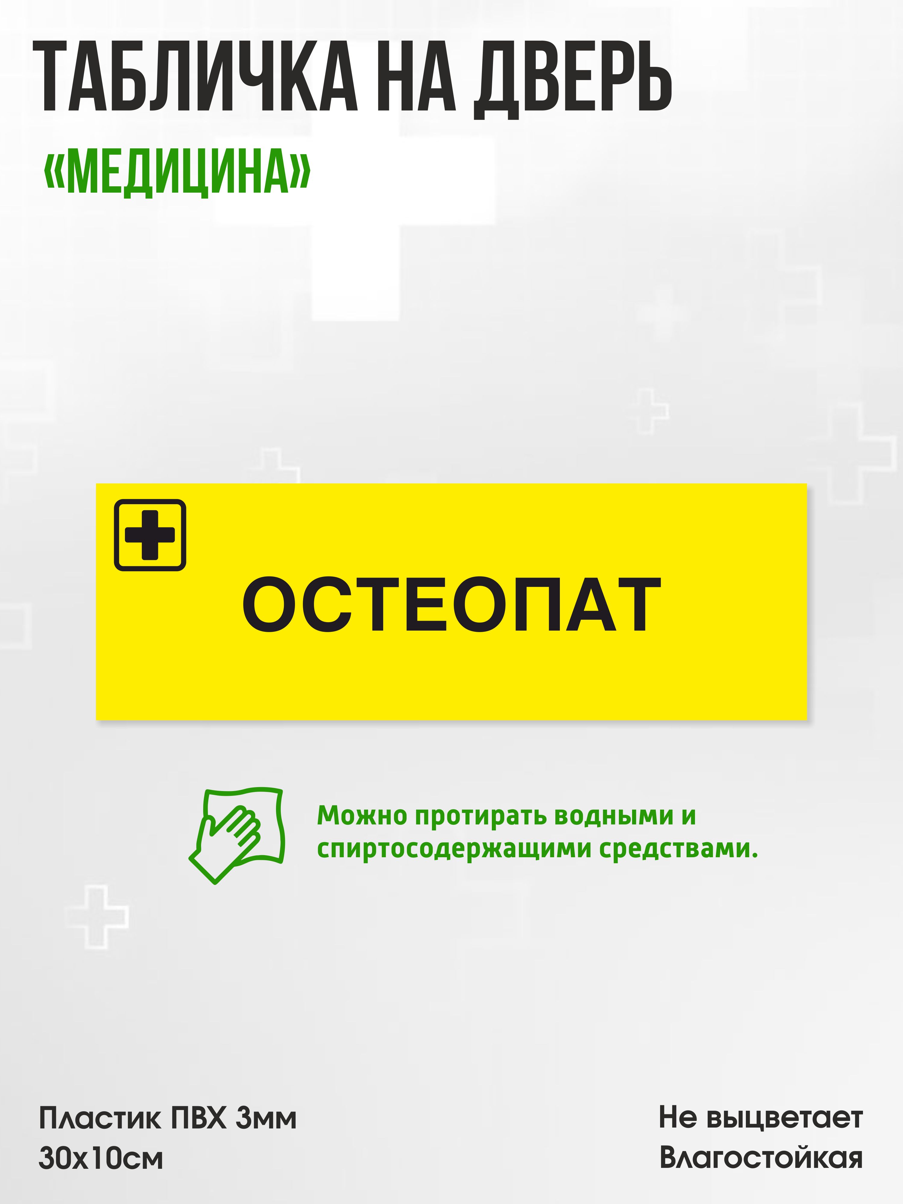 Табличка Остеопат, жёлтая, 30х10см, ПВХ пластик, на дверь, для медицинской клиники или больницы