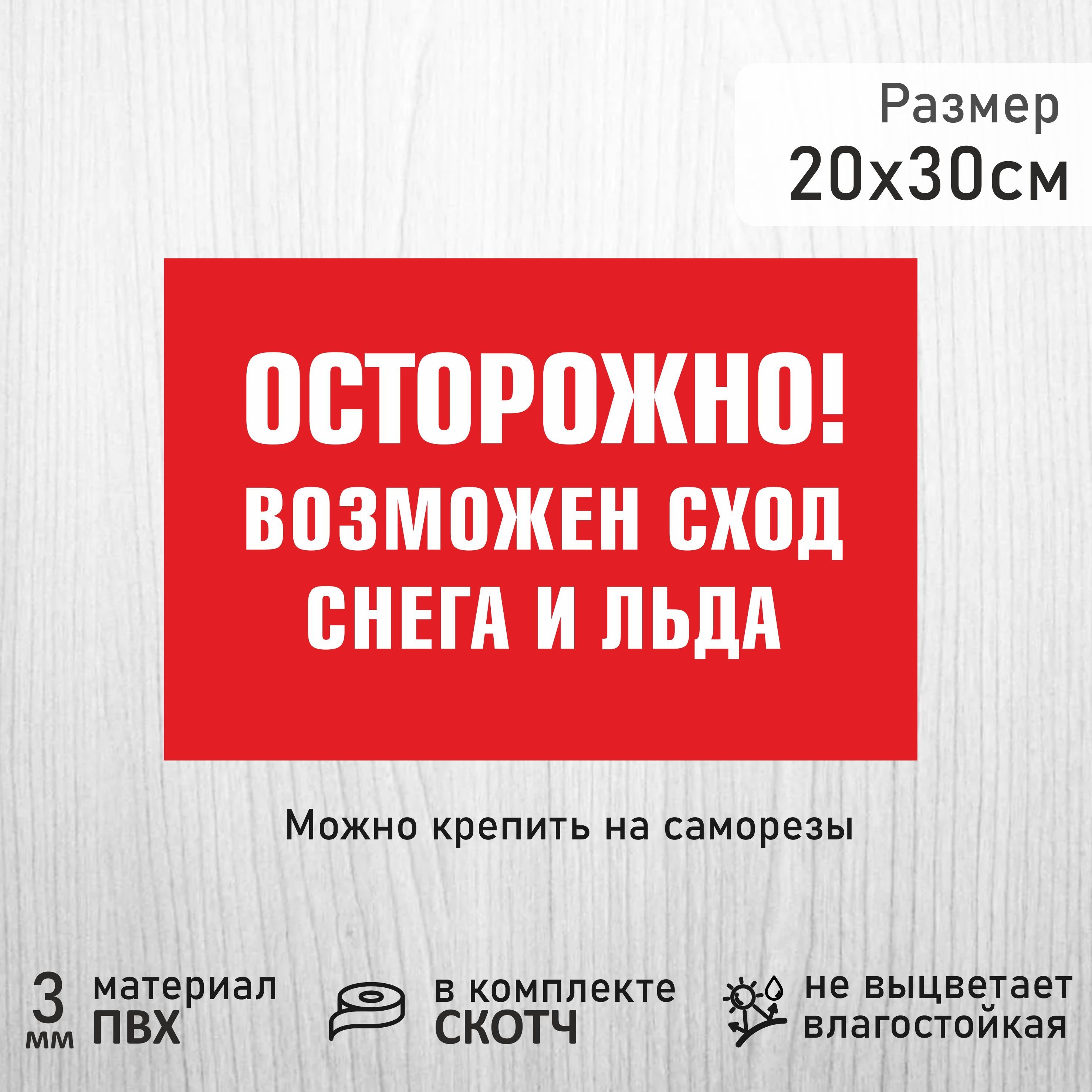 Табличка "Осторожно возможен сход снега и льда", 20х30см, ПВХ, уличная
