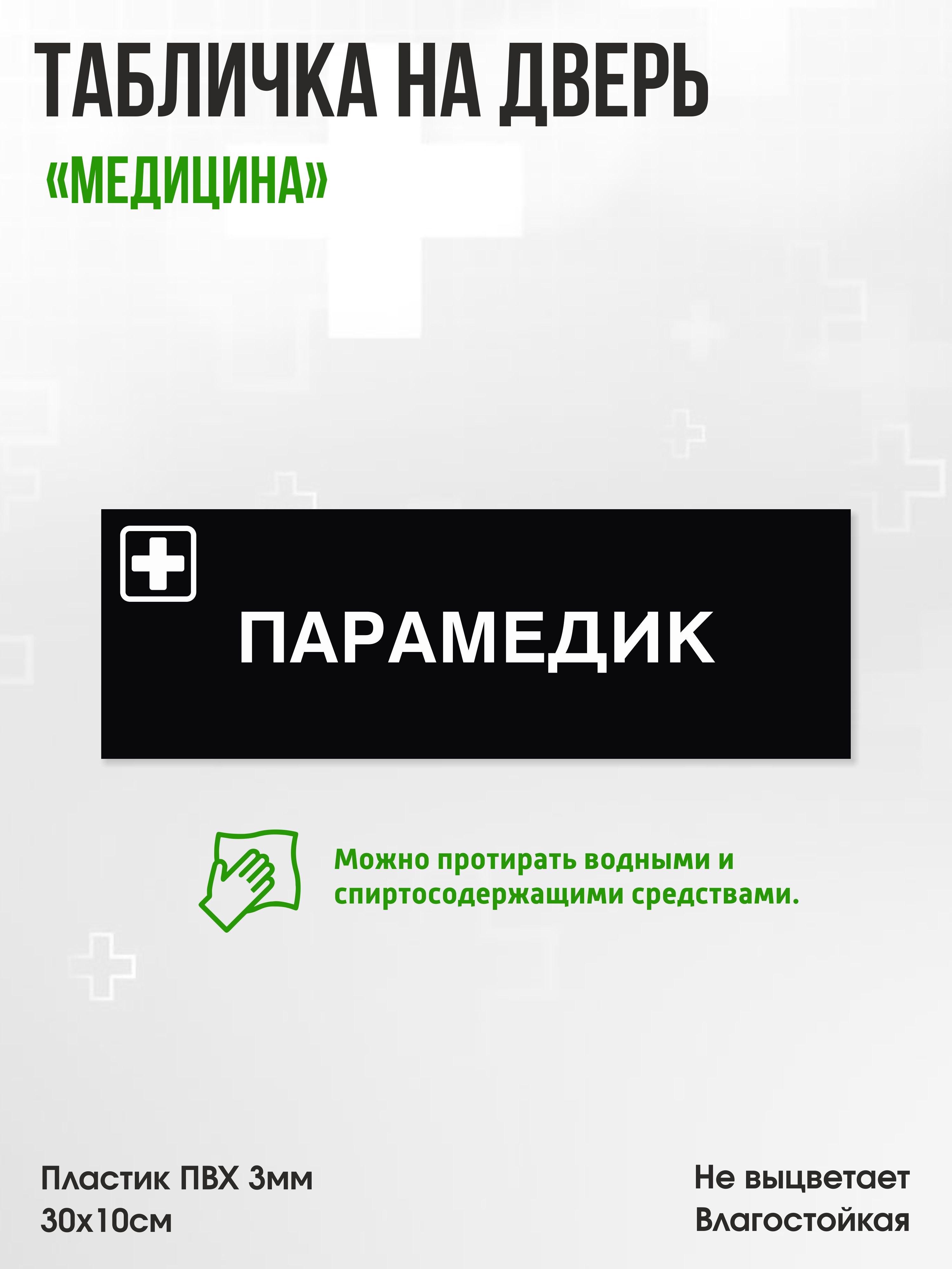 Табличка Парамедик, черная, 30х10см, ПВХ пластик, на дверь, для медицинской клиники или больницы
