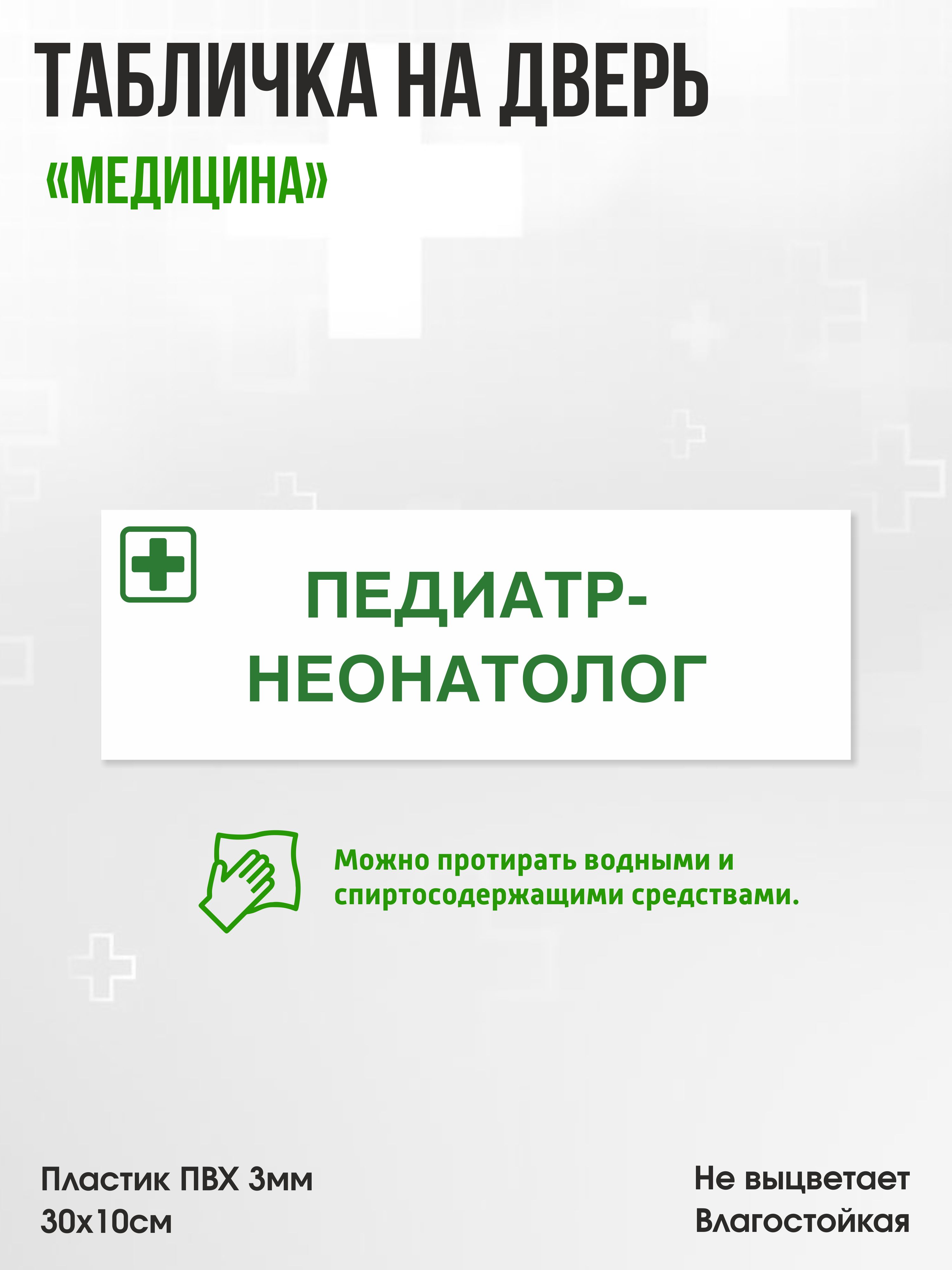 Табличка Педиатр-неонапотолог, белая, 30х10см, ПВХ пластик, на дверь, для медицинской клиники или больницы