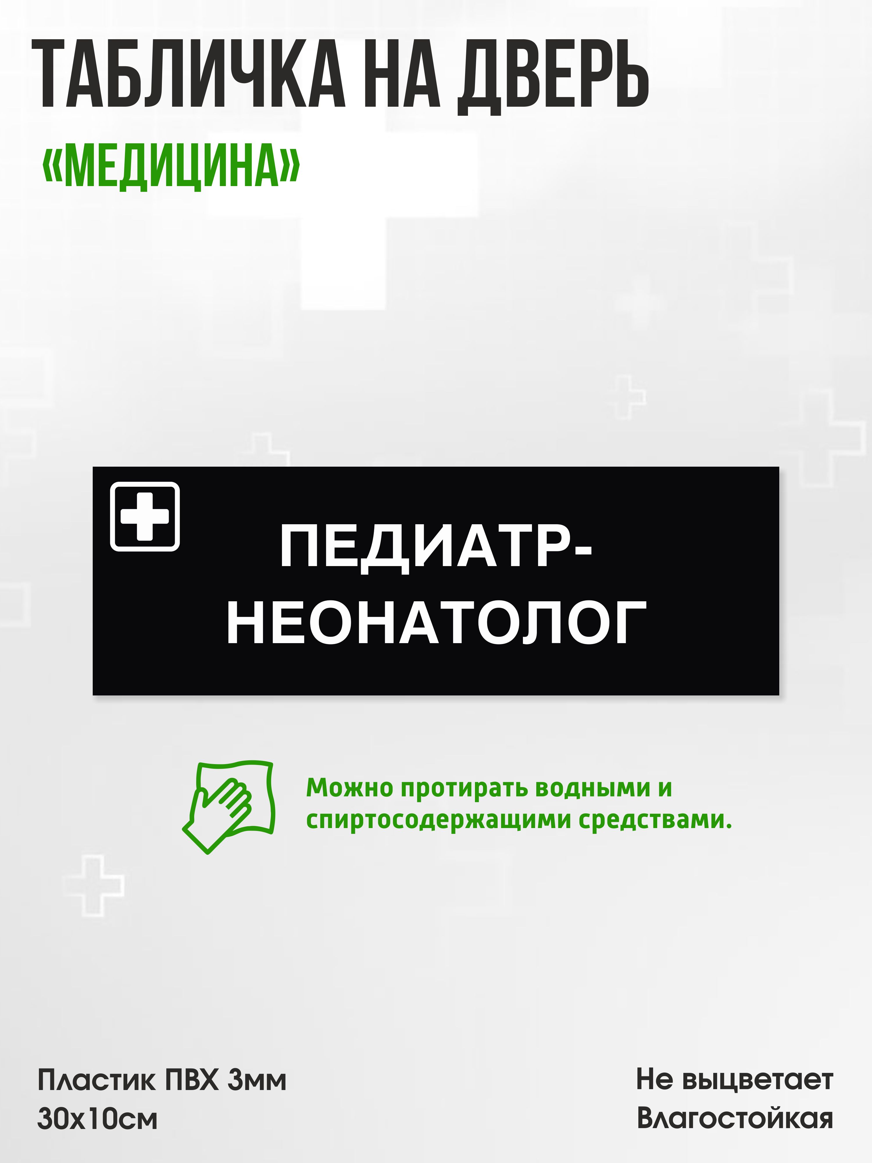 Главная / Каталог продукции / Таблички и декор / Табличка Педиатр-неонапотолог, черная, 30х10см, ПВХ пластик, на дверь, для медицинской клиники или больницы