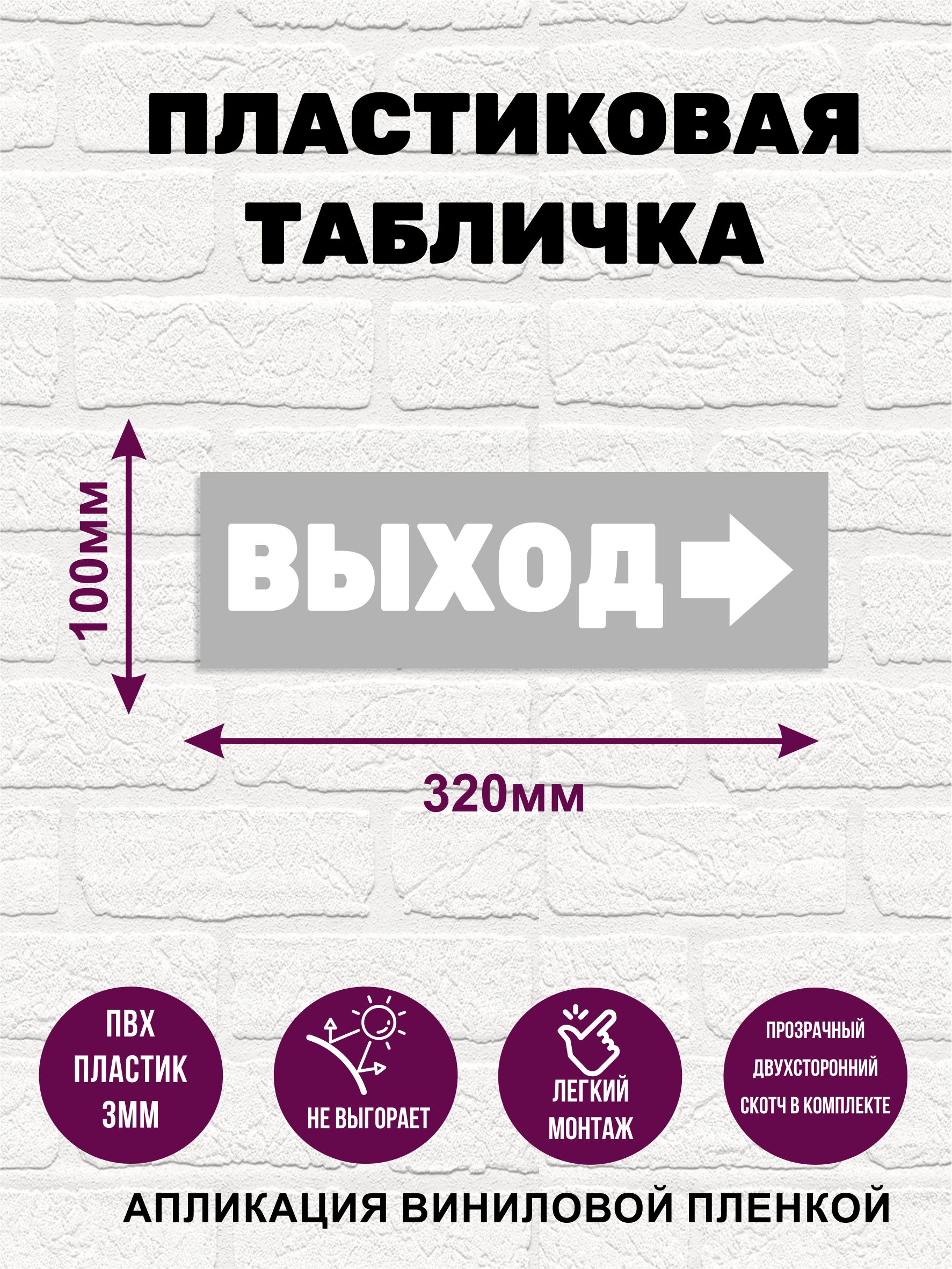 Табличка пластиковая "Выход", со стрелкой, ПВХ