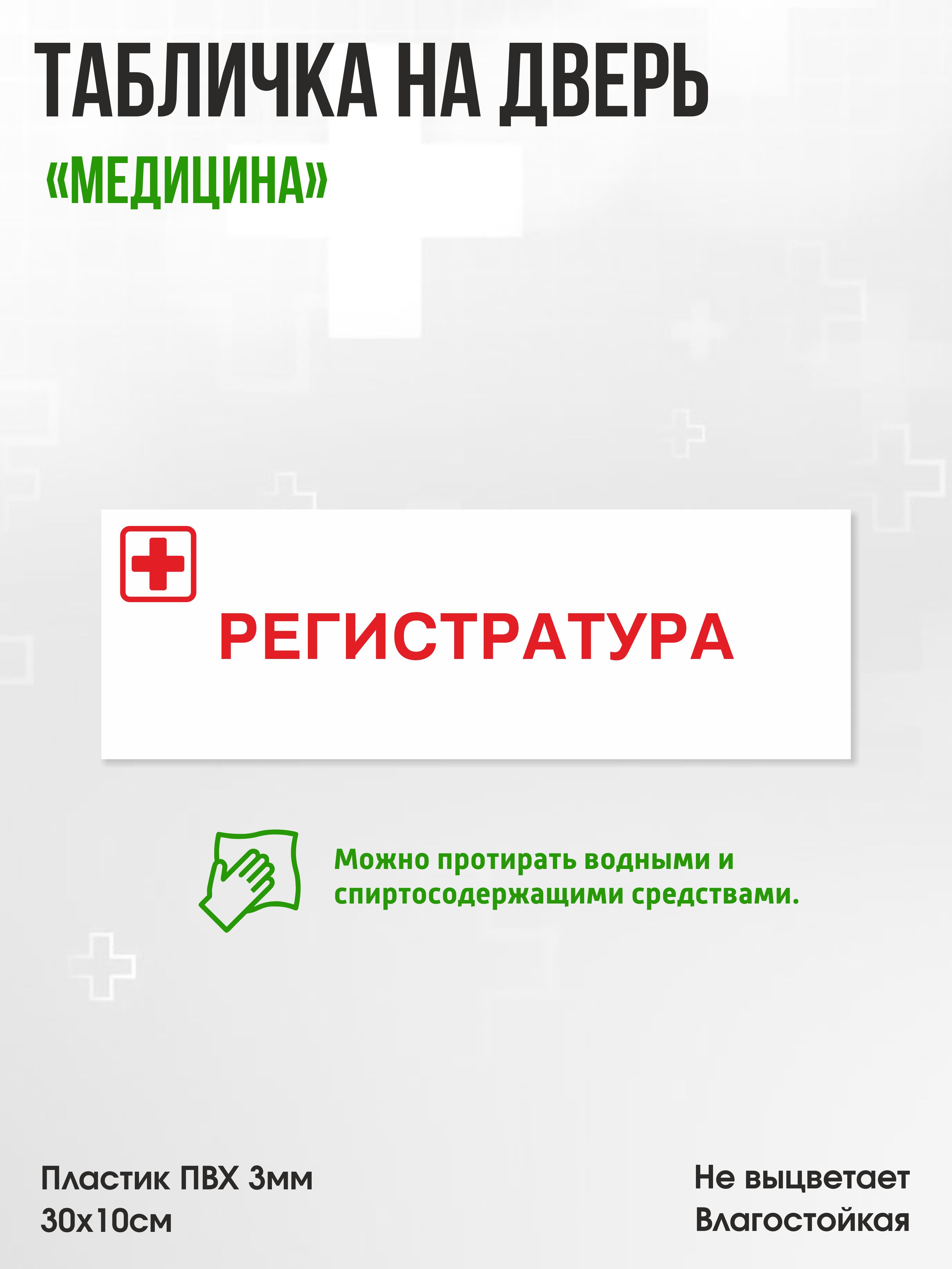 Табличка Регистратура, белая, 30х10см, ПВХ пластик, на дверь, для медицинской клиники или больницы