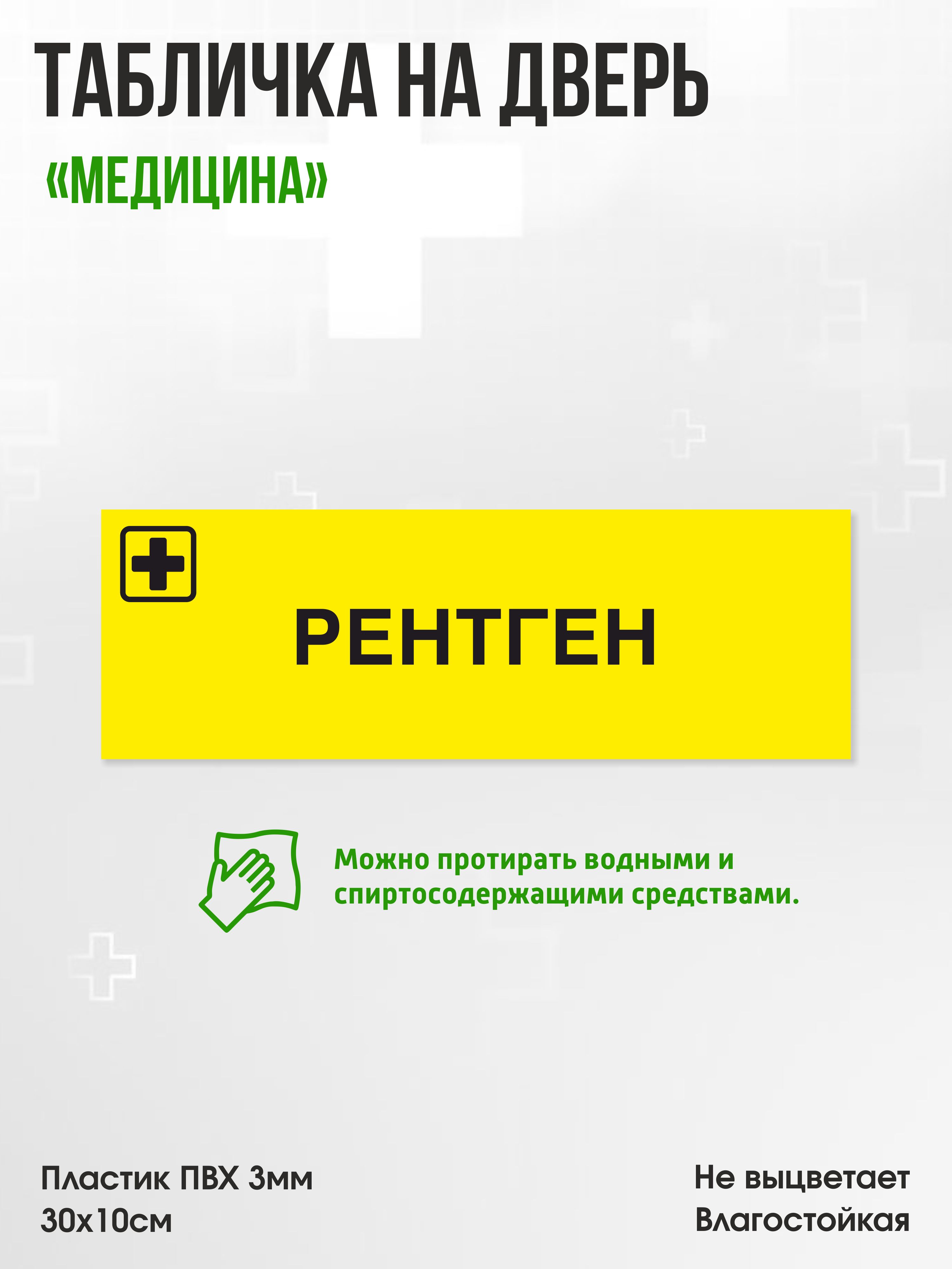 Табличка Рентген, жёлтая, 30х10см, ПВХ пластик, на дверь, для медицинской клиники или больницы
