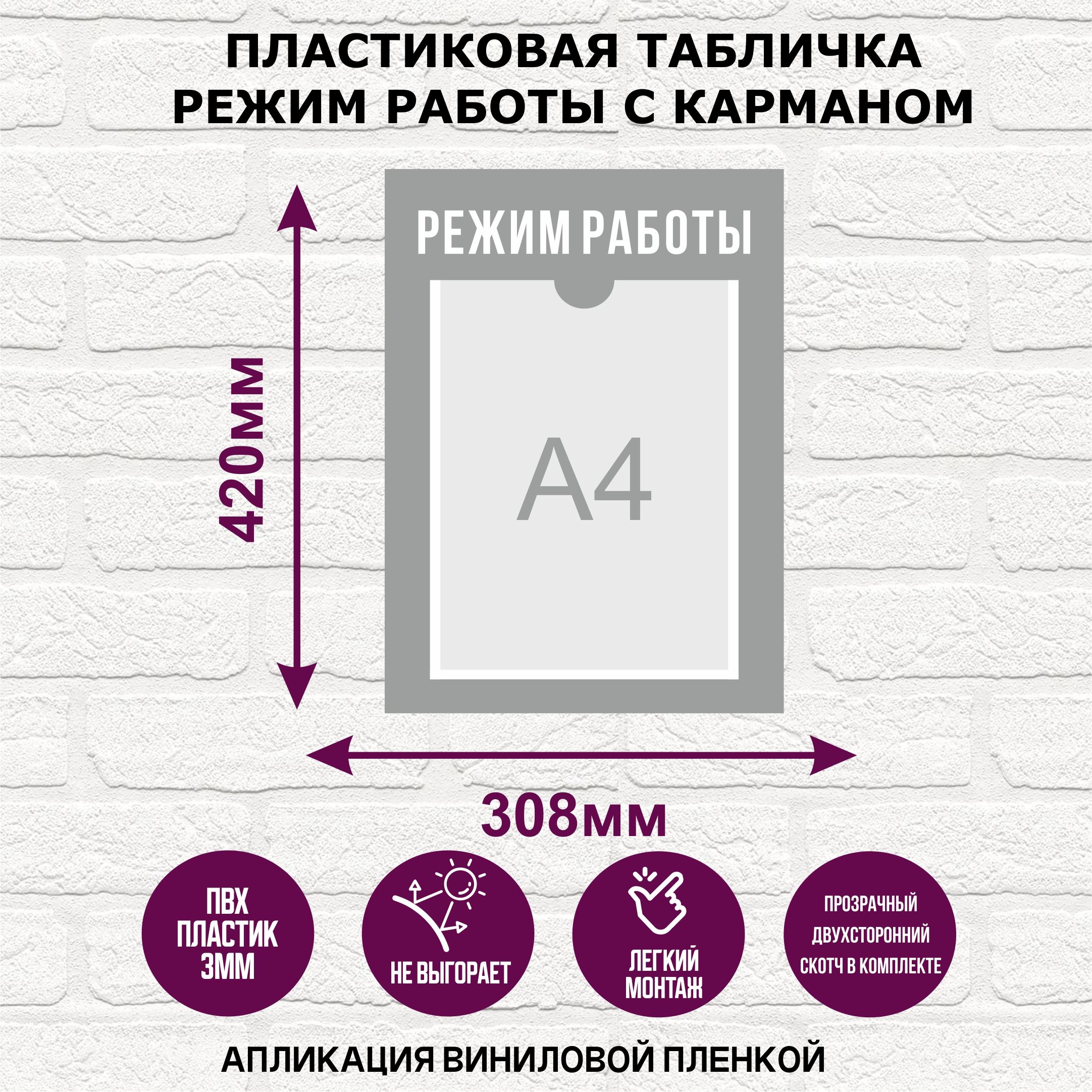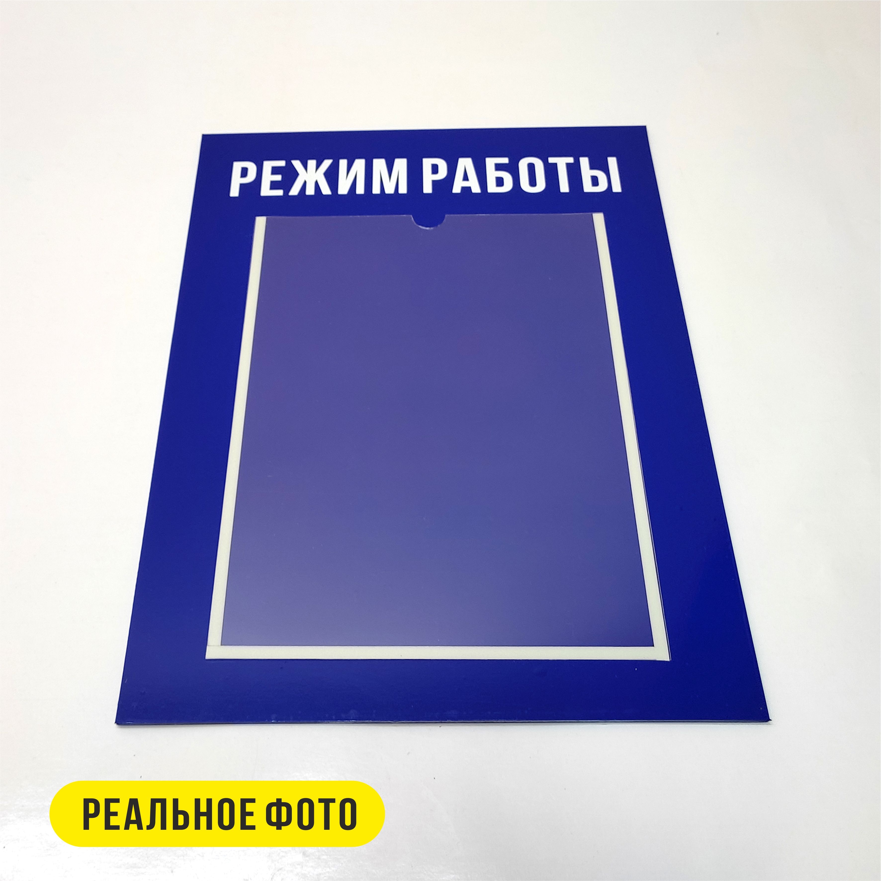 Главная / Каталог продукции / Вывески и оформление торговых точек / Табличка "Режим работы", с карманом, ПВХ пластик 3мм, синяя, карман А4
