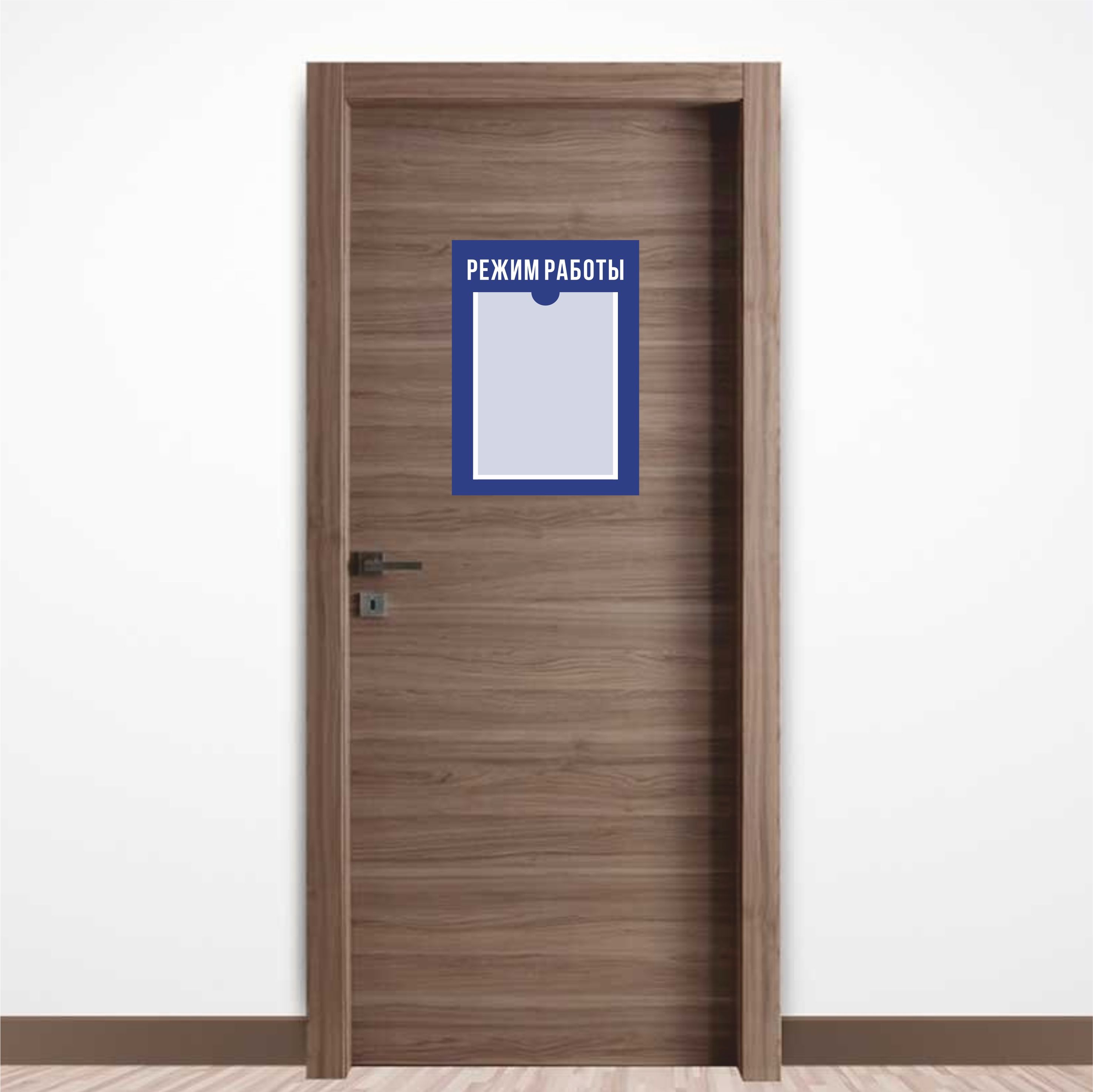 Табличка "Режим работы", с карманом, ПВХ пластик 3мм, синяя, карман А4