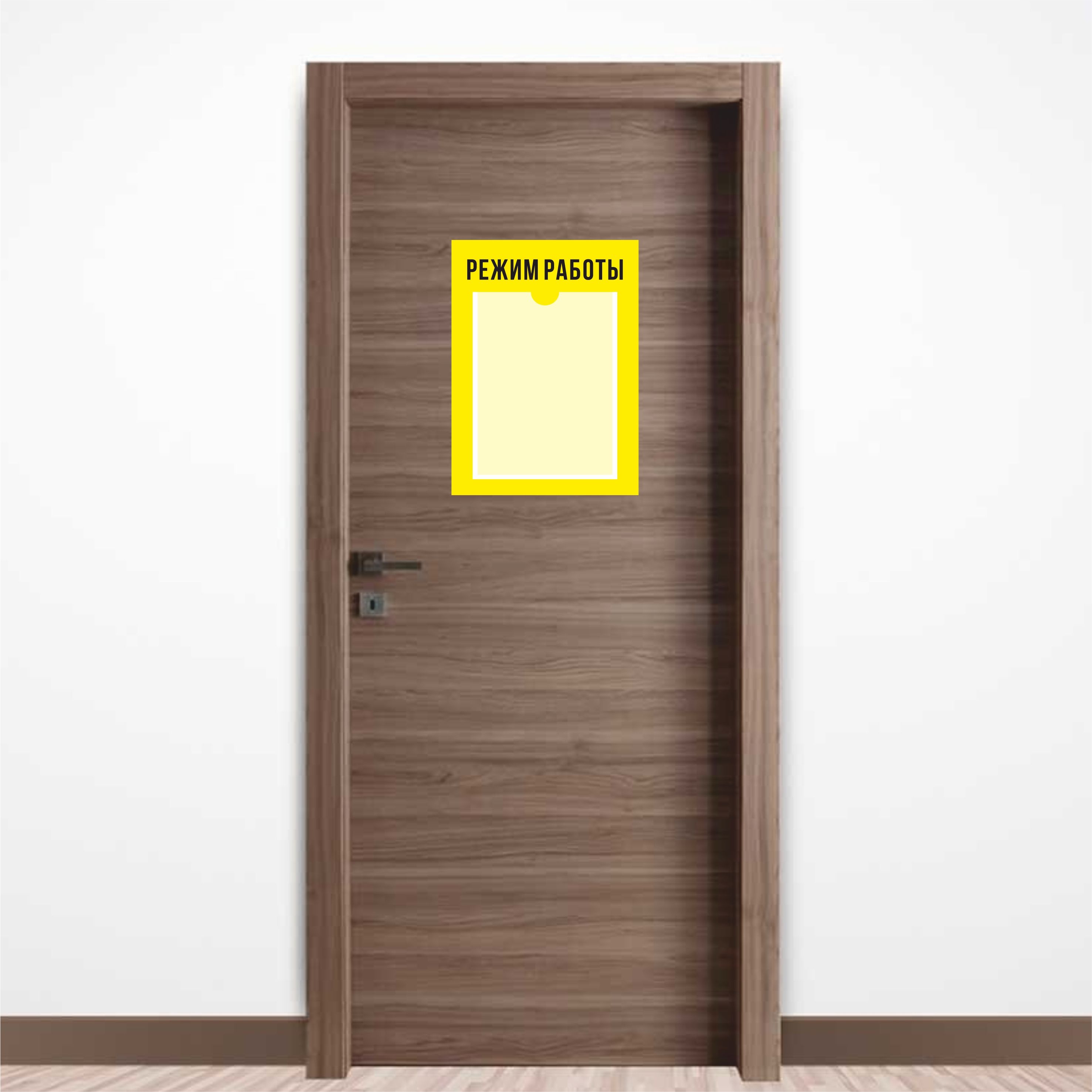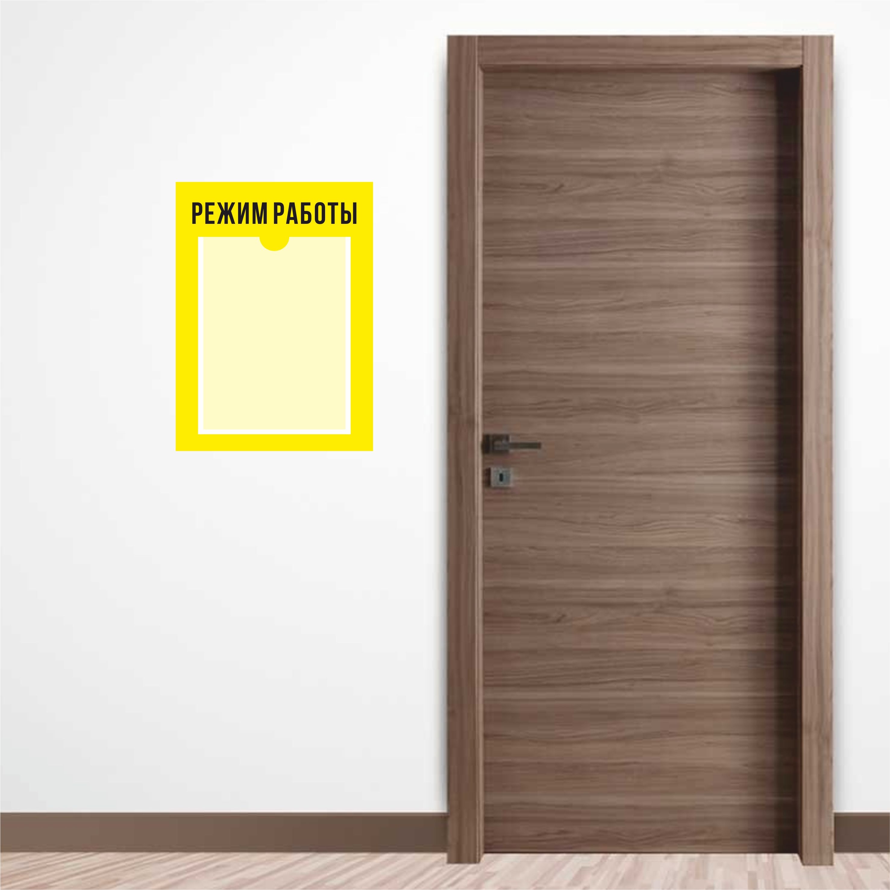 Табличка "Режим работы", с карманом, ПВХ пластик 3мм, желтая, карман А5
