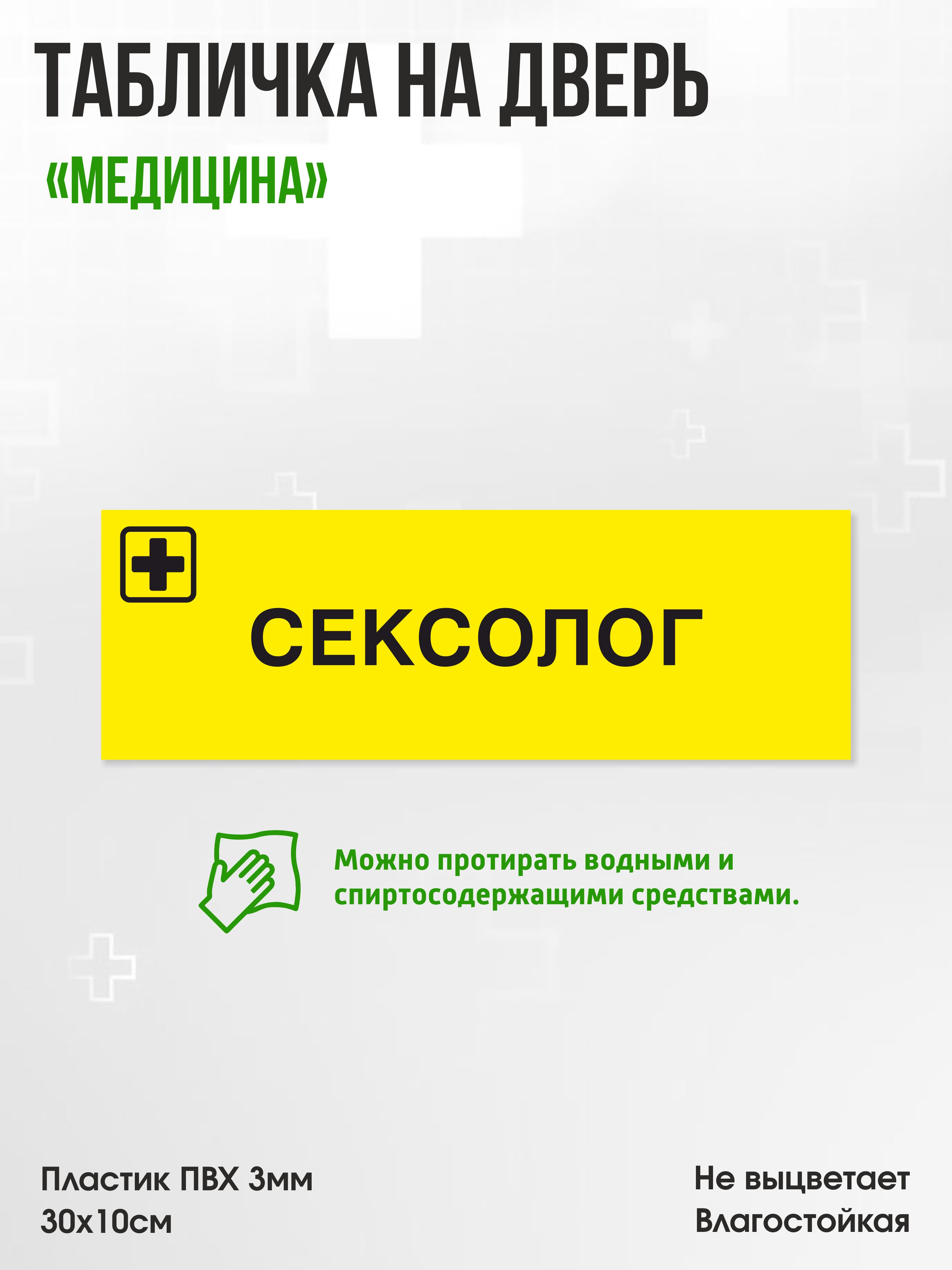 Табличка Сексолог, жёлтая, 30х10см, ПВХ пластик, на дверь, для медицинской клиники или больницы