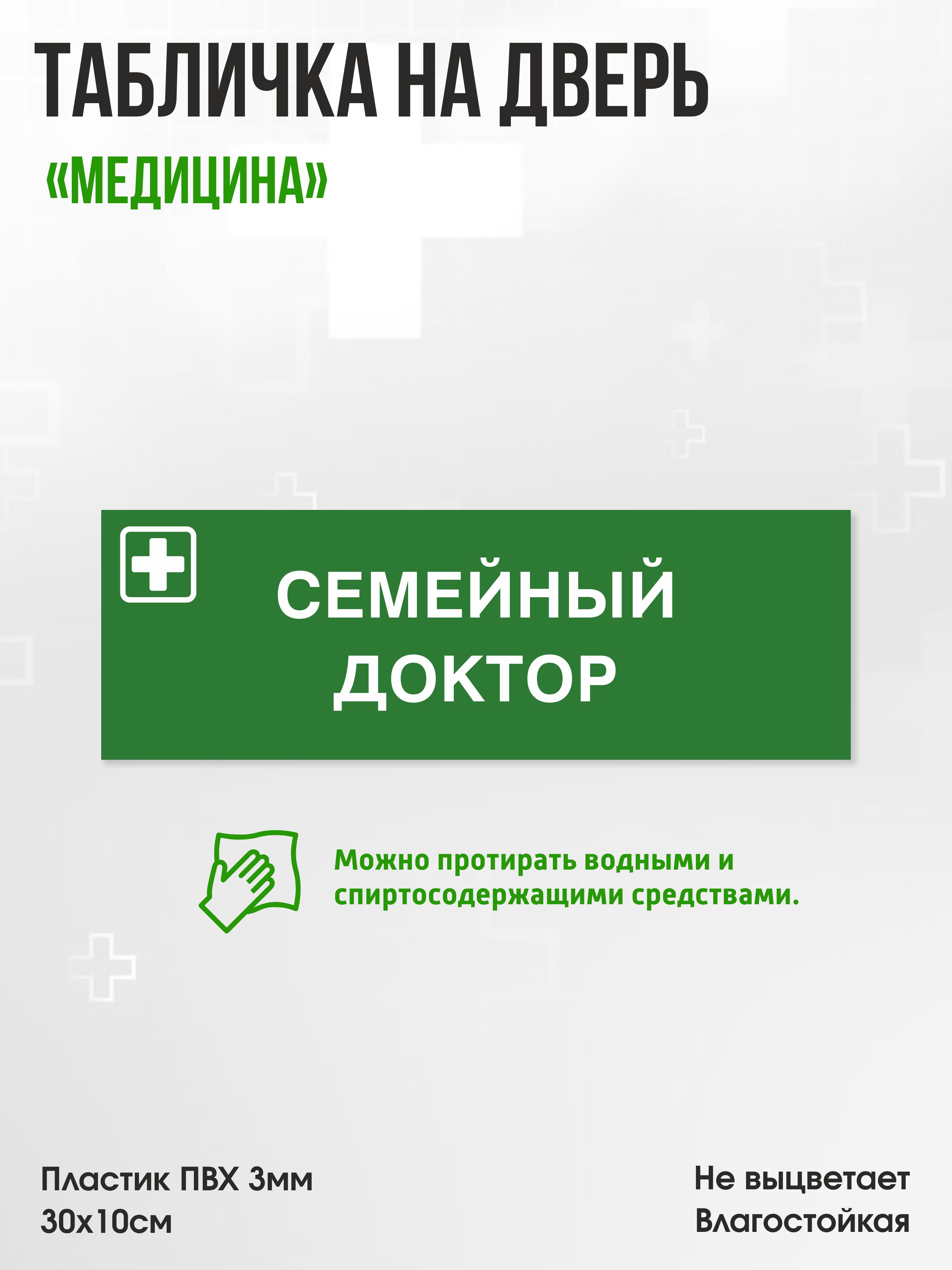 Главная / Каталог продукции / Таблички и декор / Табличка Семейный доктор, зеленая, 30х10см, ПВХ пластик, на дверь, для медицинской клиники или больницы