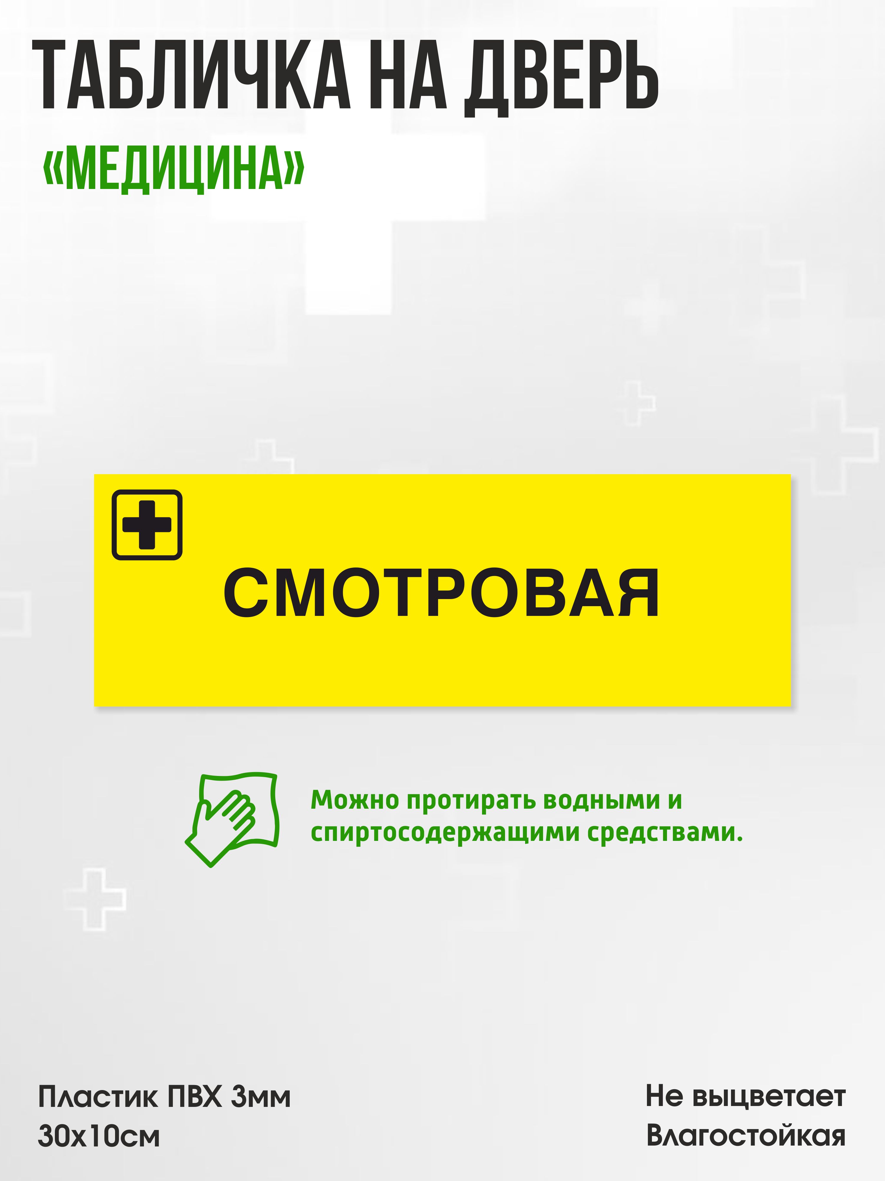 Табличка Смотровая, жёлтая, 30х10см, ПВХ пластик, на дверь, для медицинской клиники или больницы