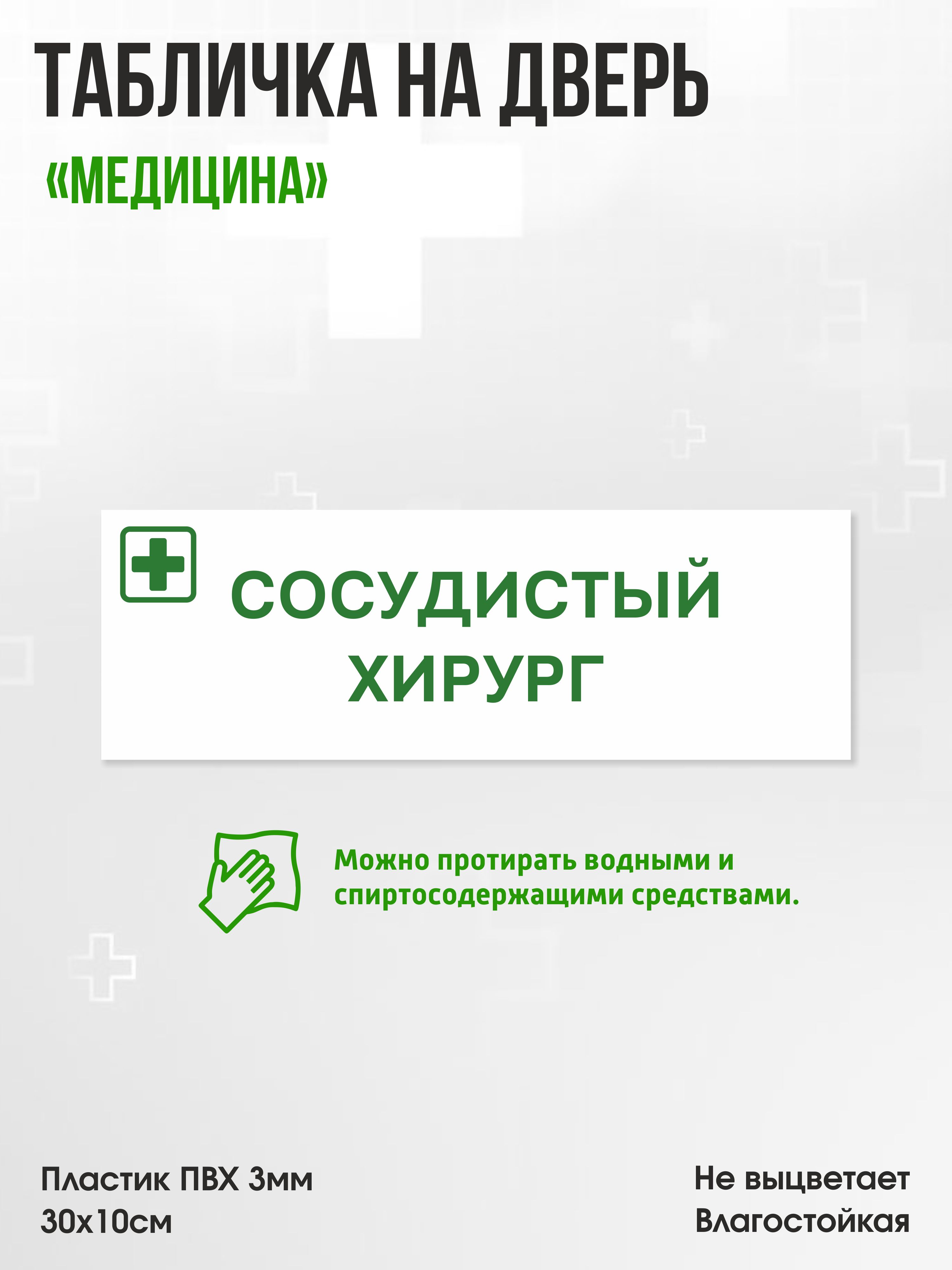Табличка Сосудистый хирург, белая, 30х10см, ПВХ пластик, на дверь, для медицинской клиники или больницы
