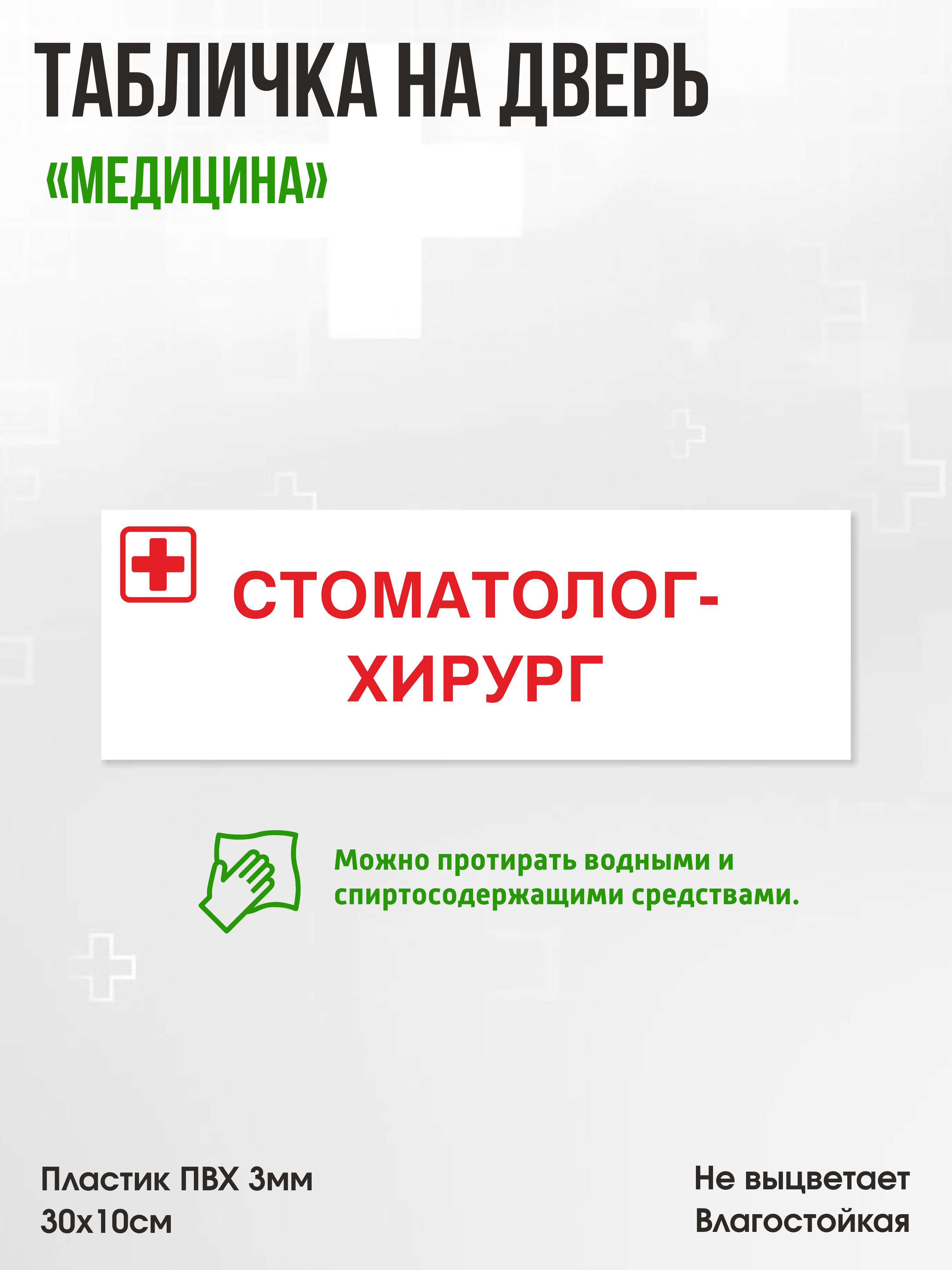 Табличка Стоматолог-хирург, белая, 30х10см, ПВХ пластик, на дверь, для медицинской клиники или больницы