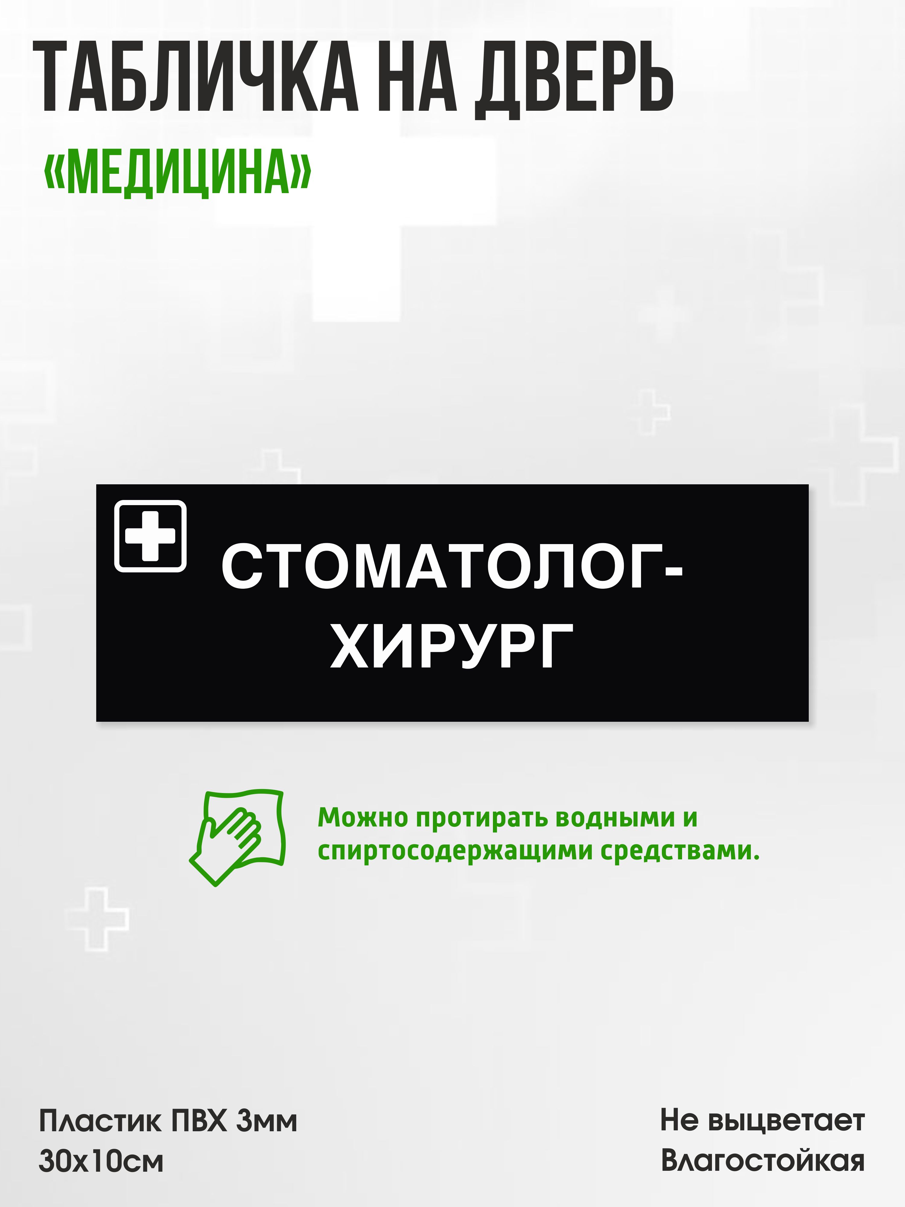 Главная / Каталог продукции / Таблички и декор / Табличка Стоматолог-хирург, черная, 30х10см, ПВХ пластик, на дверь, для медицинской клиники или больницы
