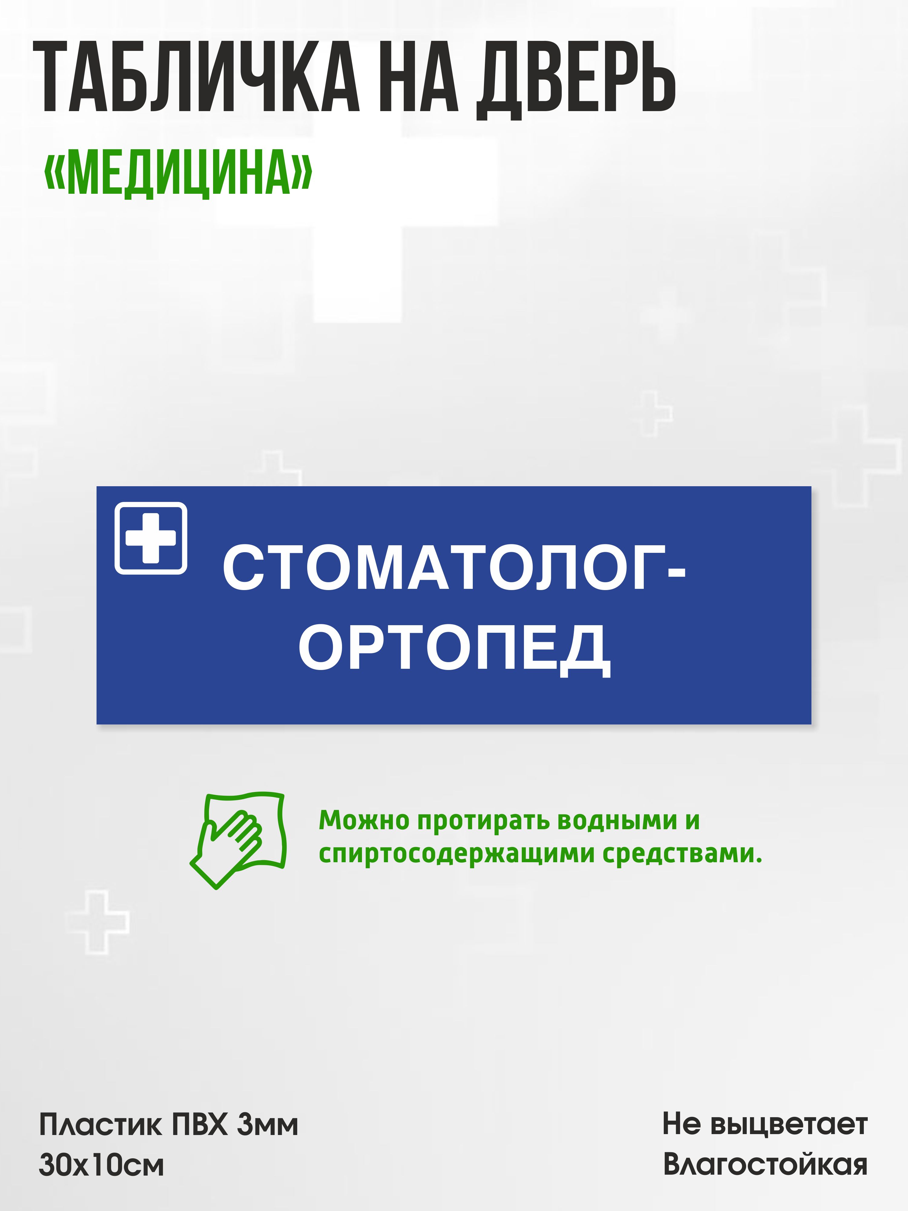 Табличка Стоматолог-ортопед, синяя, 30х10см, ПВХ пластик, на дверь, для медицинской клиники или больницы