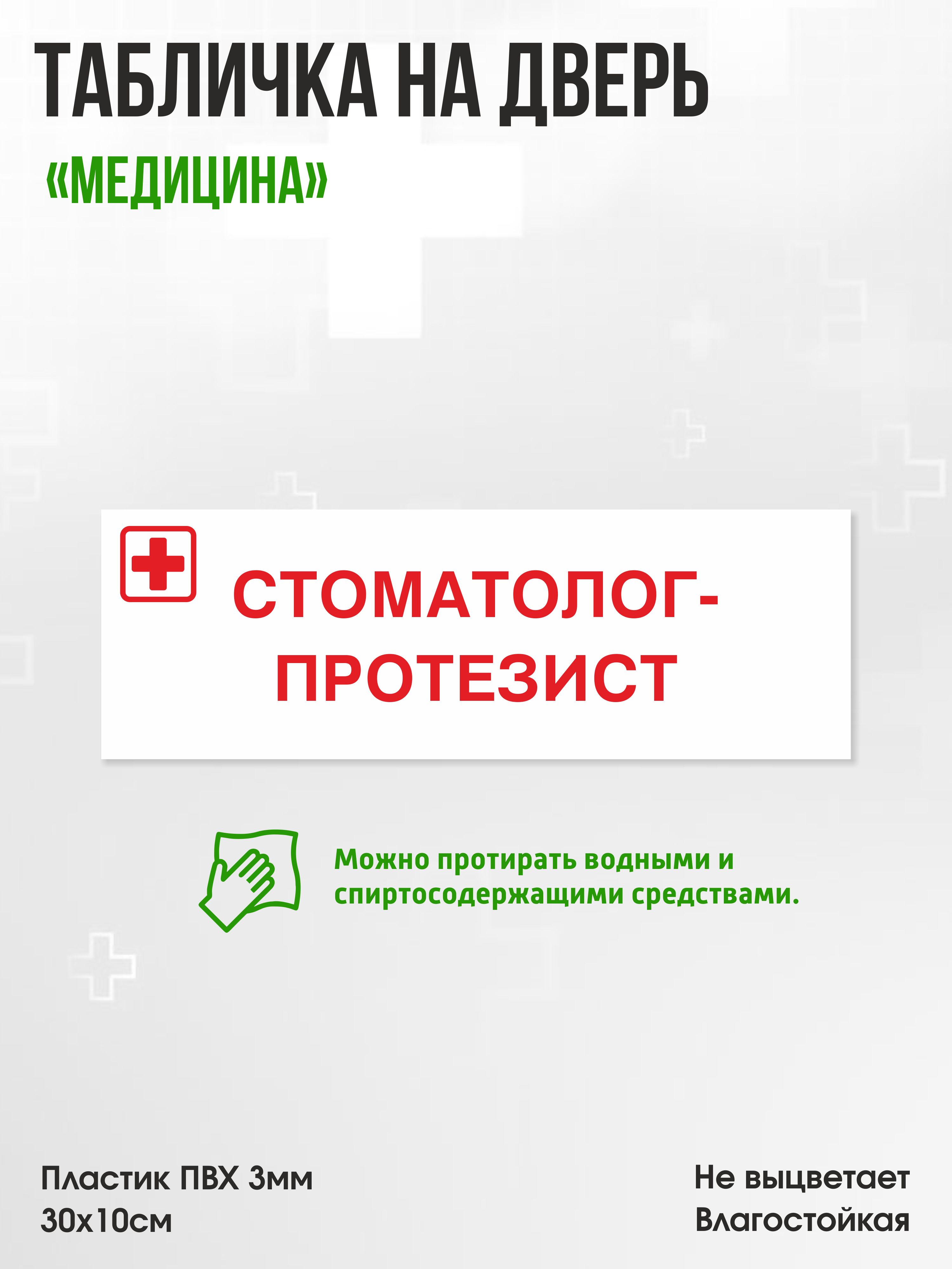 Табличка Стоматолог-протезист, белая, 30х10см, ПВХ пластик, на дверь, для медицинской клиники или больницы