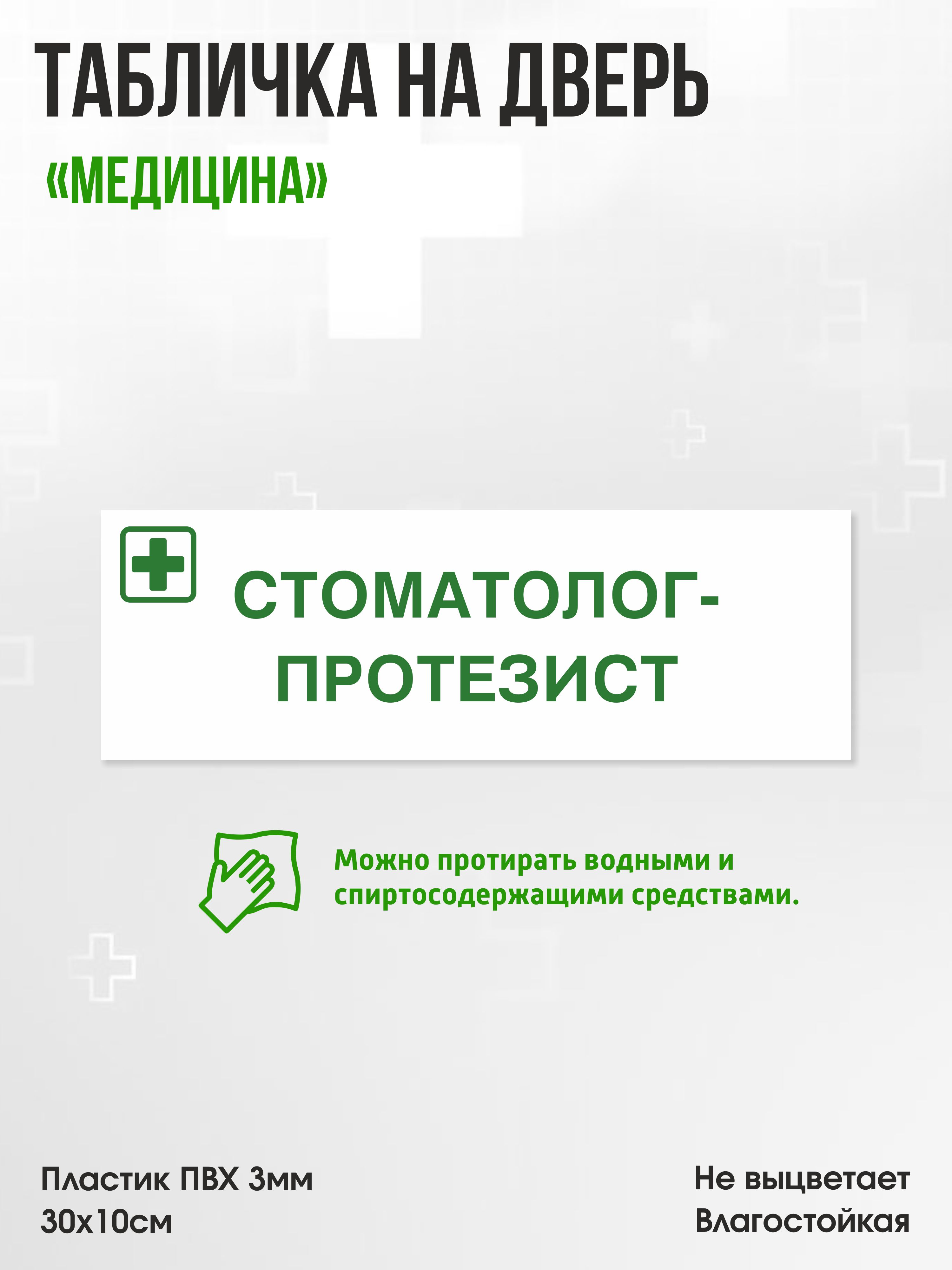 Табличка Стоматолог-протезист, белая, 30х10см, ПВХ пластик, на дверь, для медицинской клиники или больницы