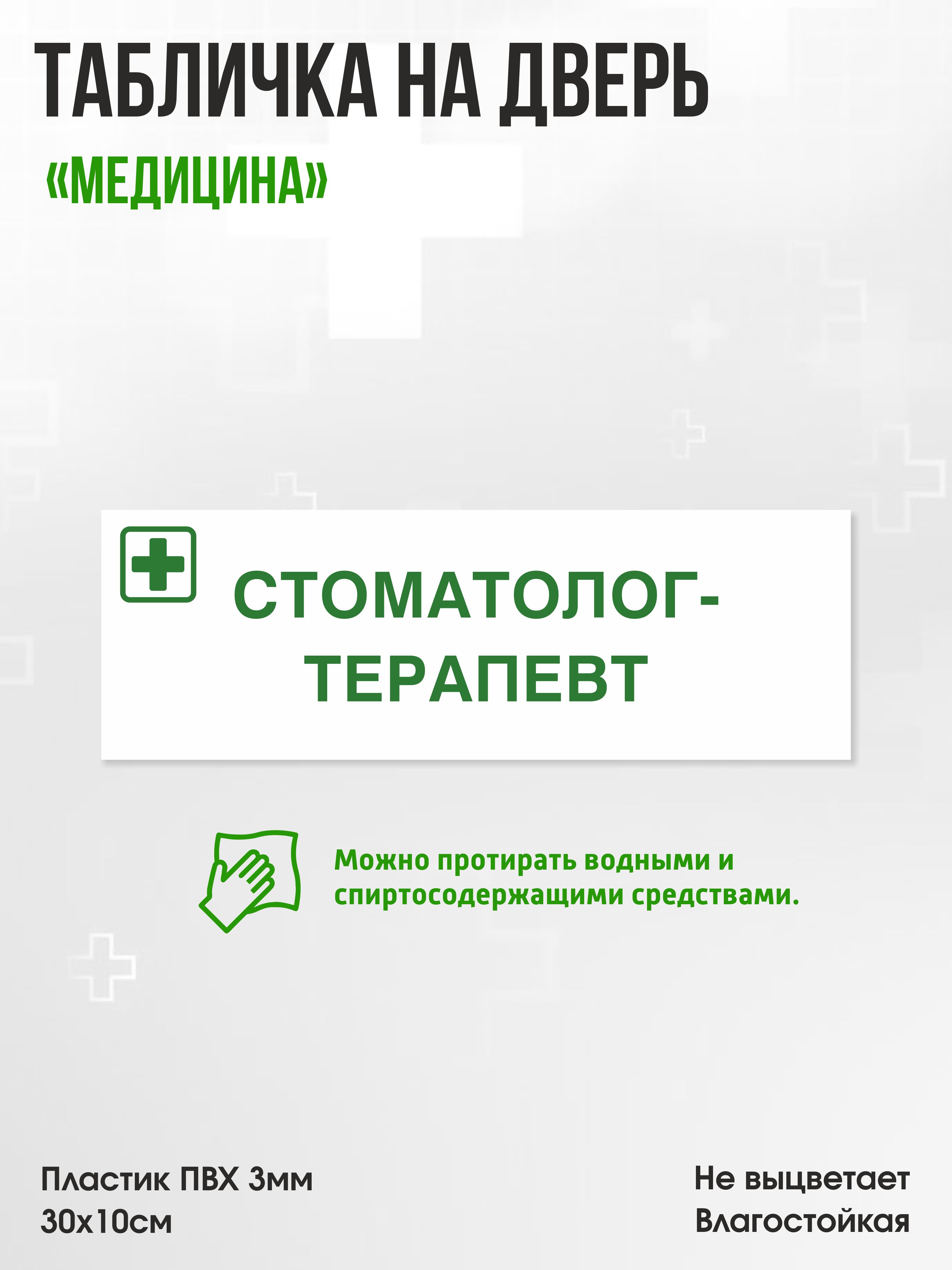 Табличка Стоматолог-терапевт, белая, 30х10см, ПВХ пластик, на дверь, для медицинской клиники или больницы