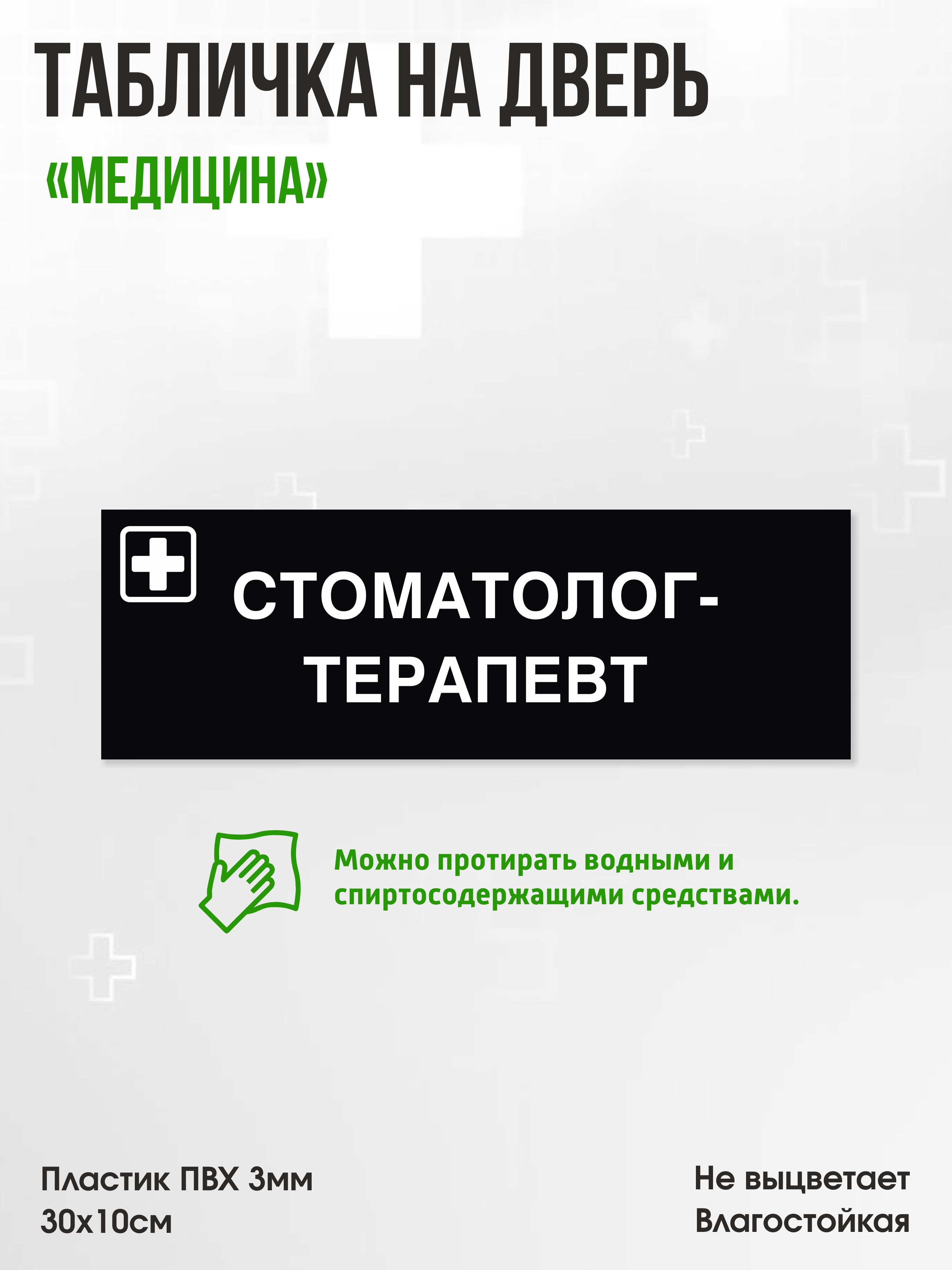 Главная / Каталог продукции / Таблички и декор / Табличка Стоматолог-терапевт, черная, 30х10см, ПВХ пластик, на дверь, для медицинской клиники или больницы