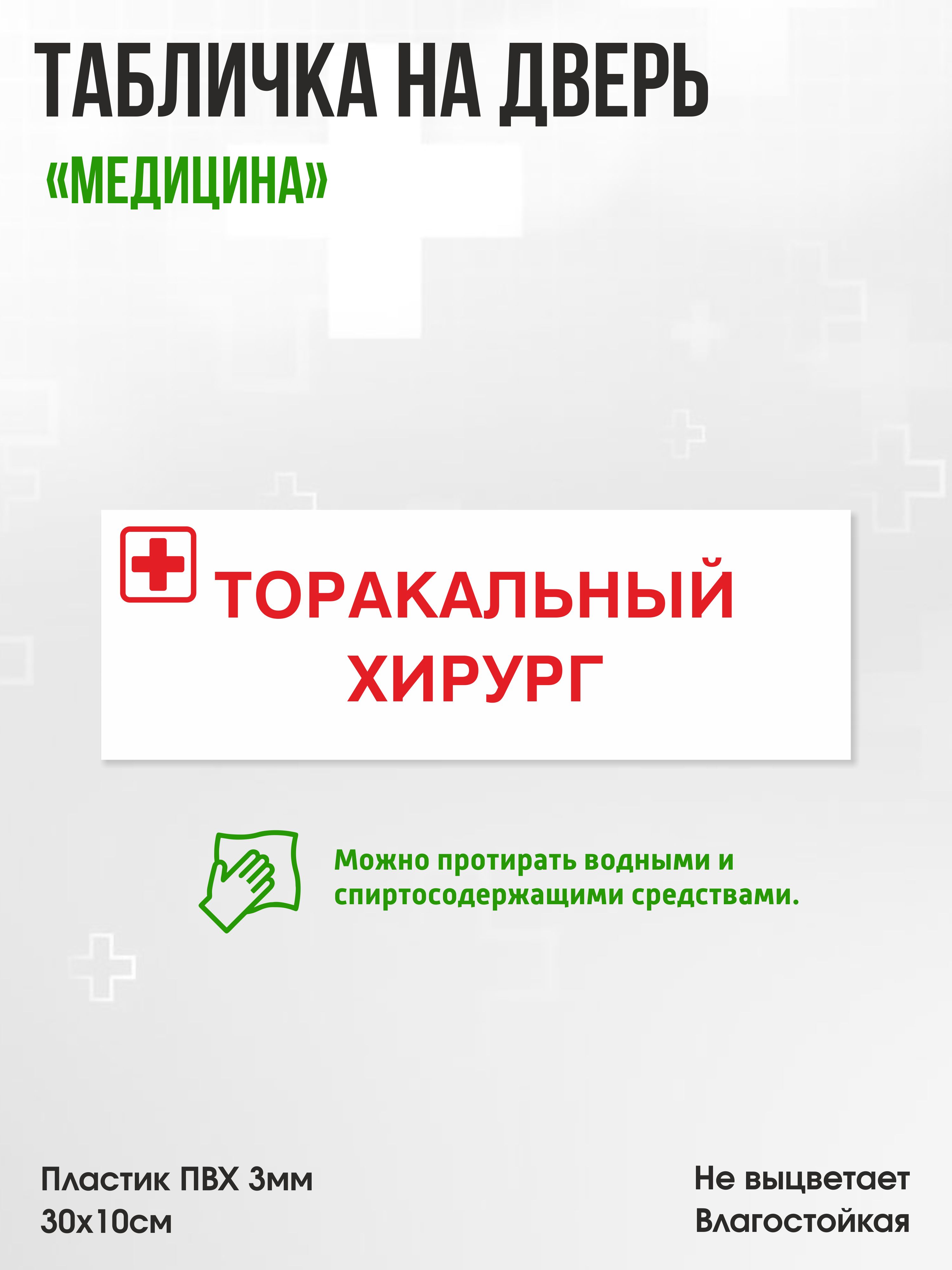 Табличка Торакальный хирург, белая, 30х10см, ПВХ пластик, на дверь, для медицинской клиники или больницы