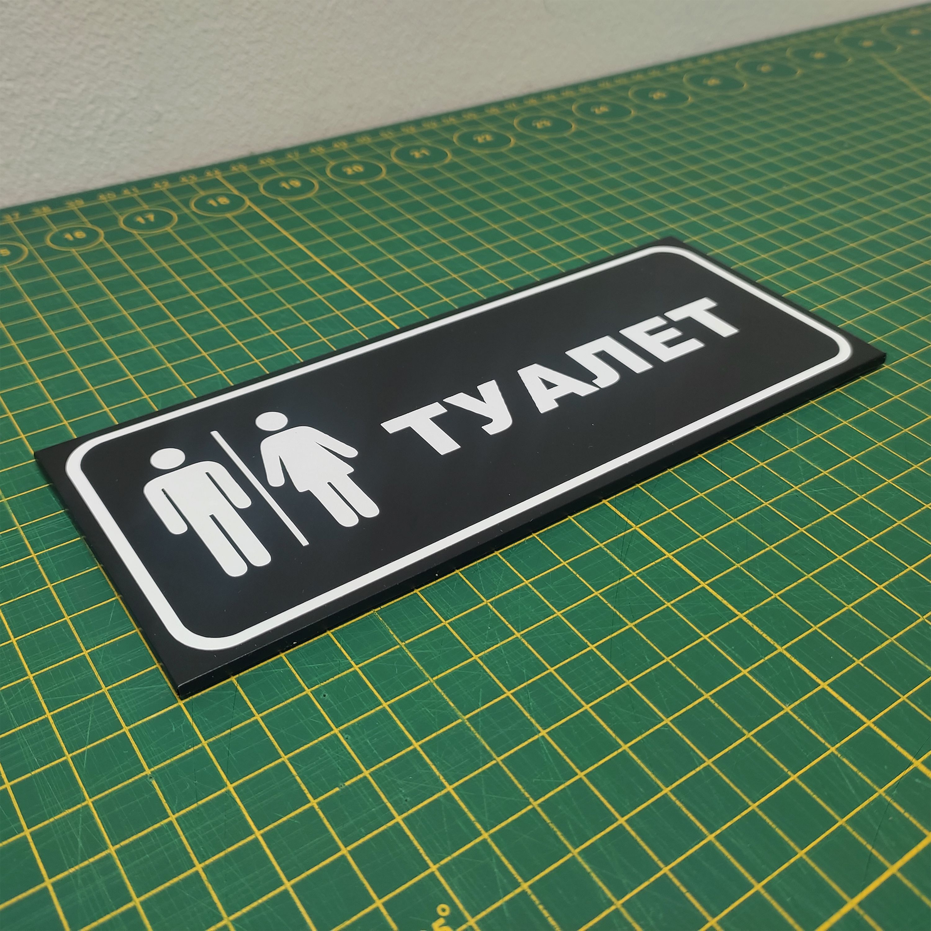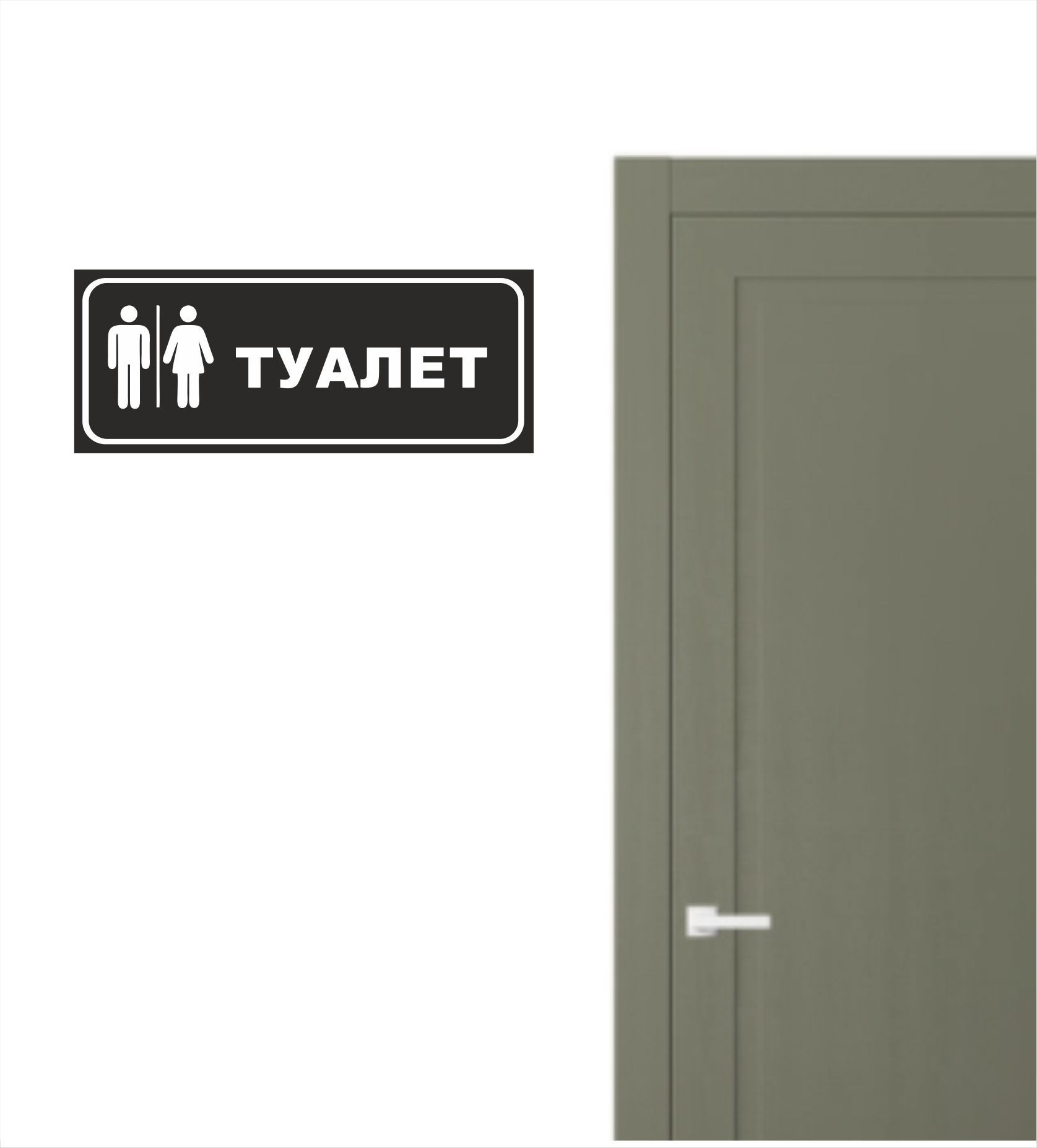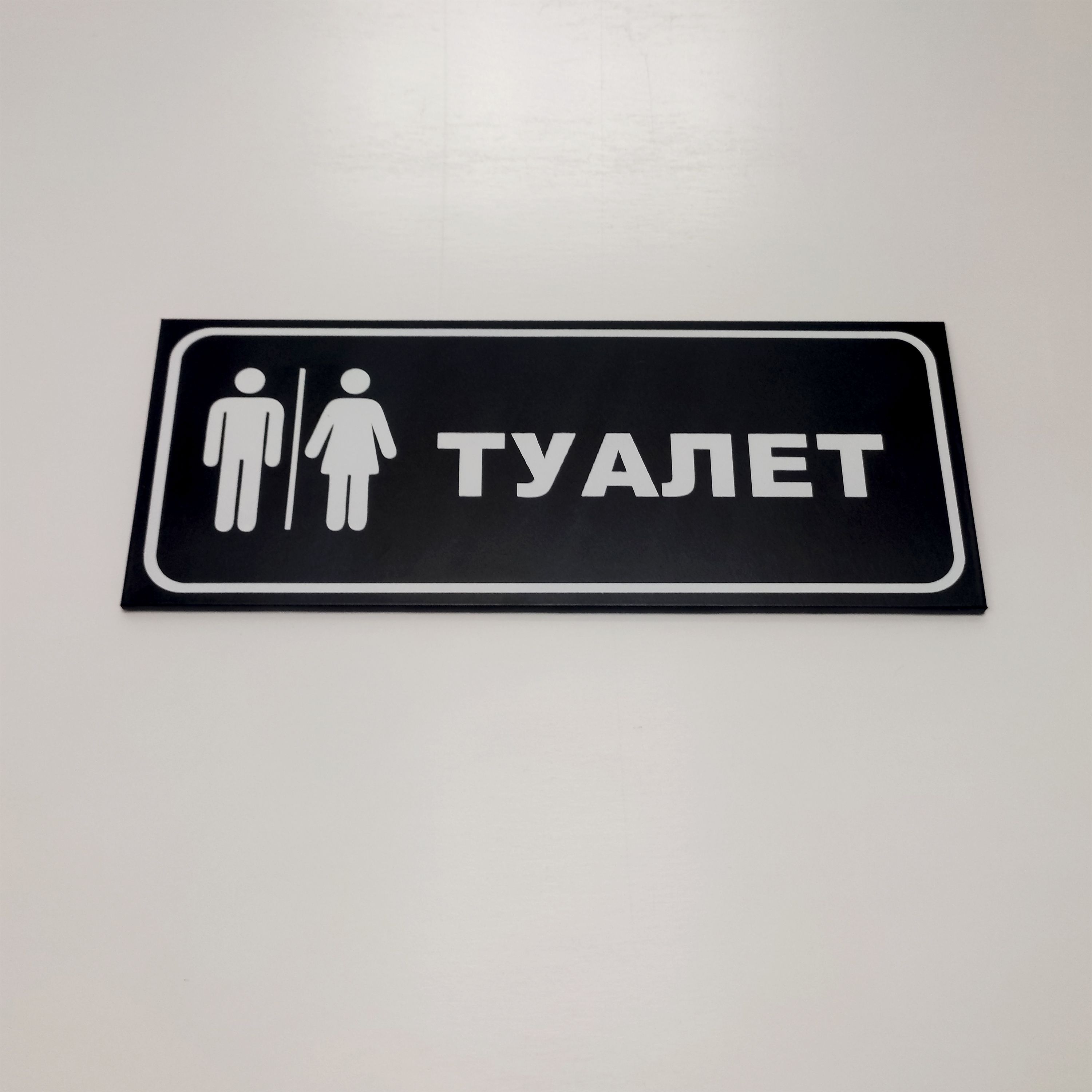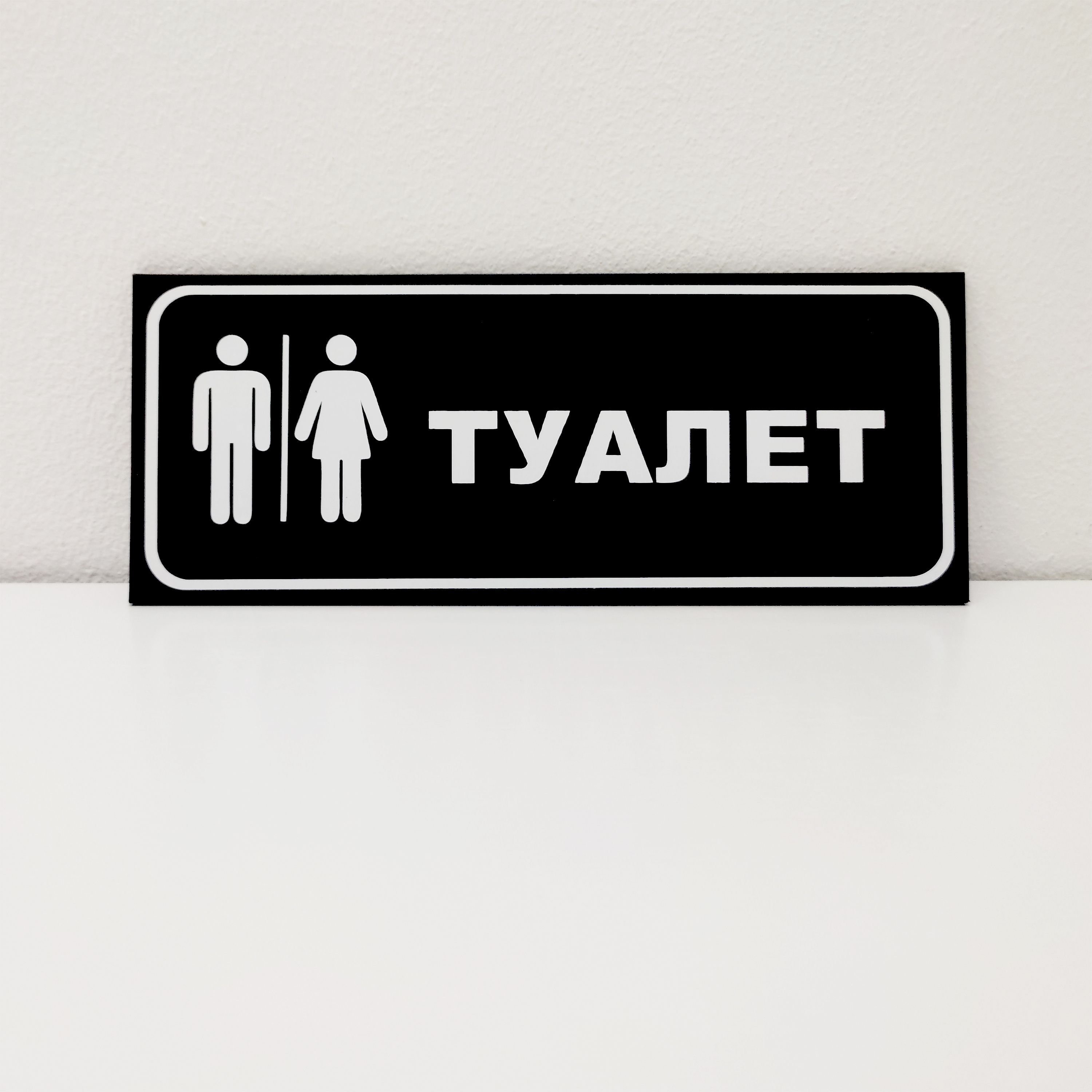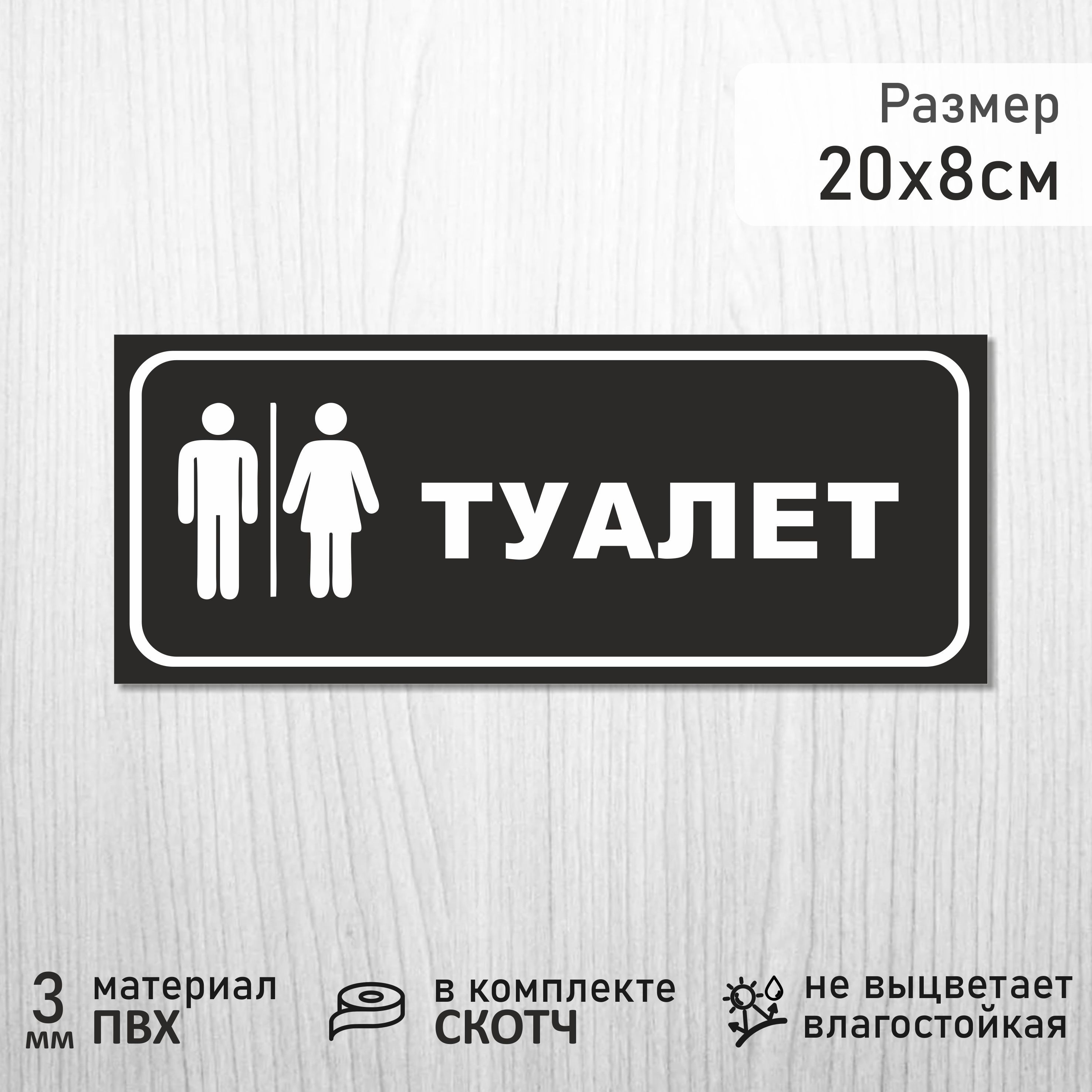 Табличка "Туалет", ПВХ, 200х80мм, черная, на дверь, в кабину туалета