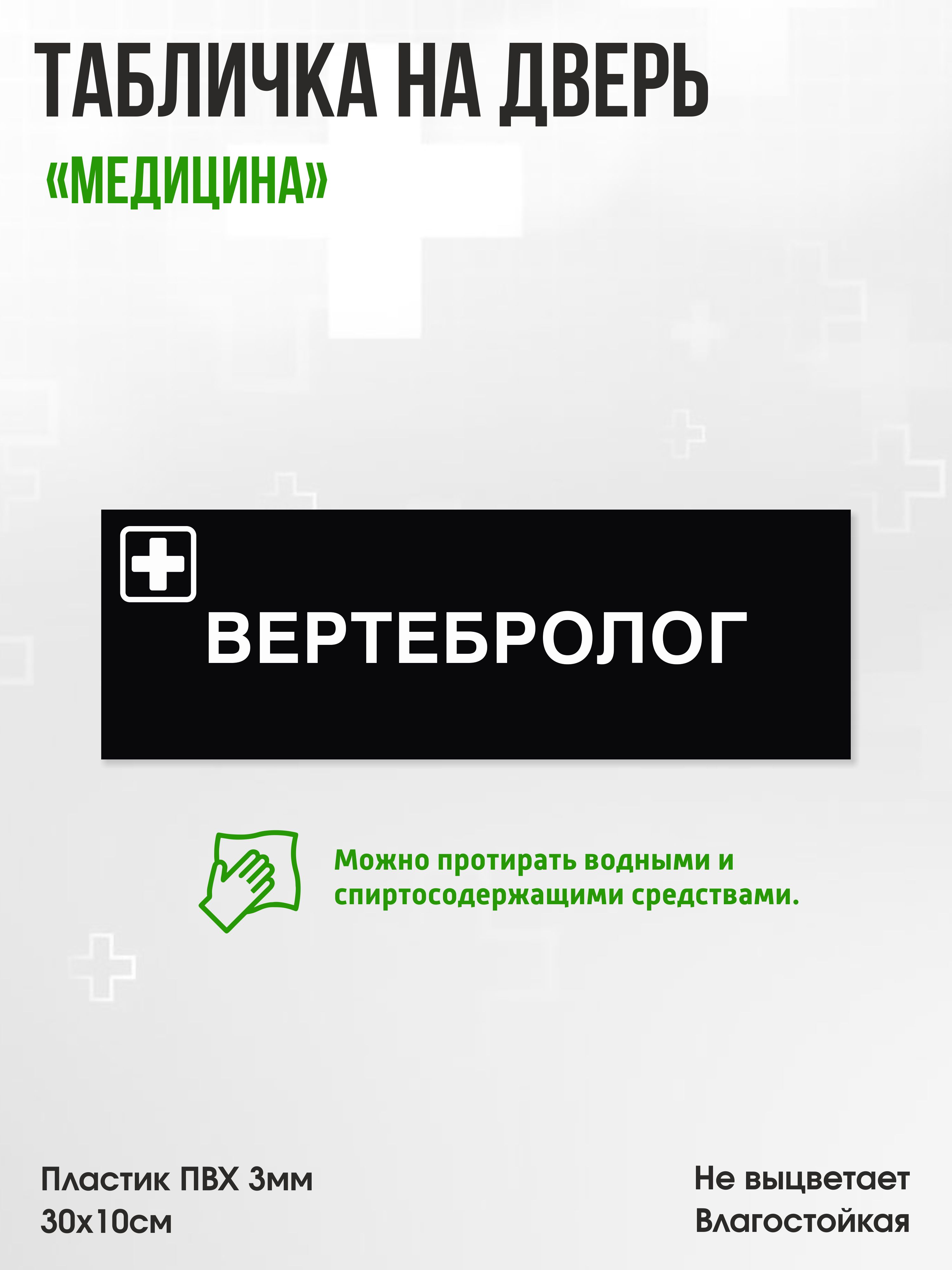 Табличка Вертебролог, черная, 30х10см, ПВХ пластик, на дверь, для медицинской клиники или больницы