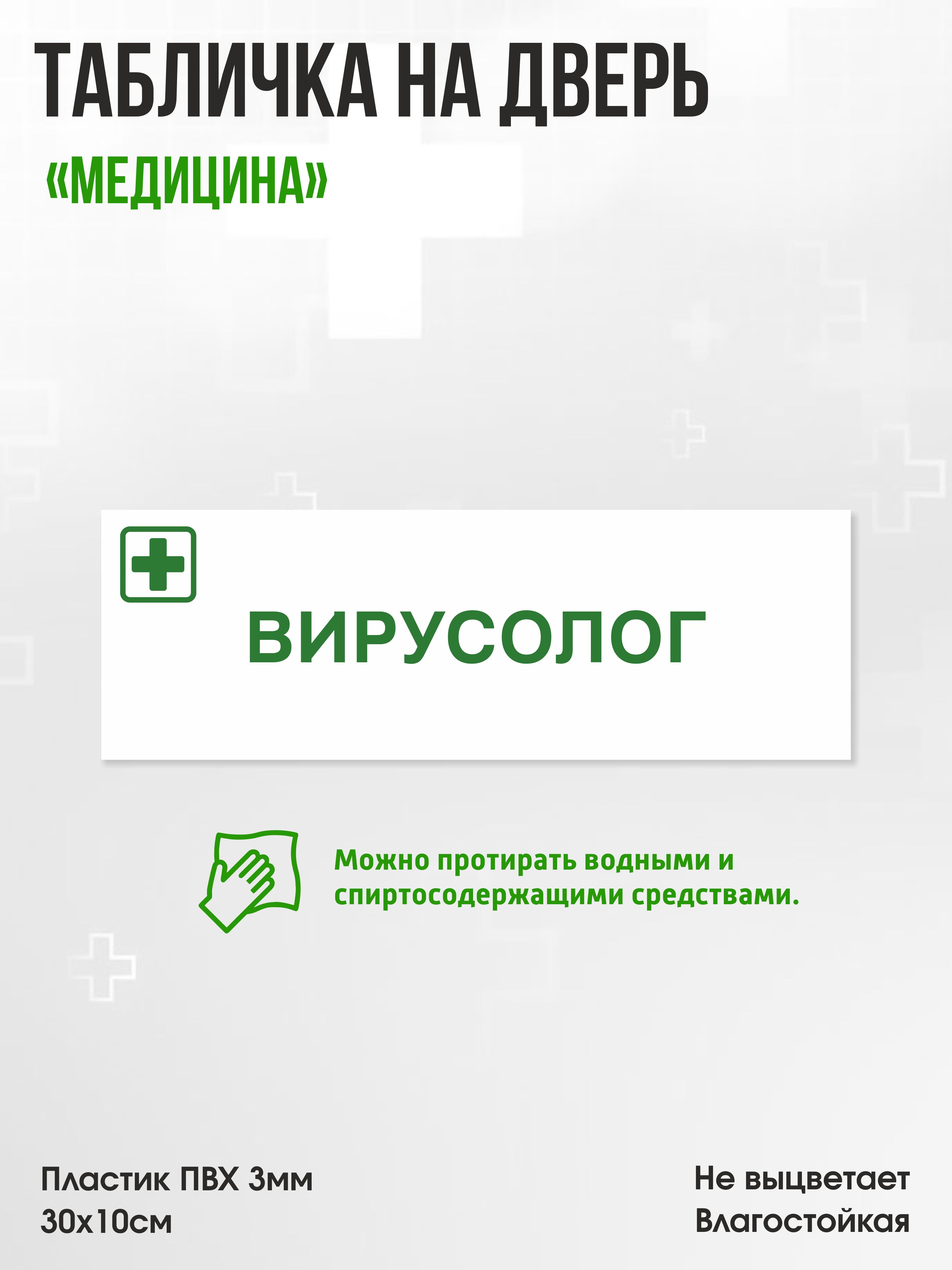 Табличка Вирусолог, белая, 30х10см, ПВХ пластик, на дверь, для медицинской клиники или больницы