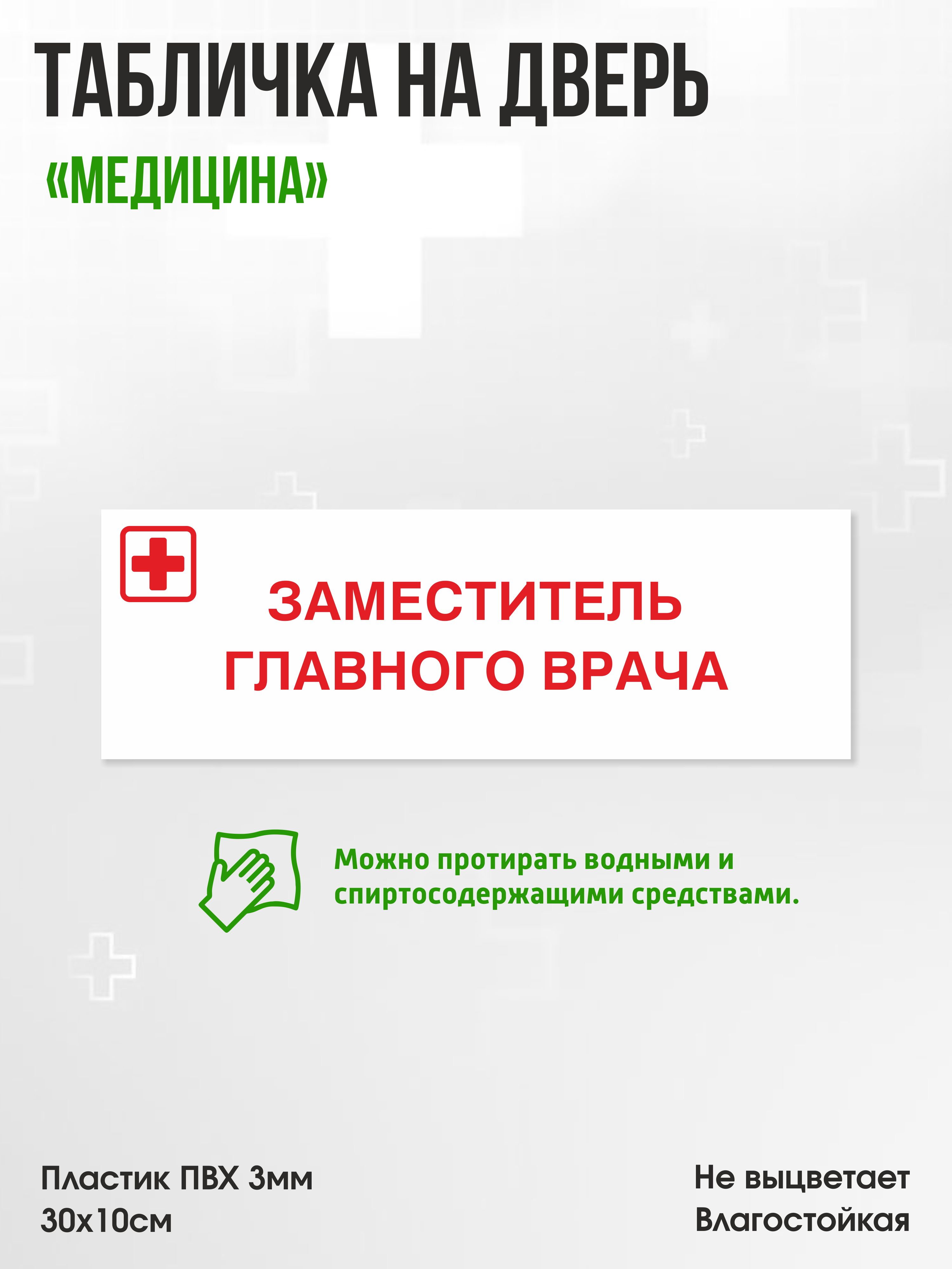 Табличка Заместитель главного врача, белая, 30х10см, ПВХ пластик, на дверь, для медицинской клиники или больницы