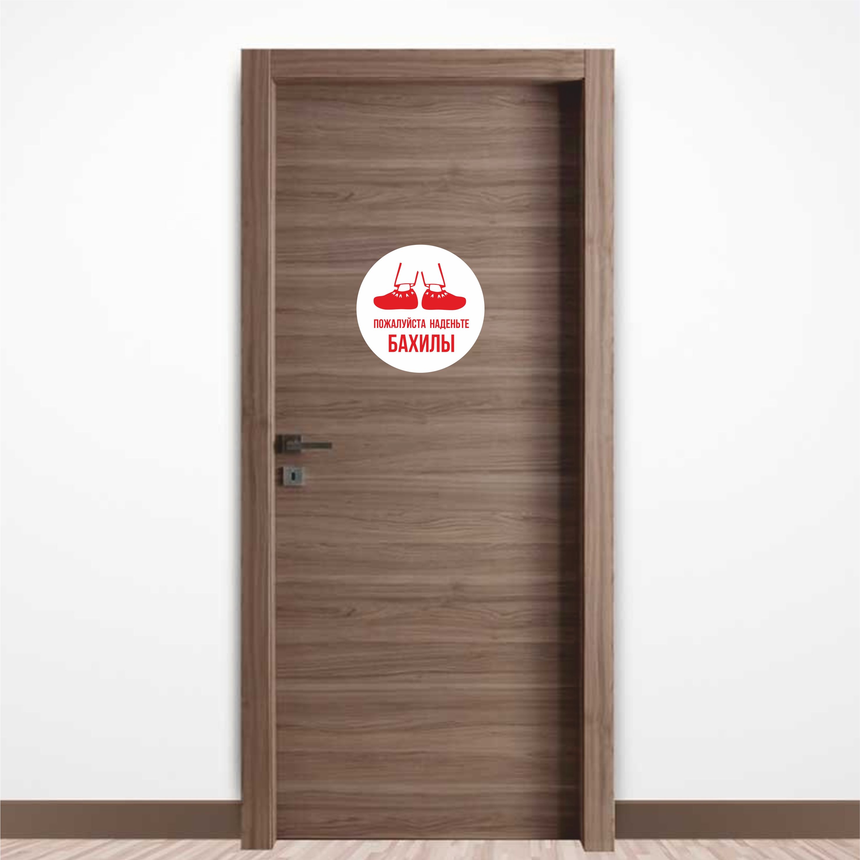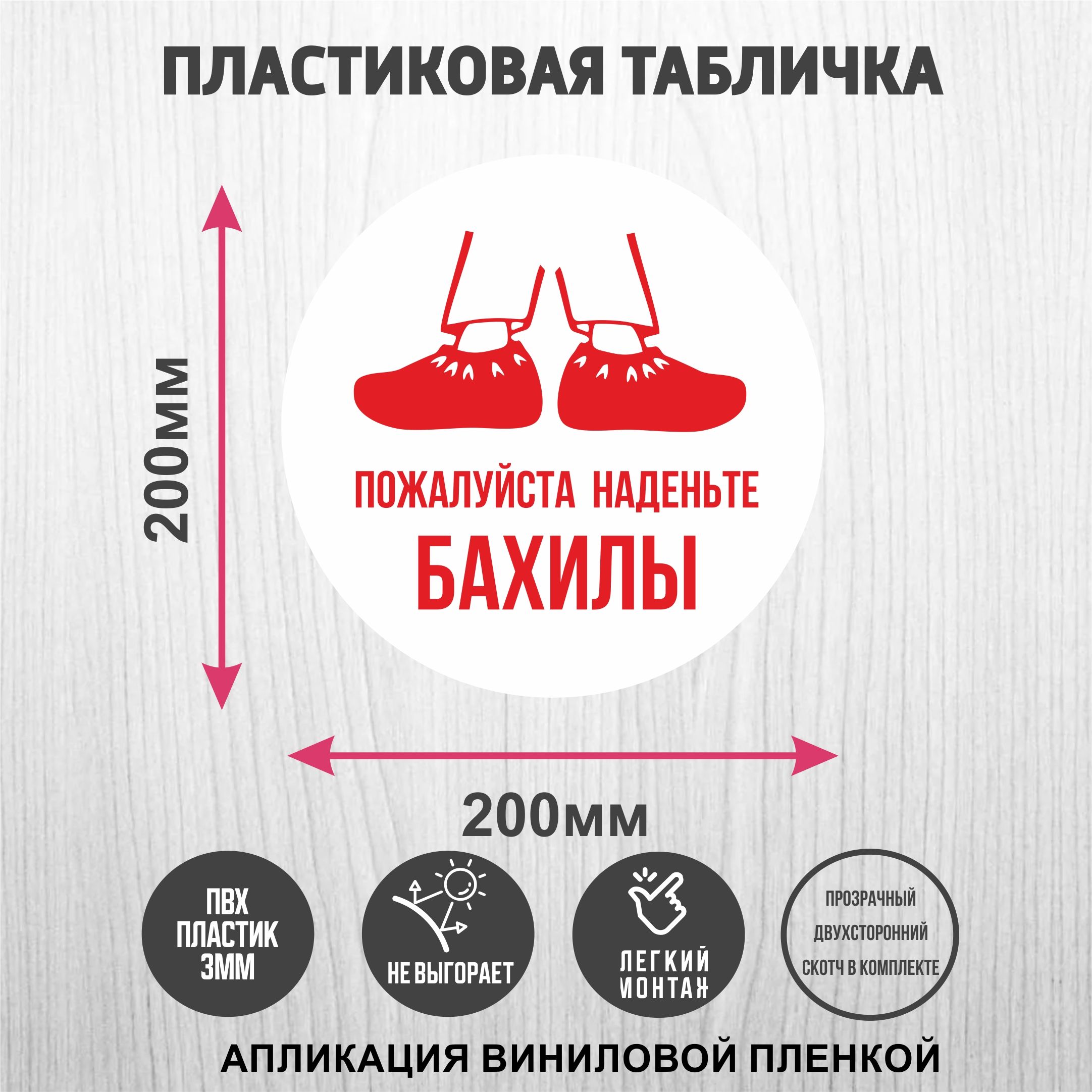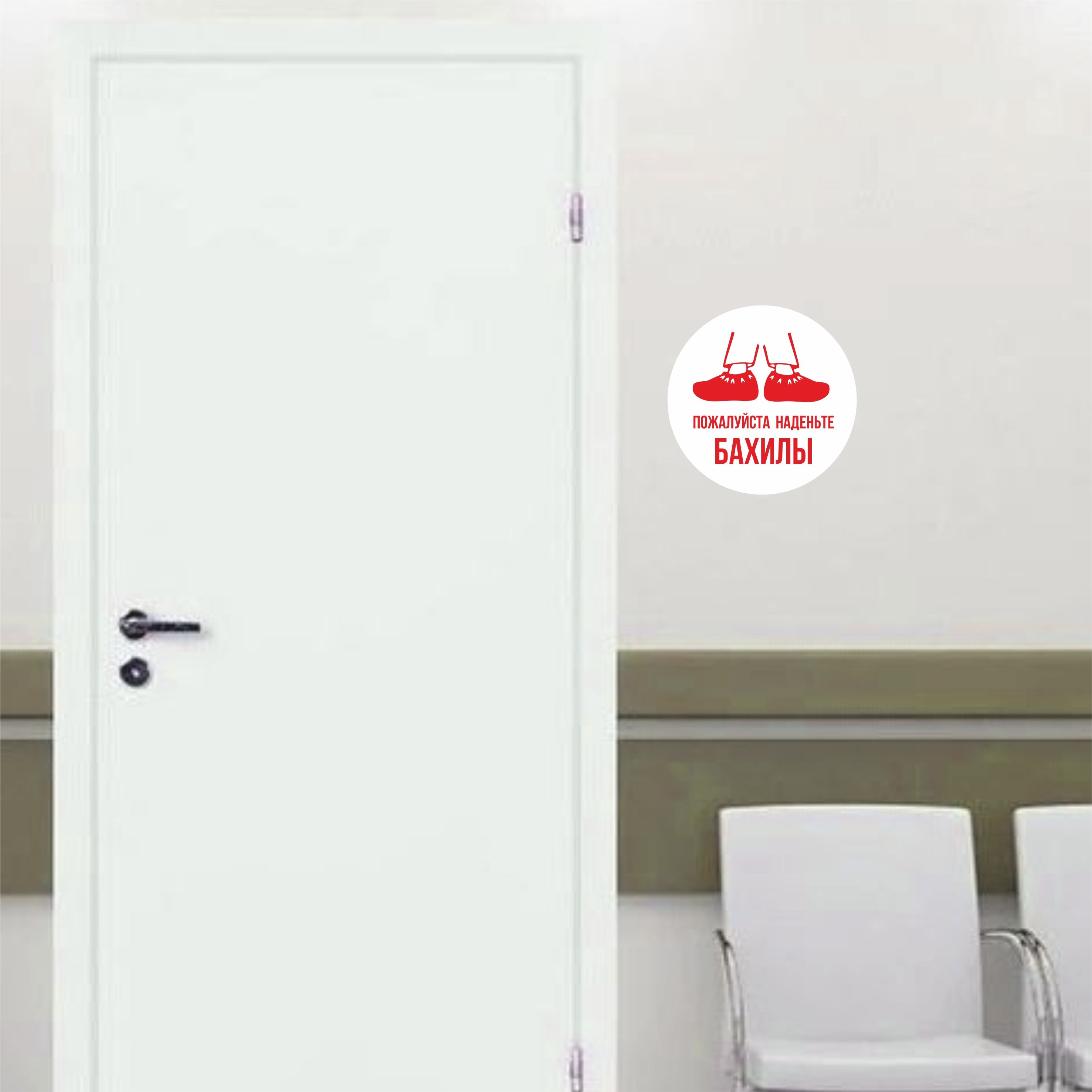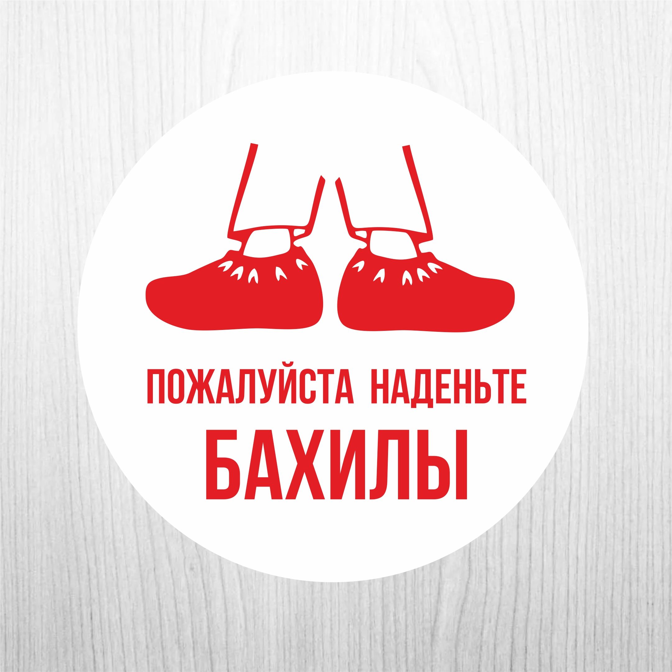 Таблички из ПВХ пластика "Пожалуйста наденьте бахилы", круглая, диаметр 20см, для медицинских кабинетов
