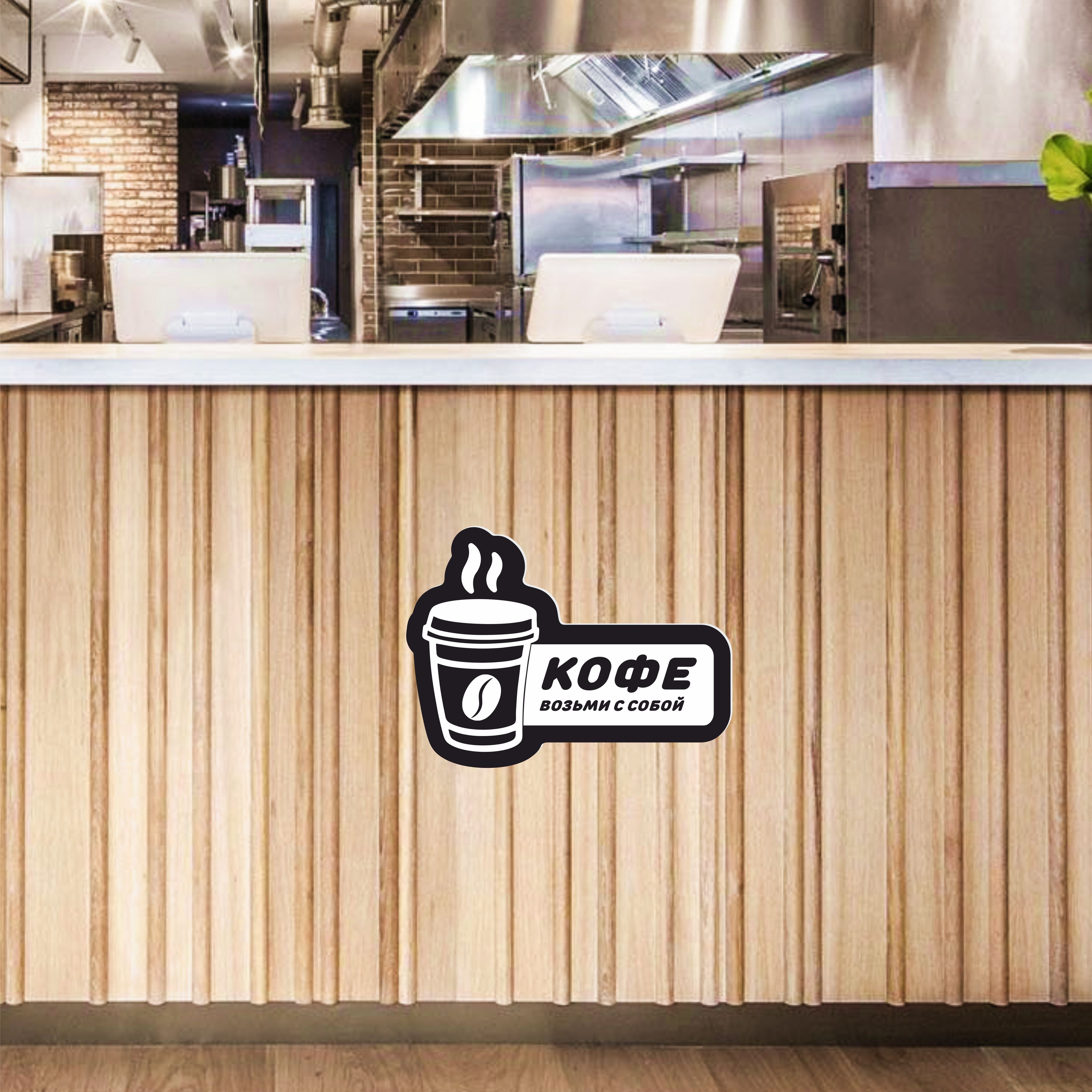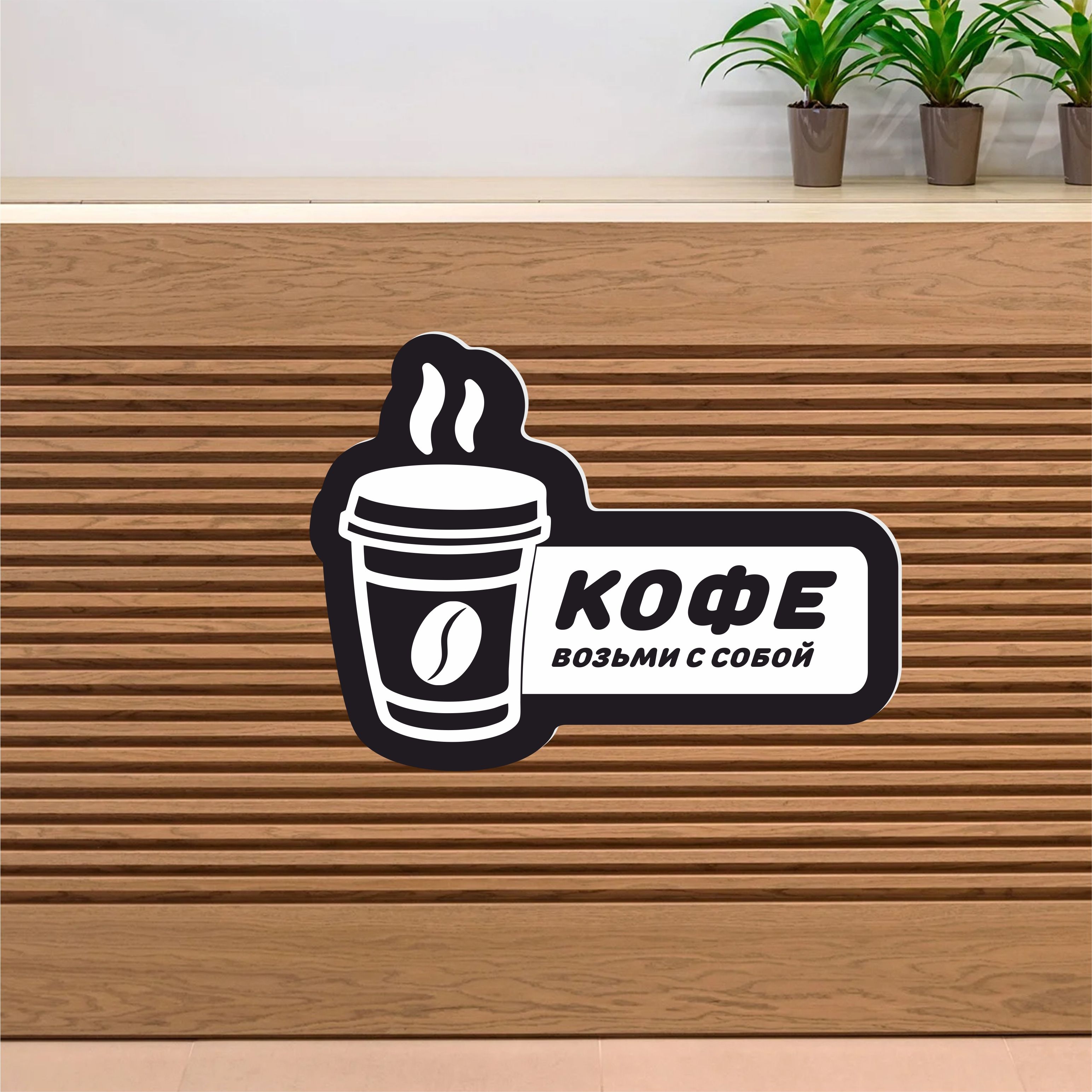 Вывеска фигурная "Кофе возьми с собой", из ПВХ пластика 3мм, для кофейни и вендингового автомата