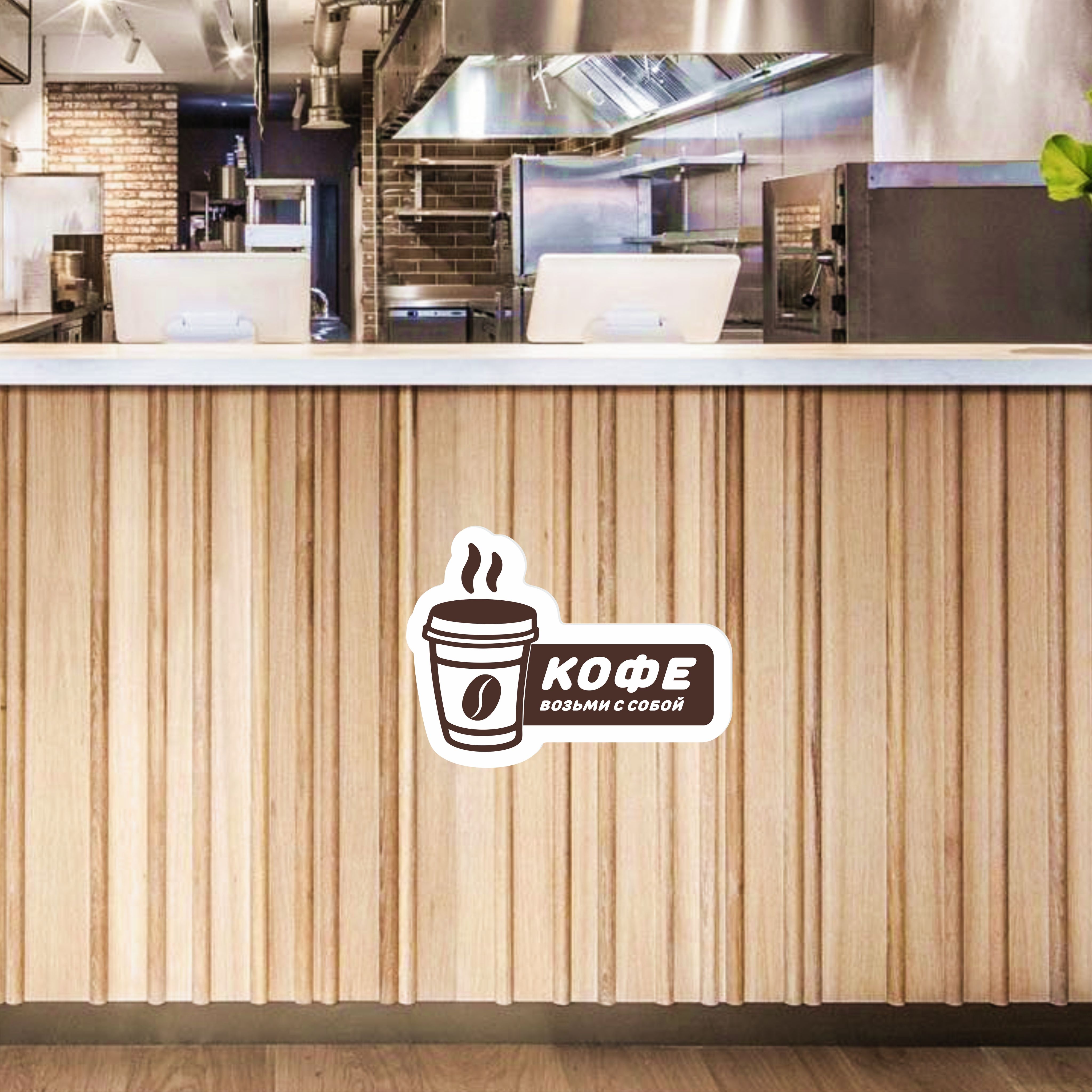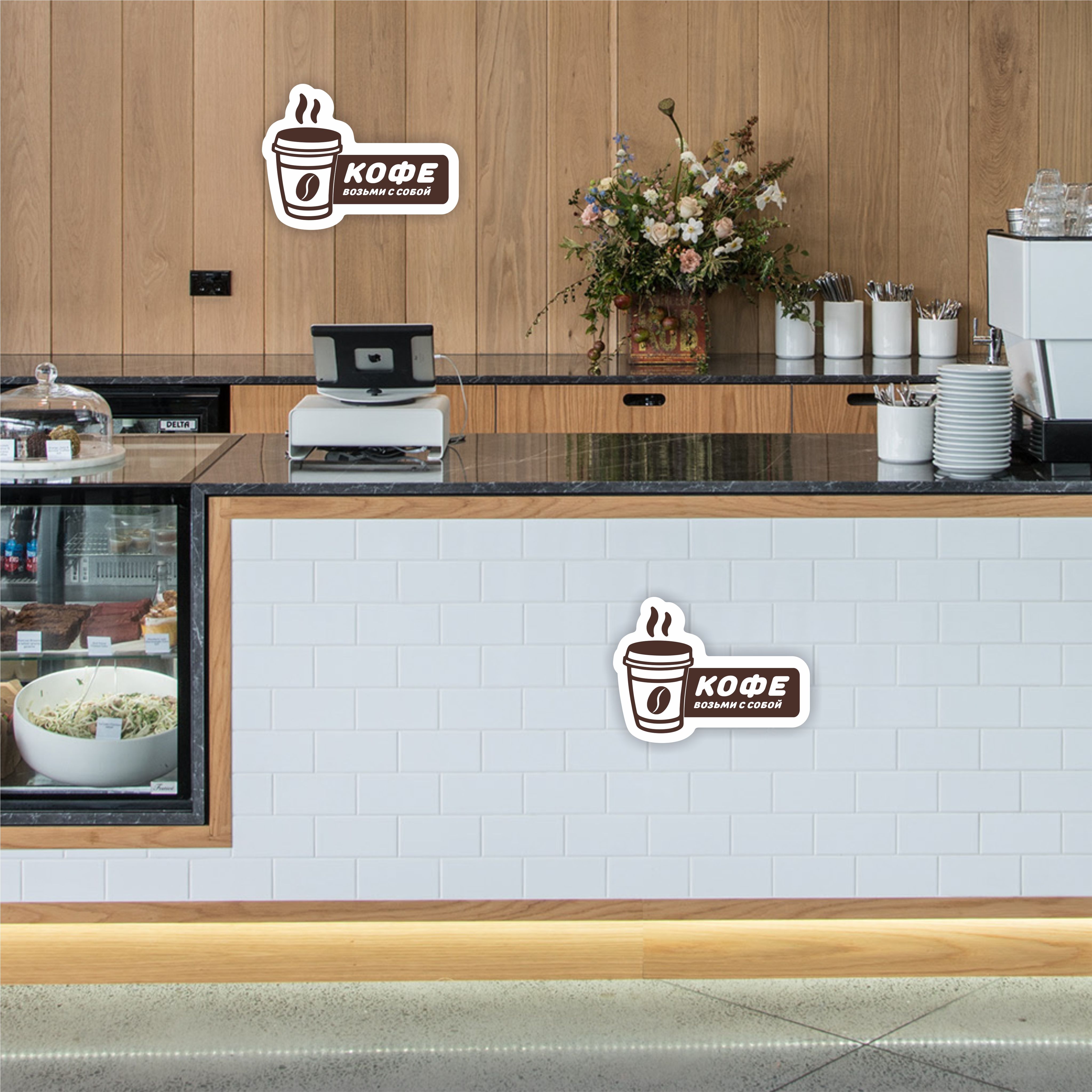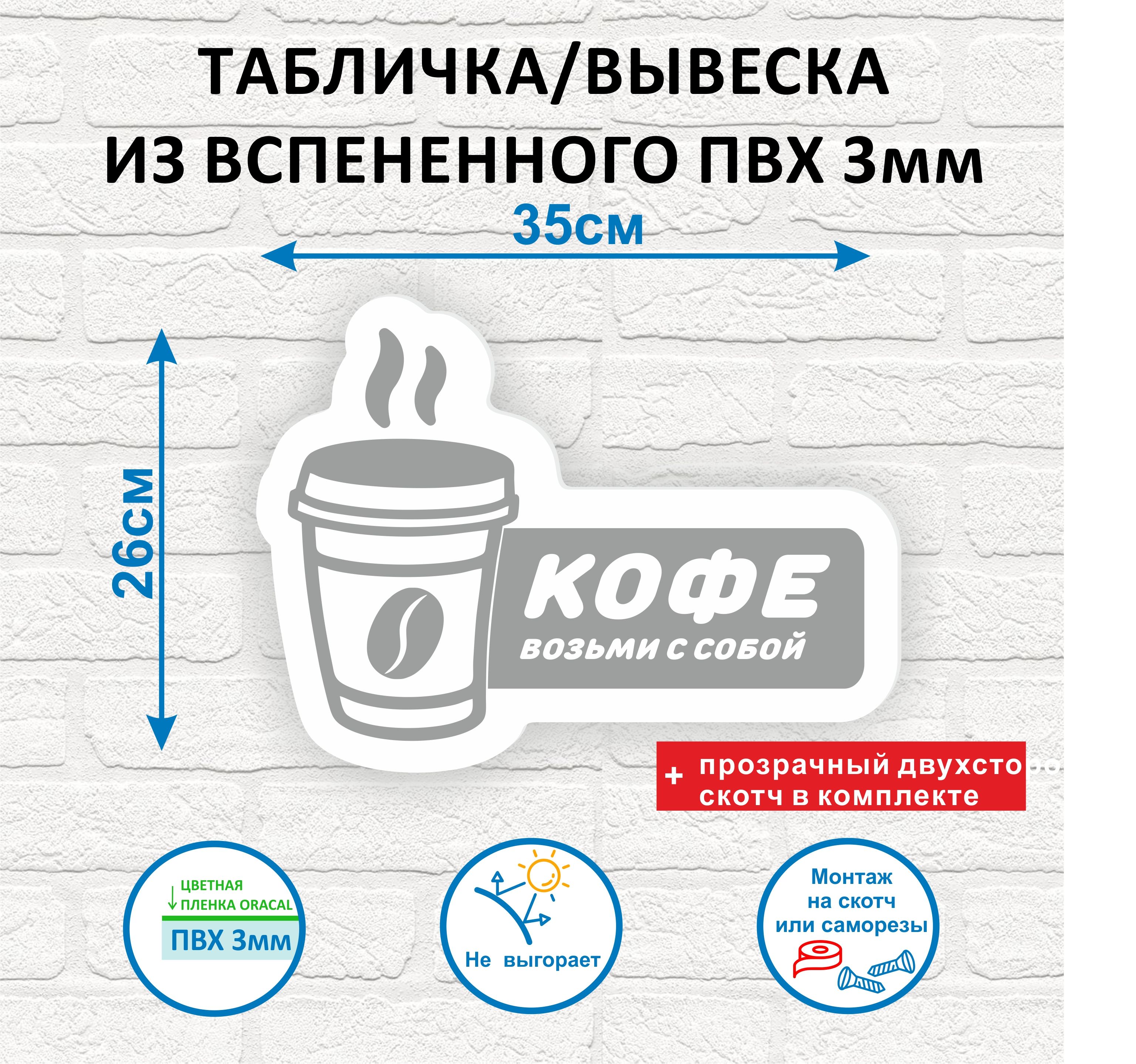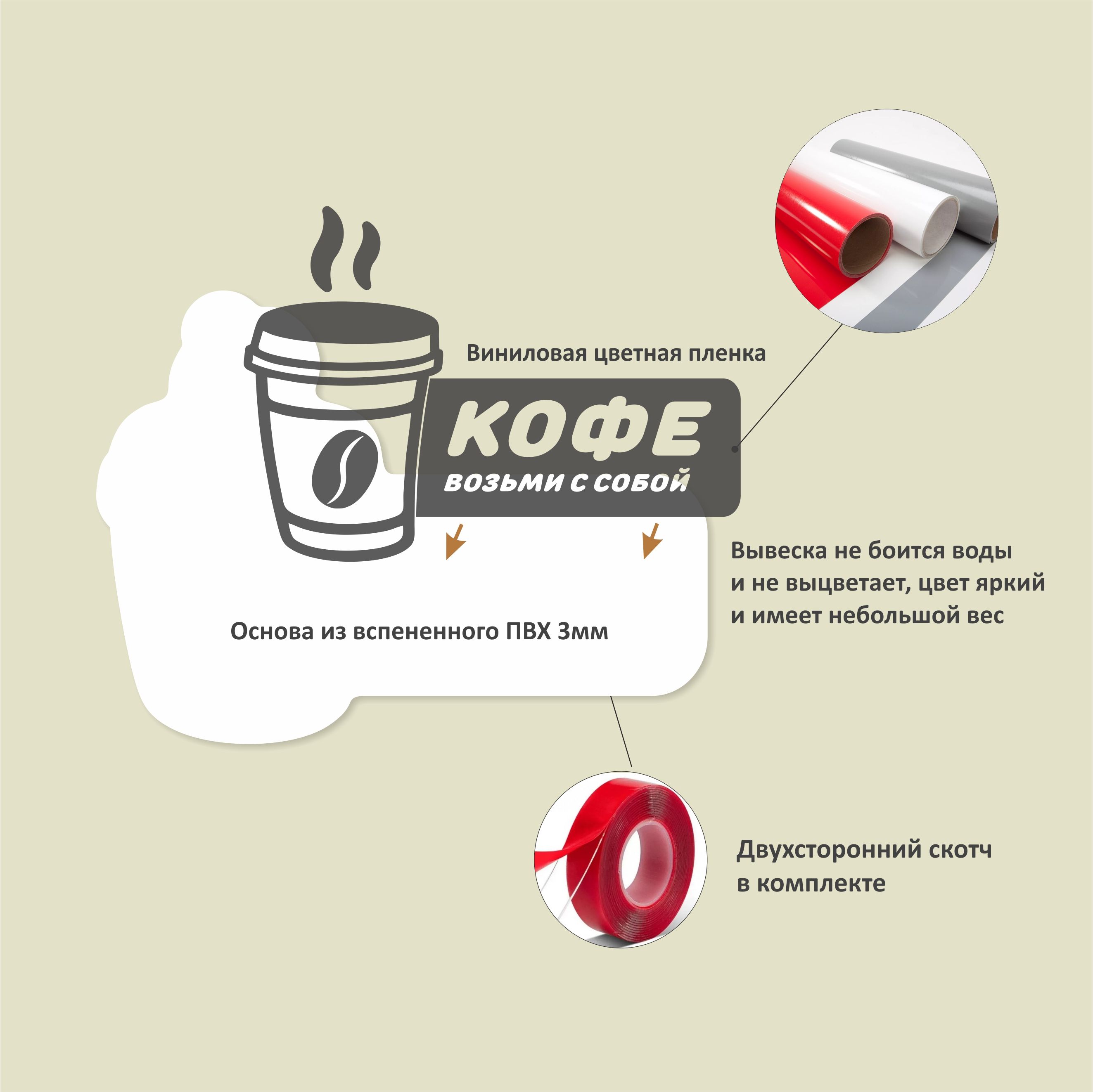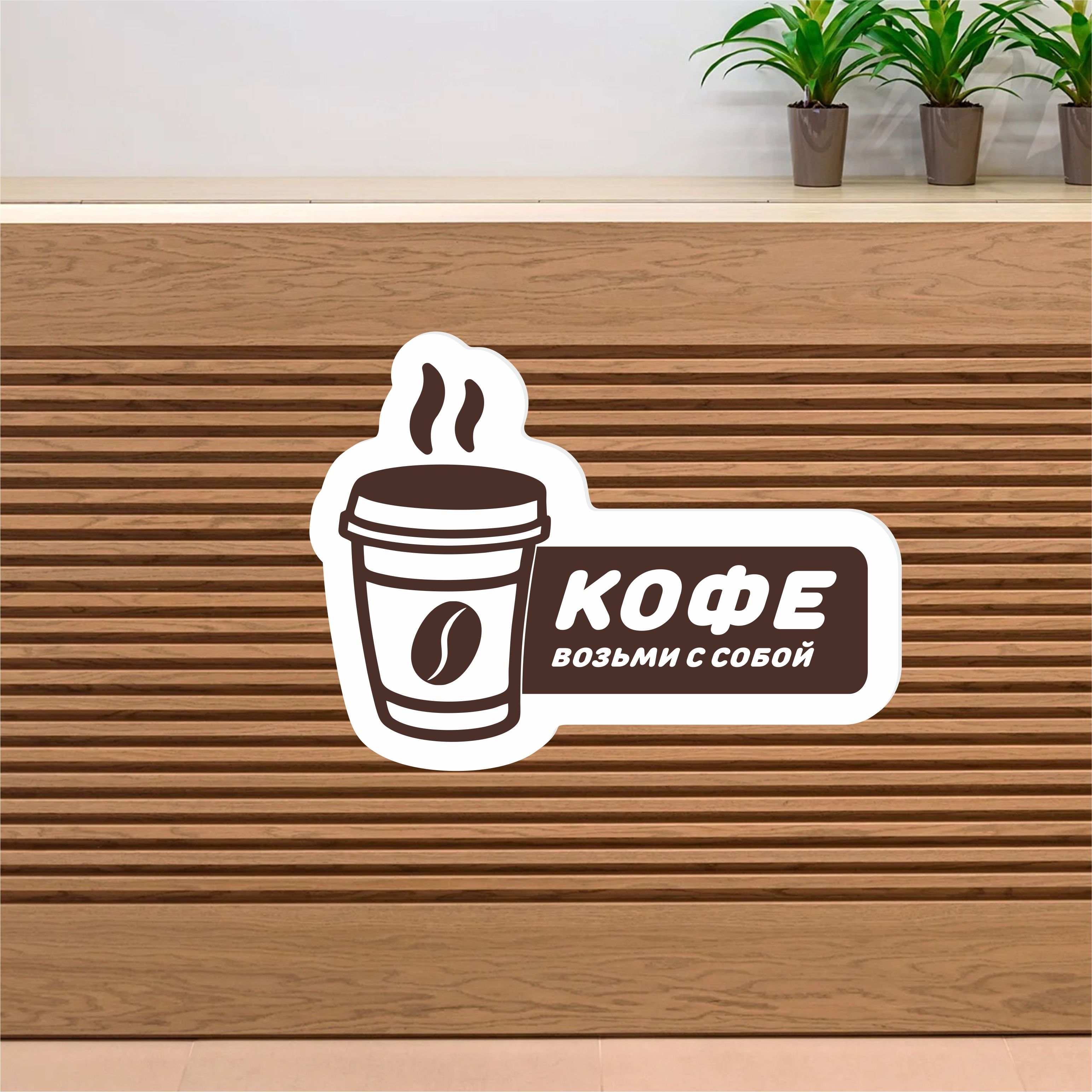 Вывеска фигурная "Кофе возьми с собой", из ПВХ пластика 3мм, для кофейни и вендингового автомата