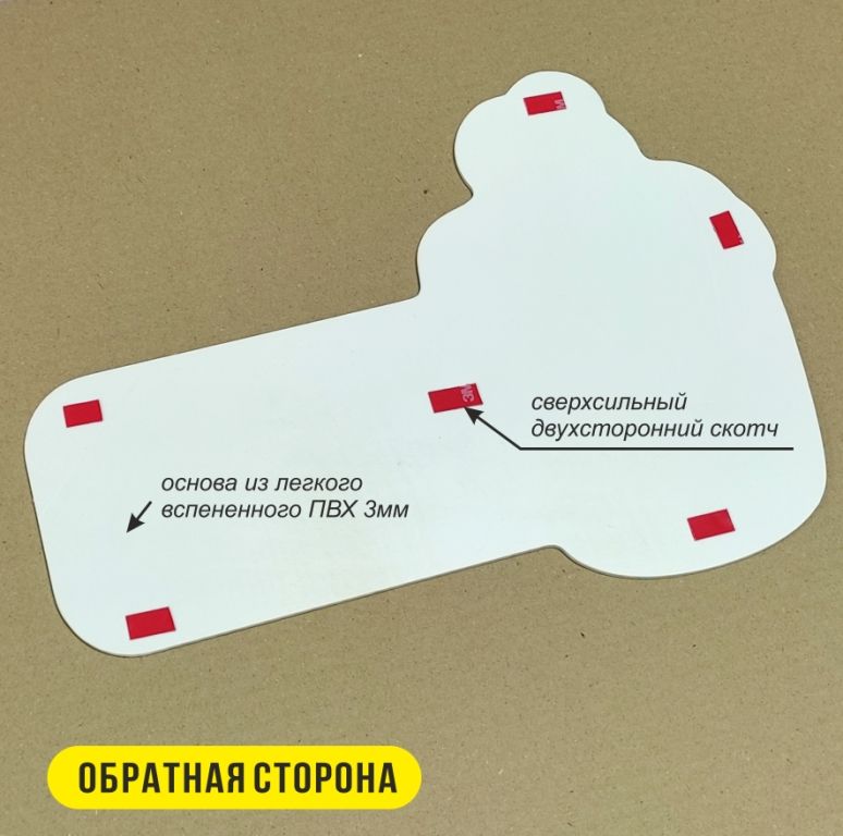 Несветовая вывеска изготовлена из пвх 3 мм методом аппликации виниловой влагостойкой пленки, крепление на двухсторонний скотч (в комплекте) или же на саморезы. Наша вывеска не выгорает и устойчива к влаге. При необходимости можно мыть от легких загрязнений влажной тряпкой. Вывеску также можно закрепить на саморезы предварительно просверлив отверстия не менее чем 5мм от края.